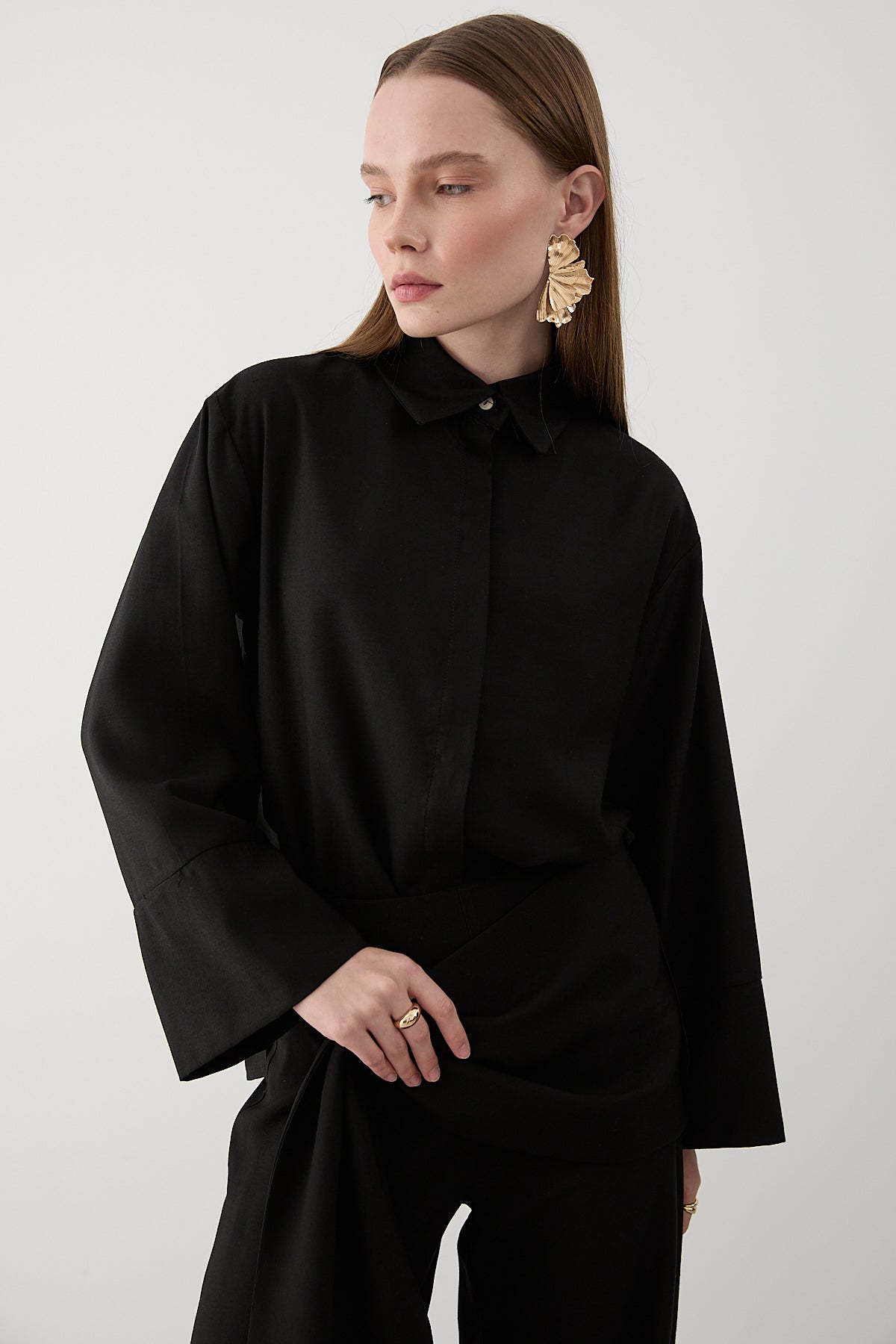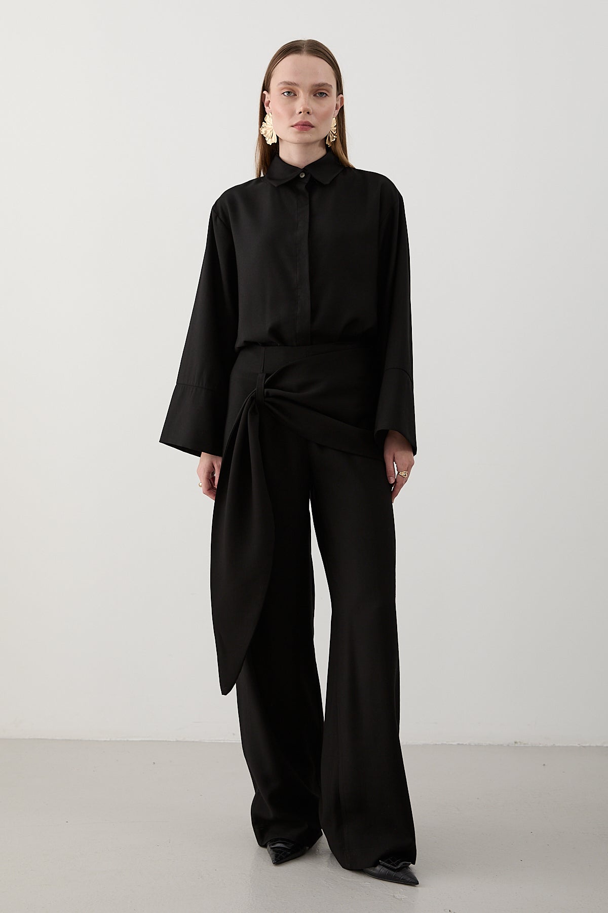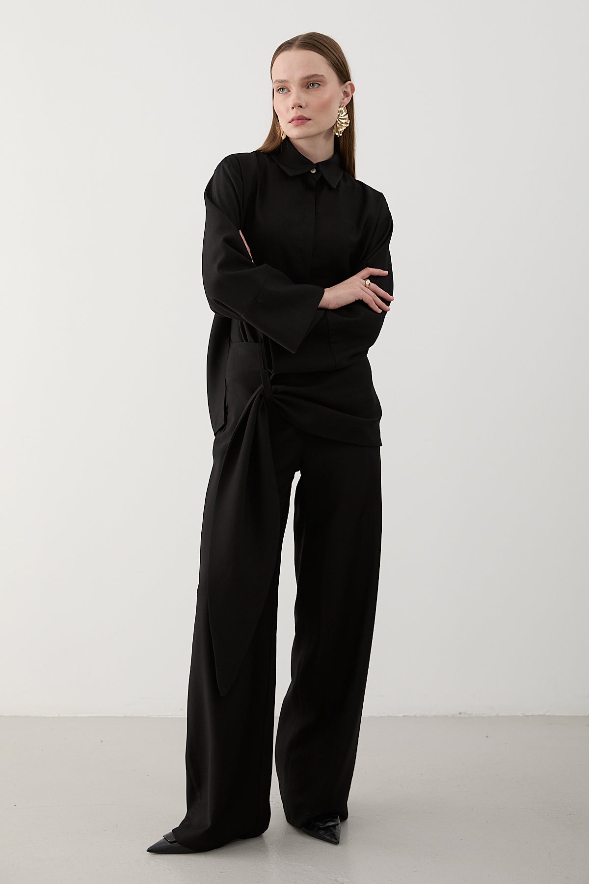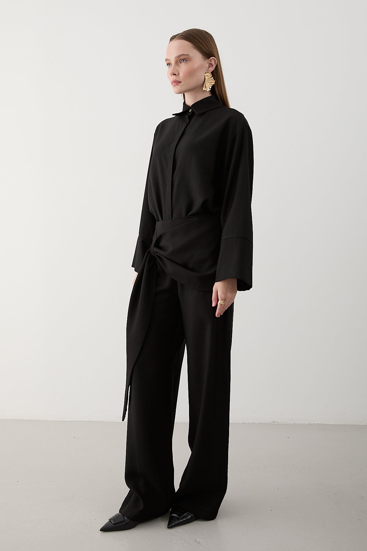 - Siyah Beli Detaylı Pantolon Gömlek Takım - 8862