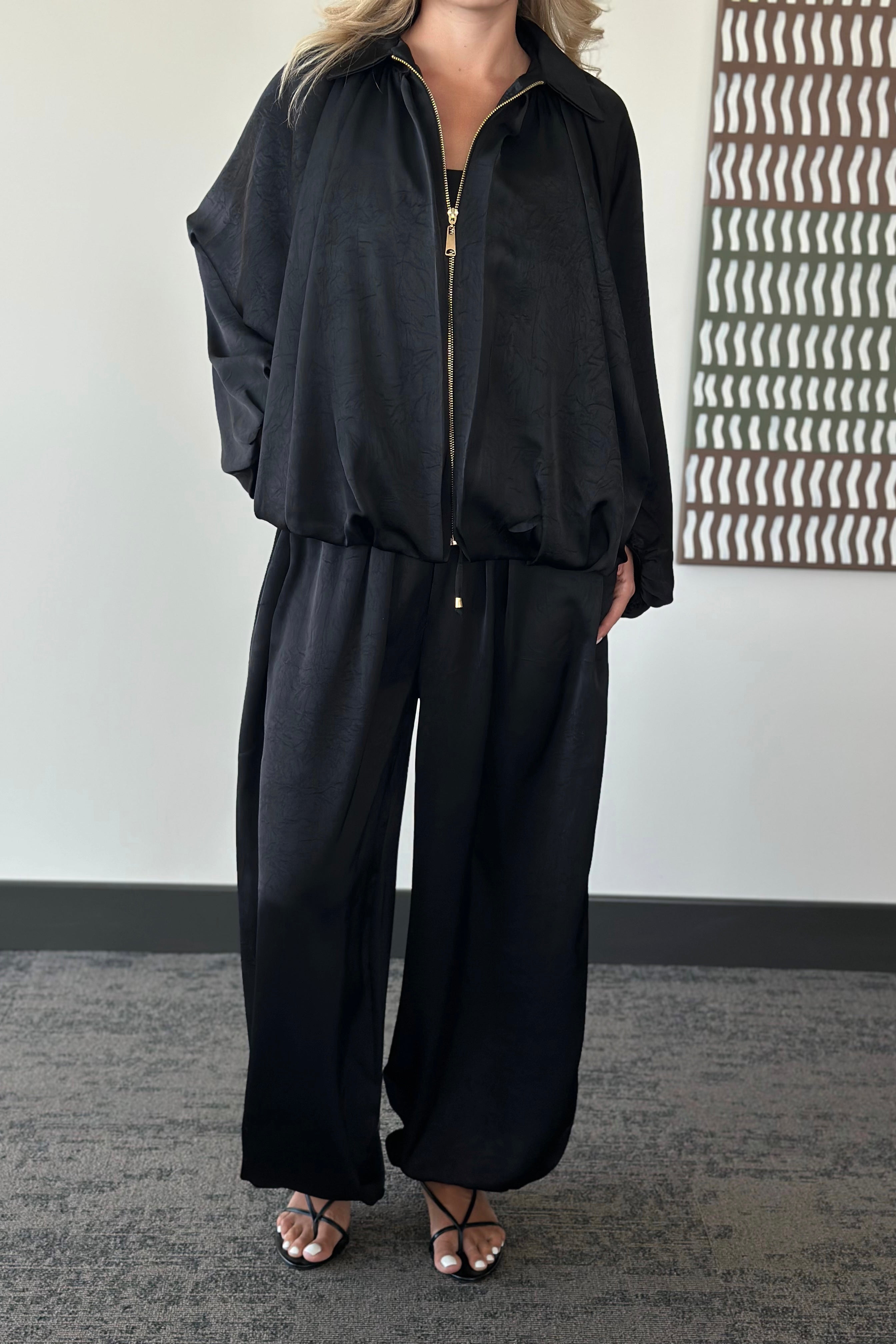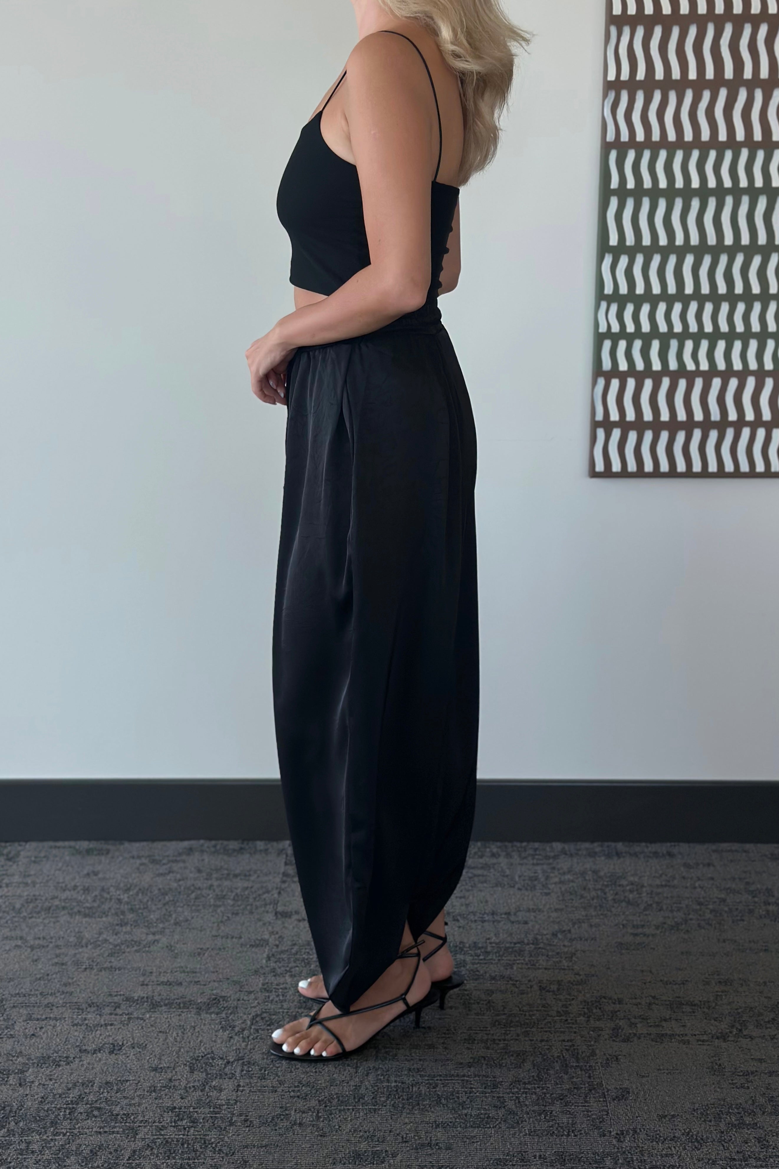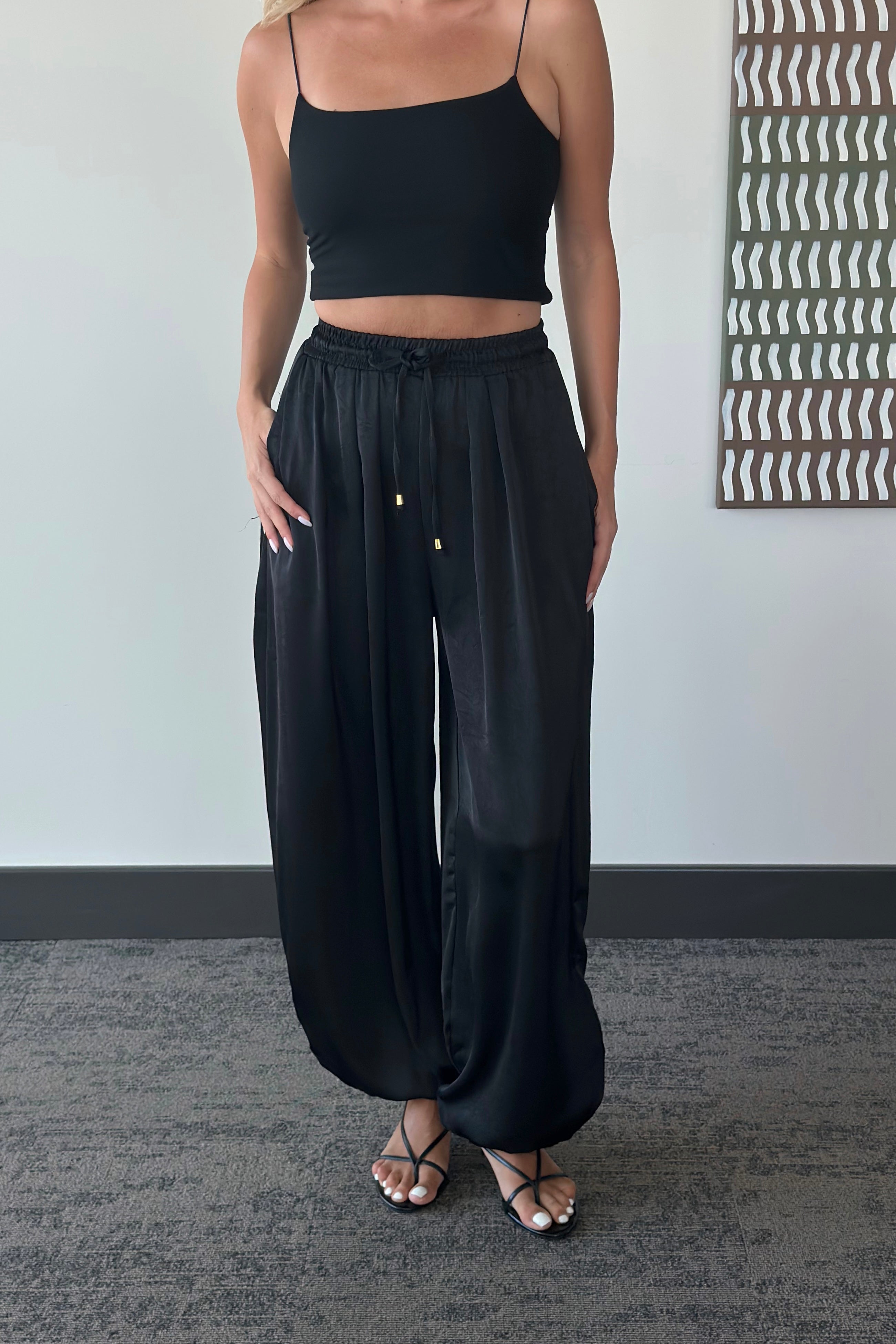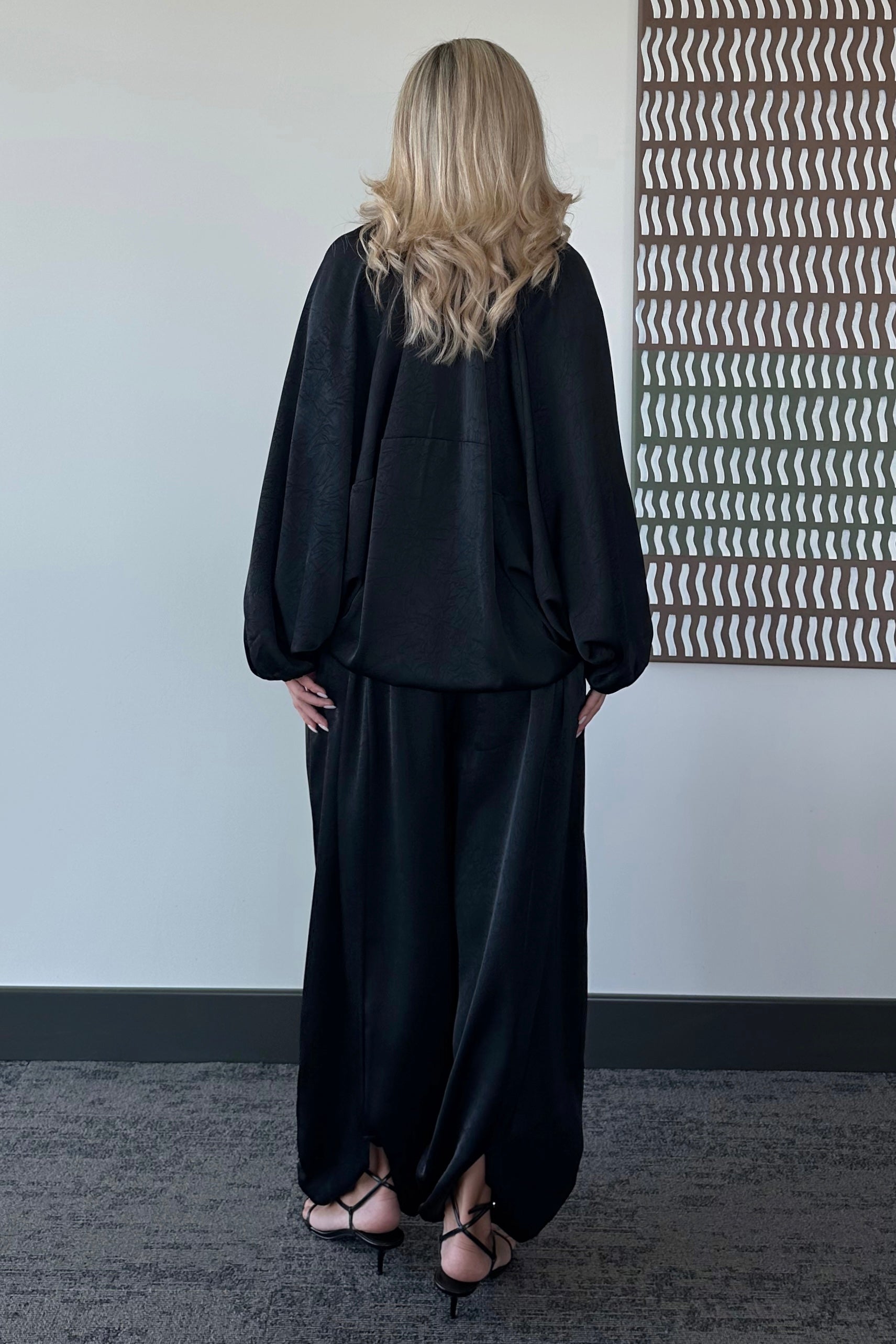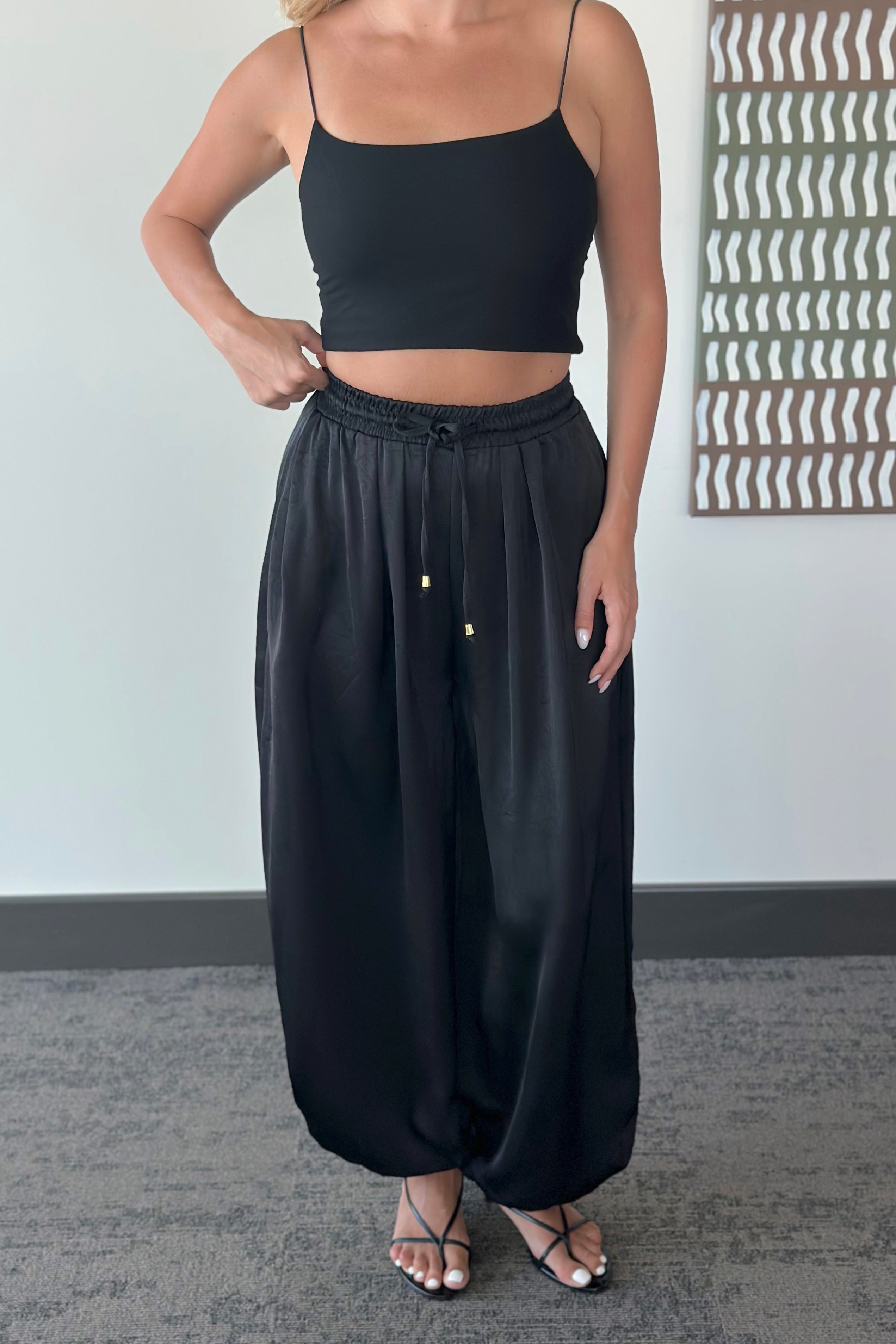 Siyah Beli Lastikli Saten Şalvar Pantolon - 51199