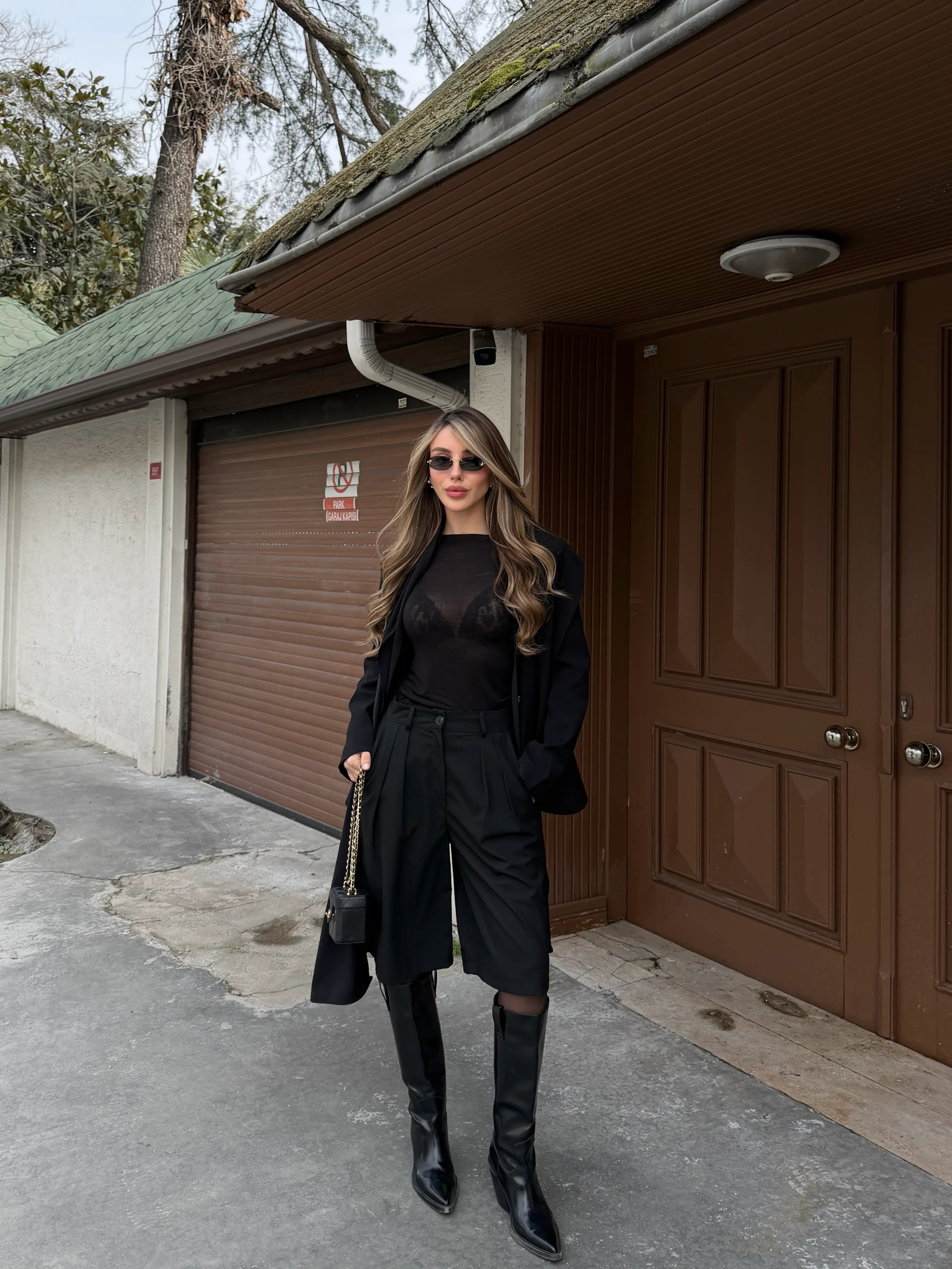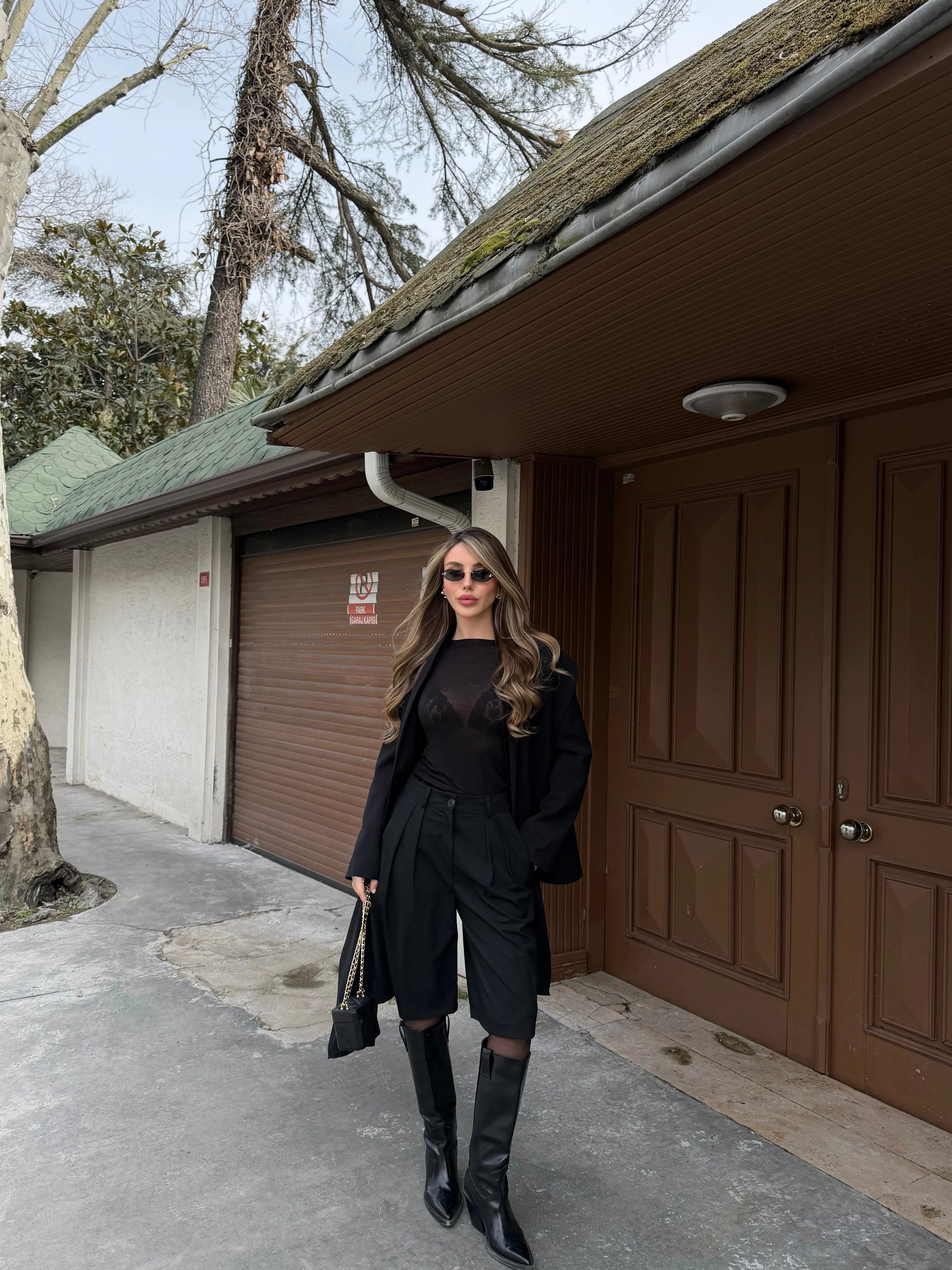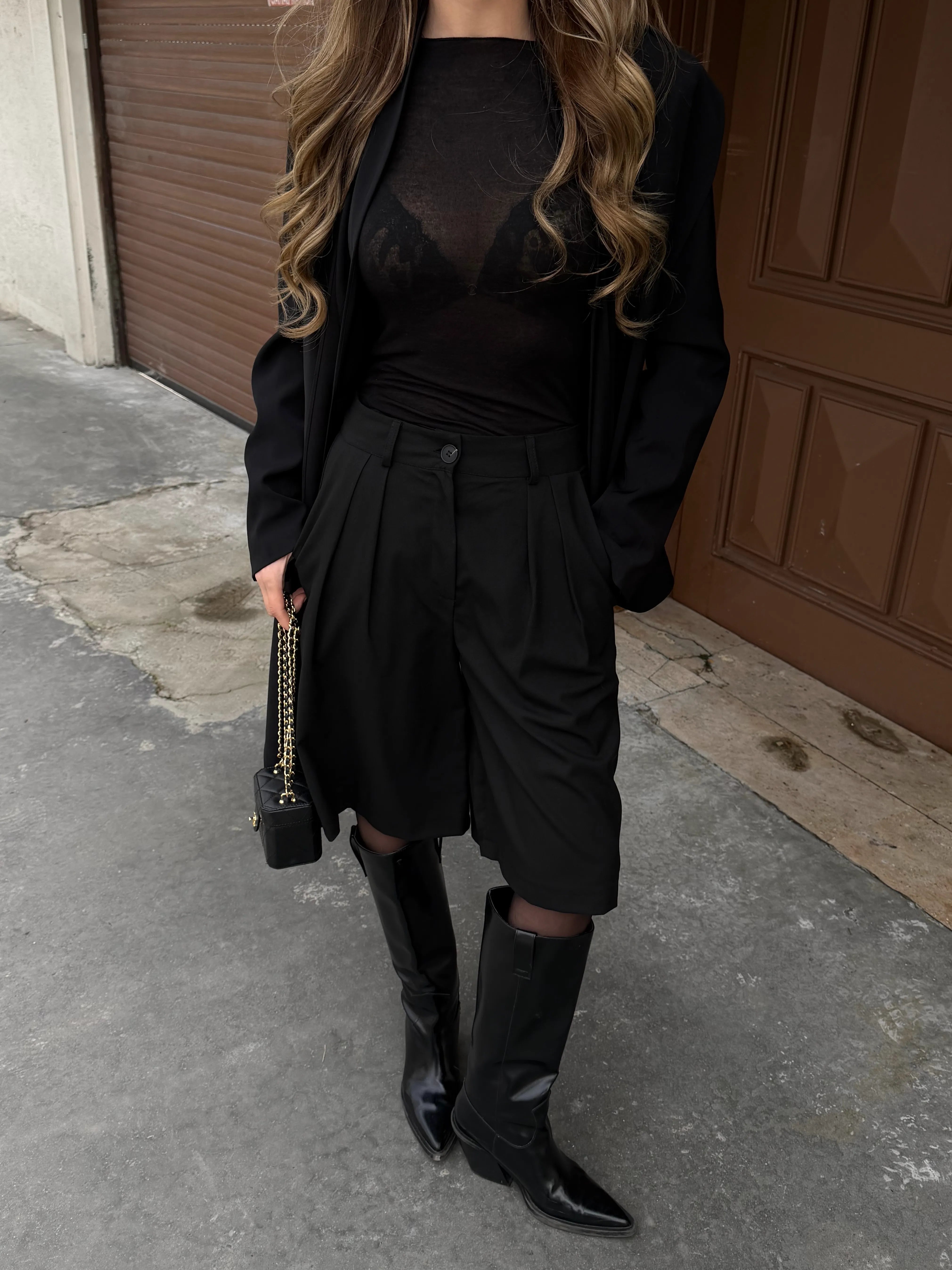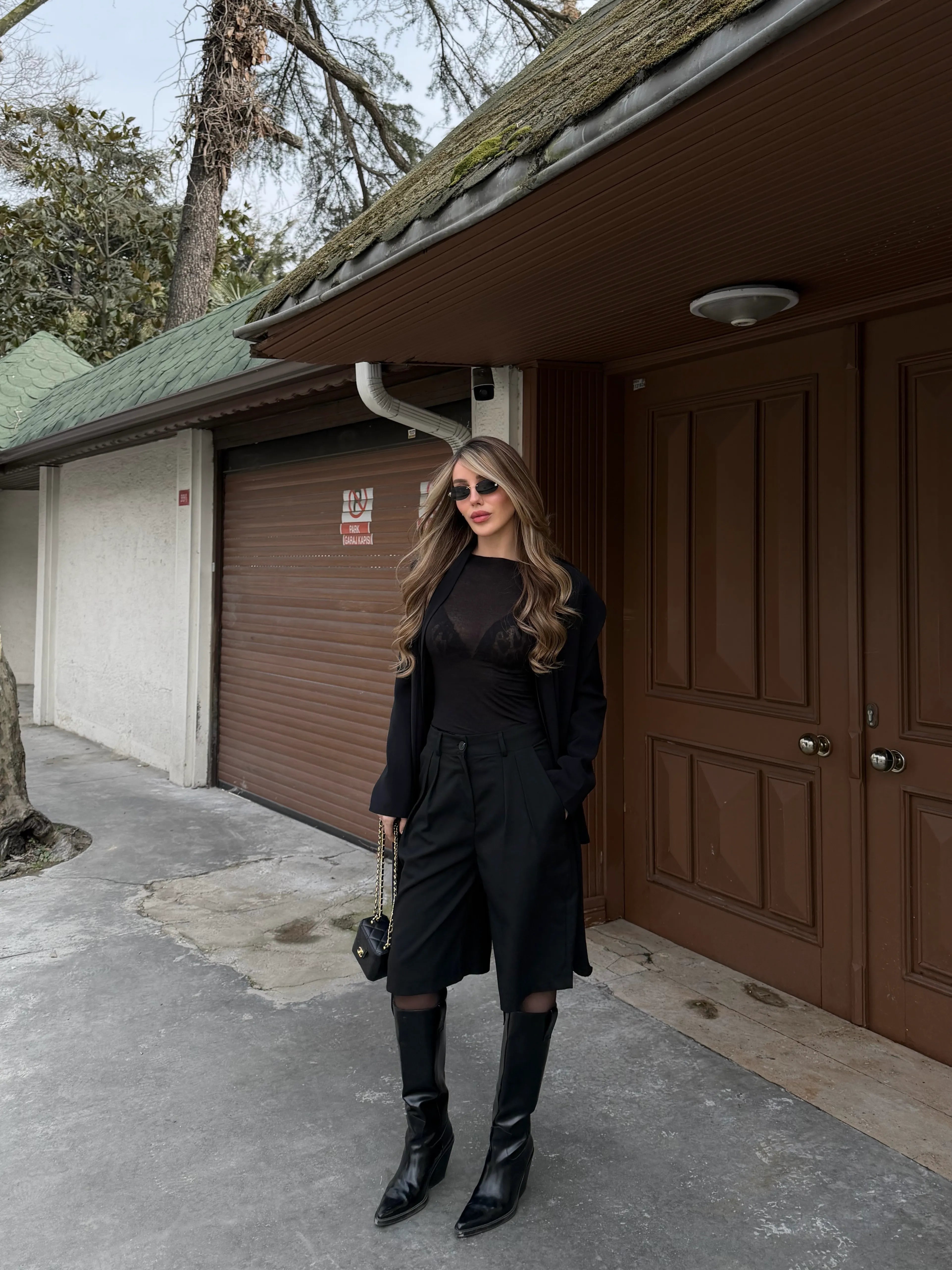 Günlük şıklığa modern bir dokunuş katan bu şort, güçlü duruşu ve temiz kesimiyle stilinizi tamamlar. Ön kısmındaki pile detayları hareket kazandırırken, yüksek bel formu vücut hattını zarif bir şekilde dengeler. Gün boyu konfor sunan yapısıyla hem şehir temposuna hem de şık kombinlere kolayca uyum sağlar.