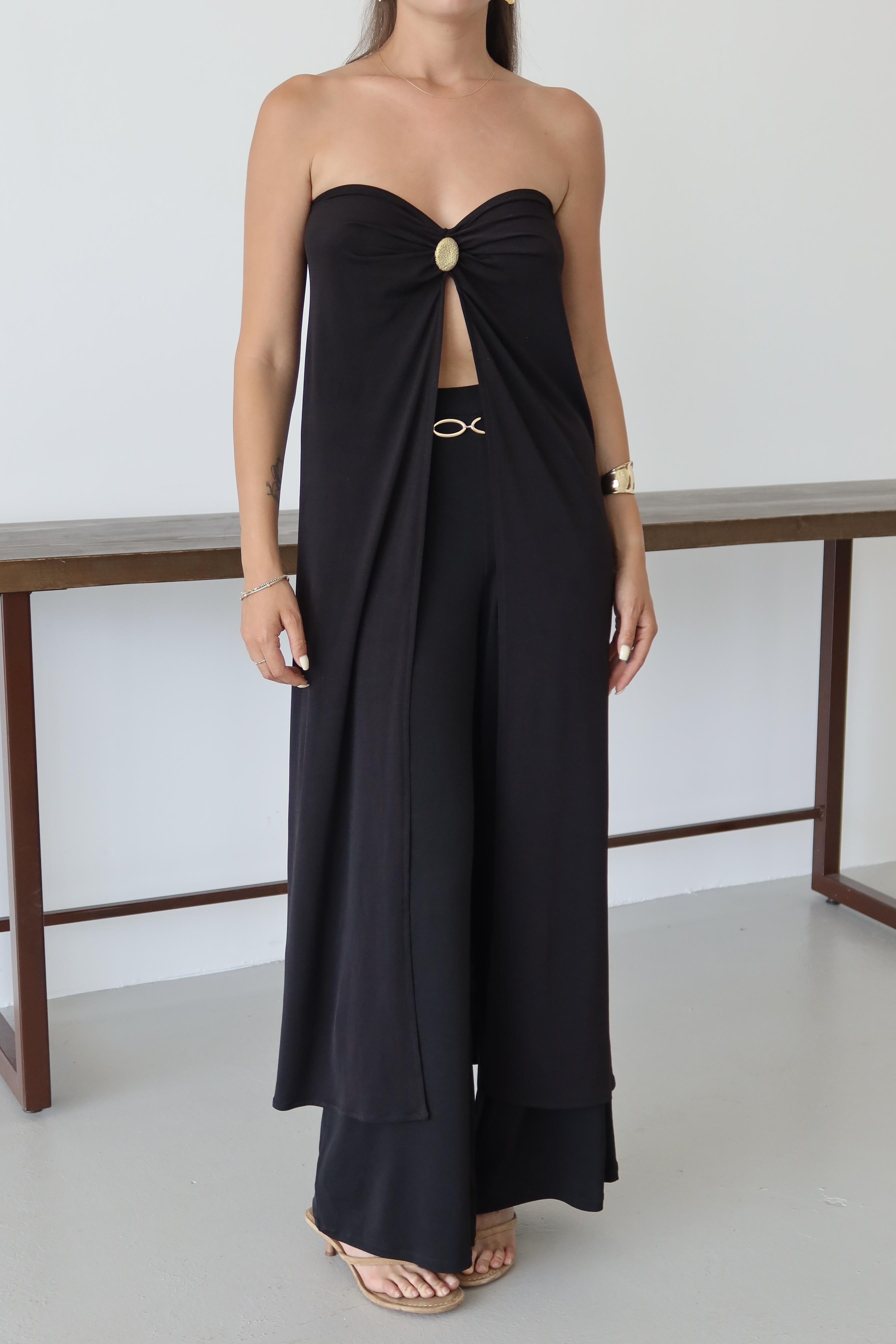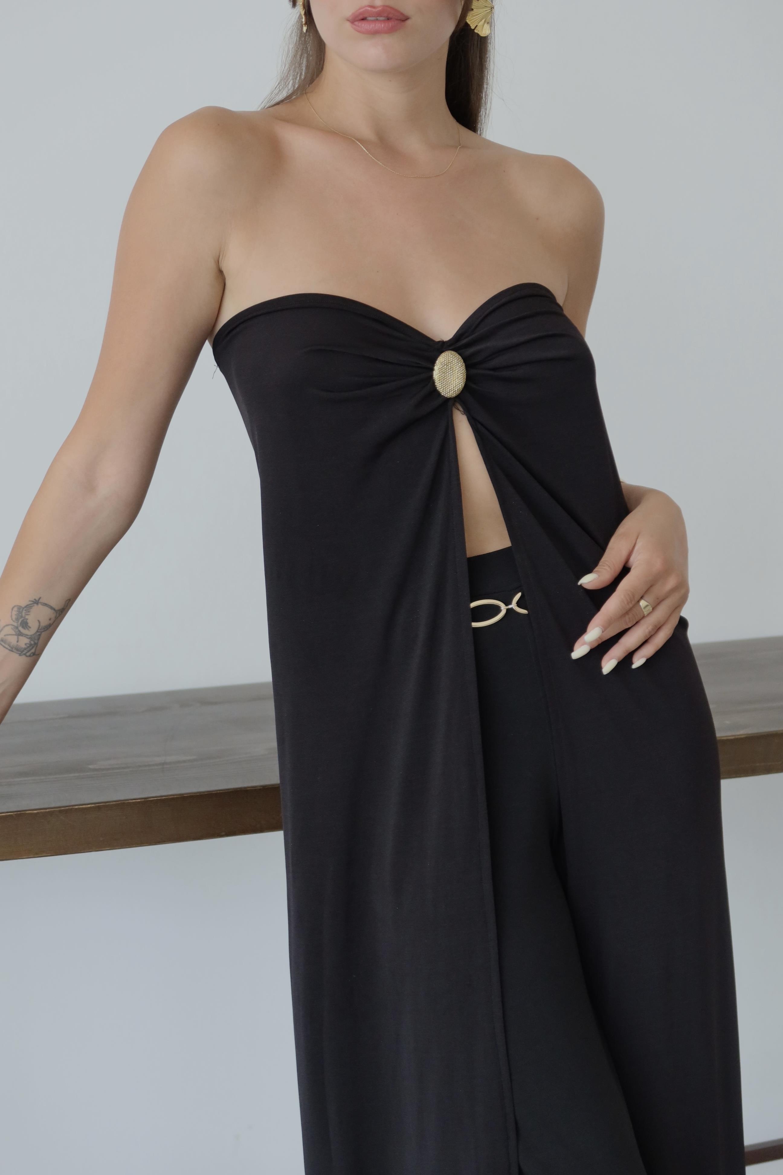 Siyah Tül Detaylı Uzun Triko Elbise - 251009