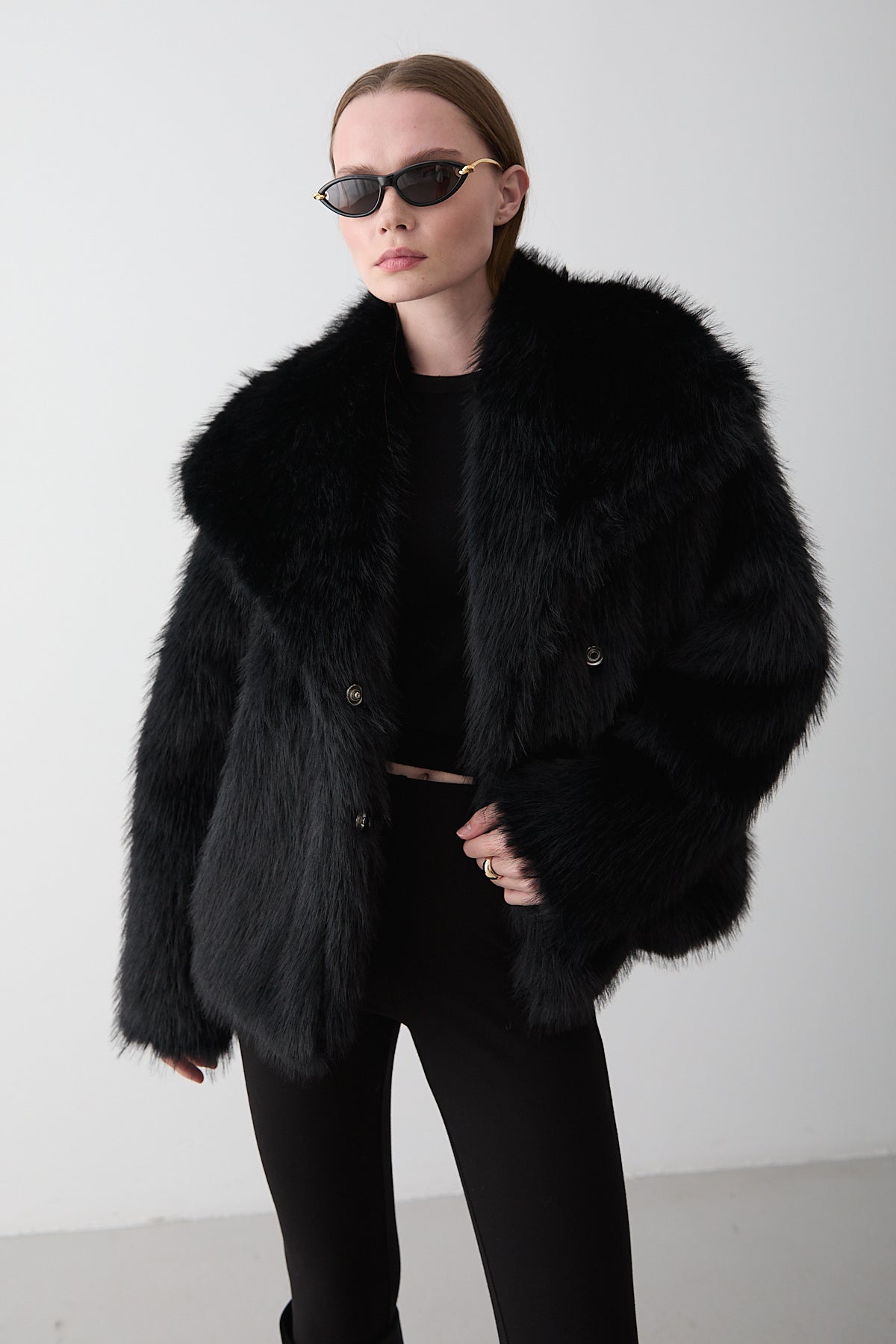 Siyah Yakası Fiyonk Detaylı Elbise- 2001
