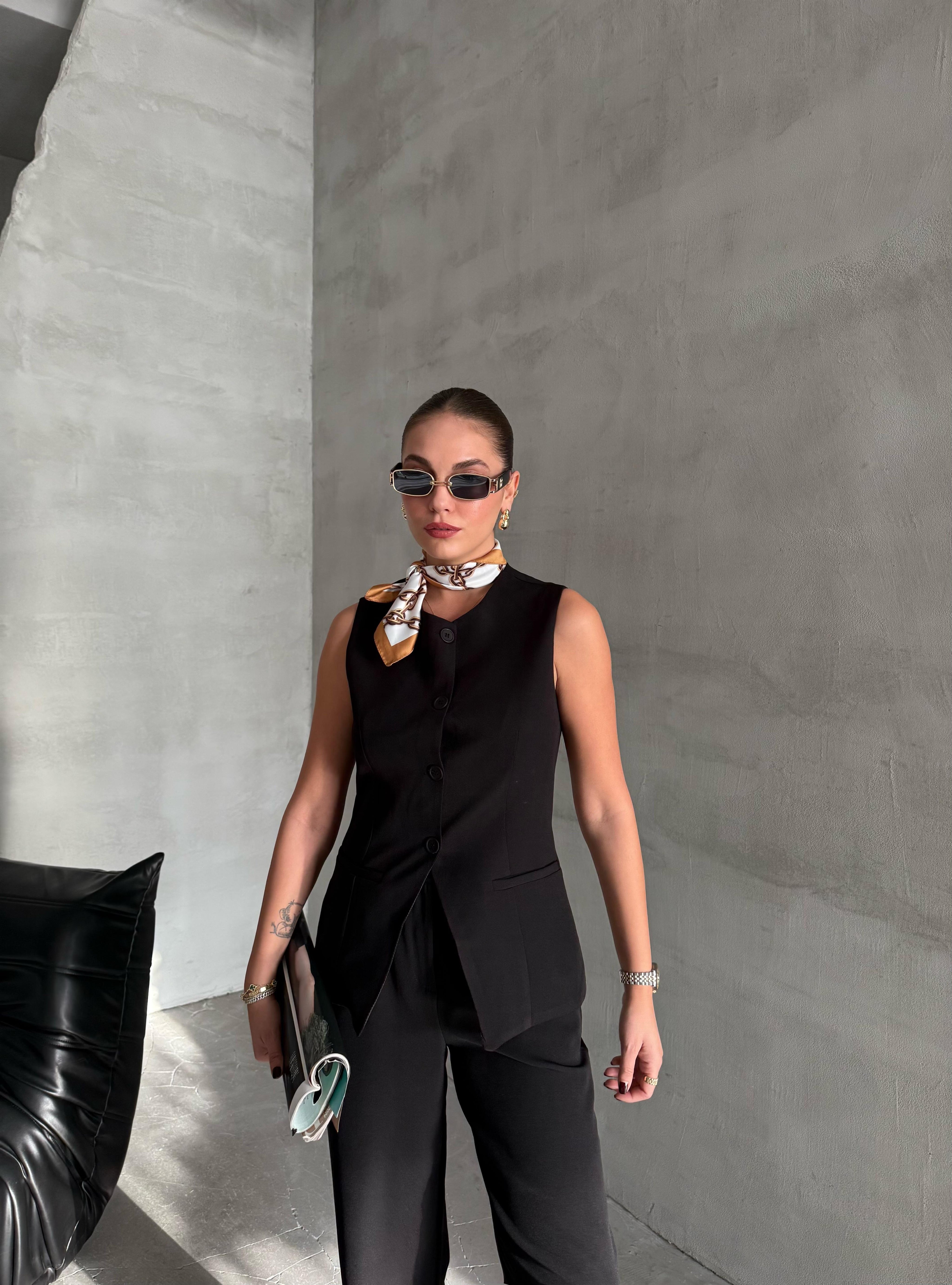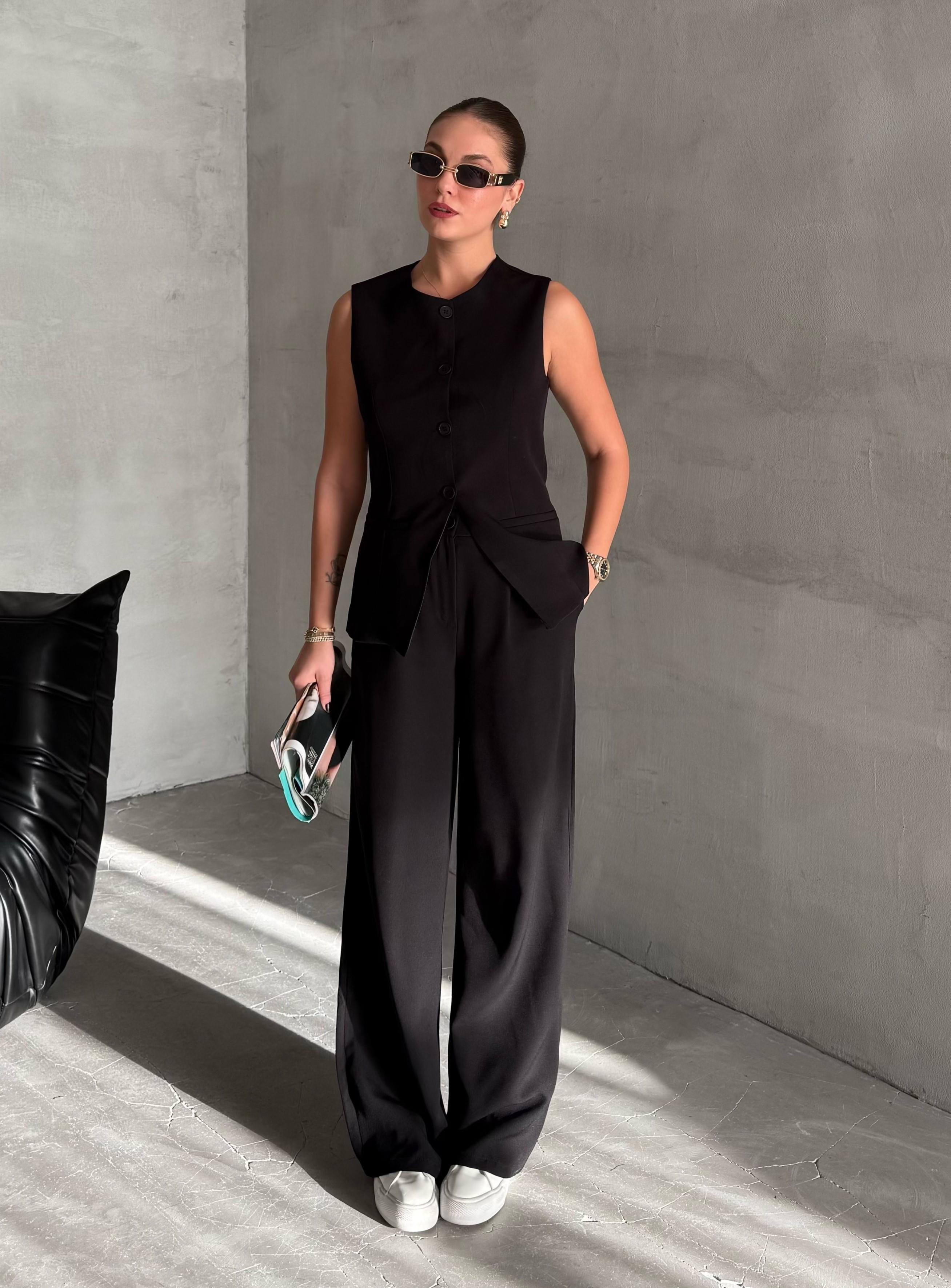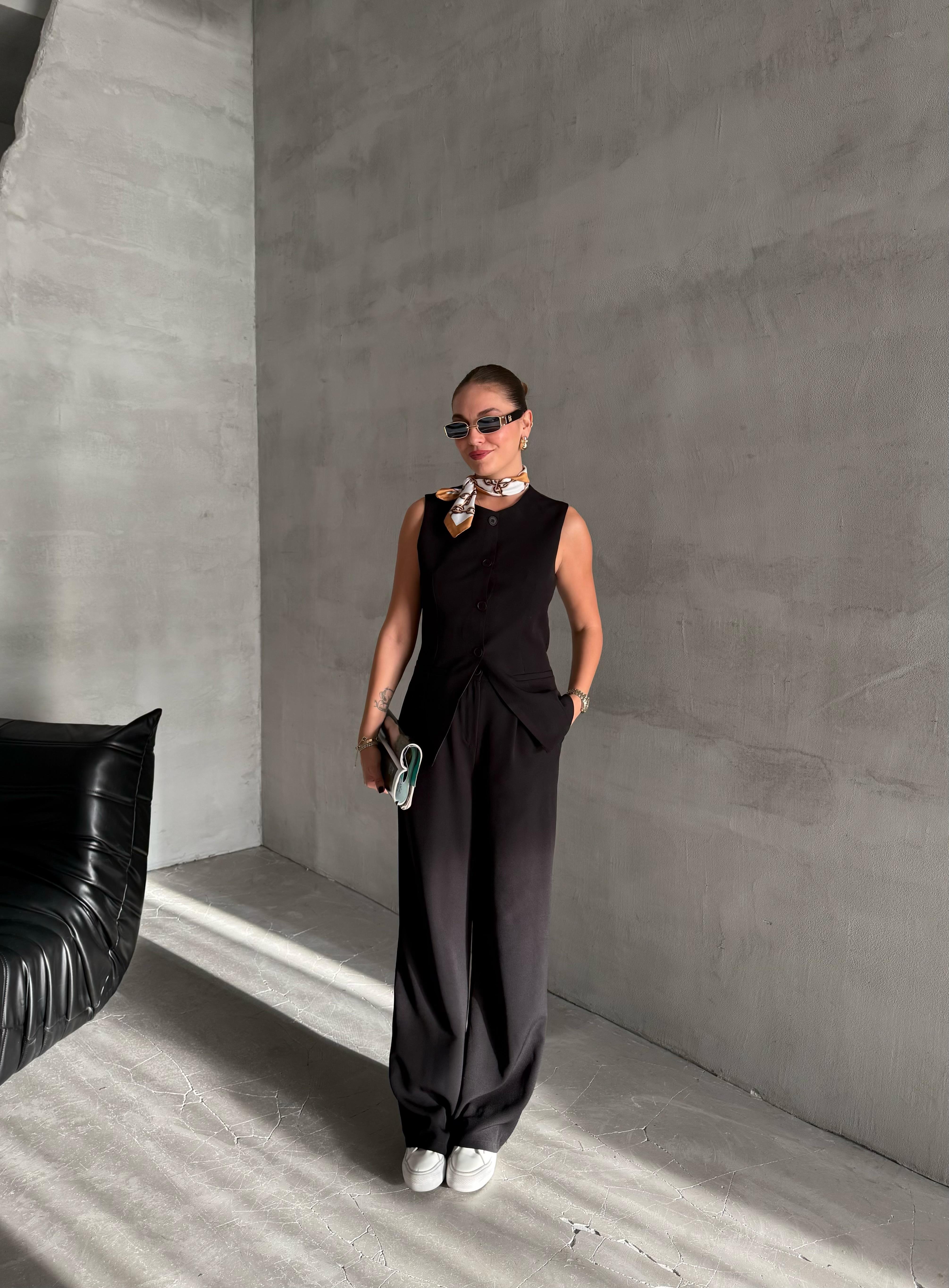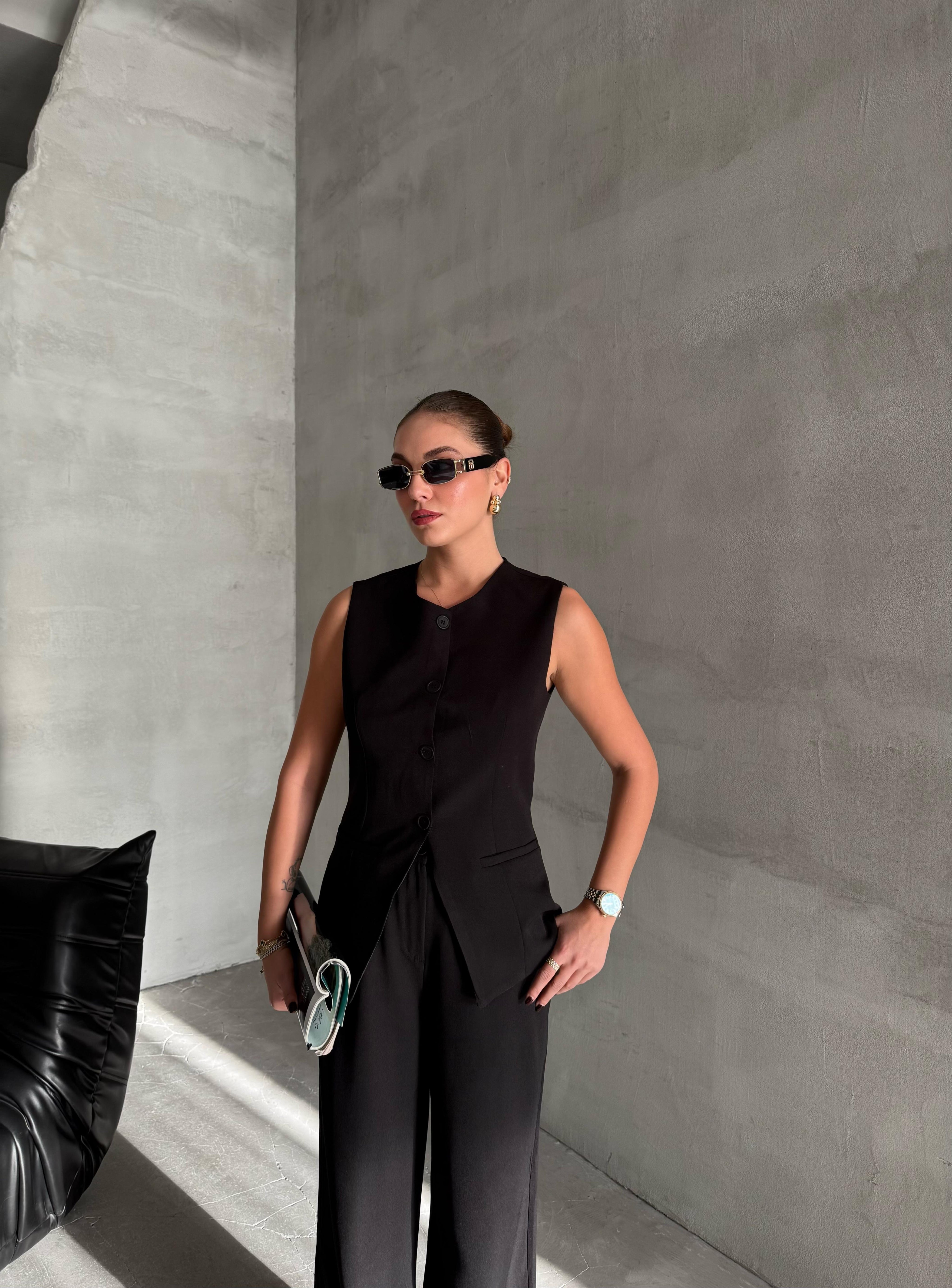 - Siyah Camille Klasik Düğmeli Yelek Pantolon Takım