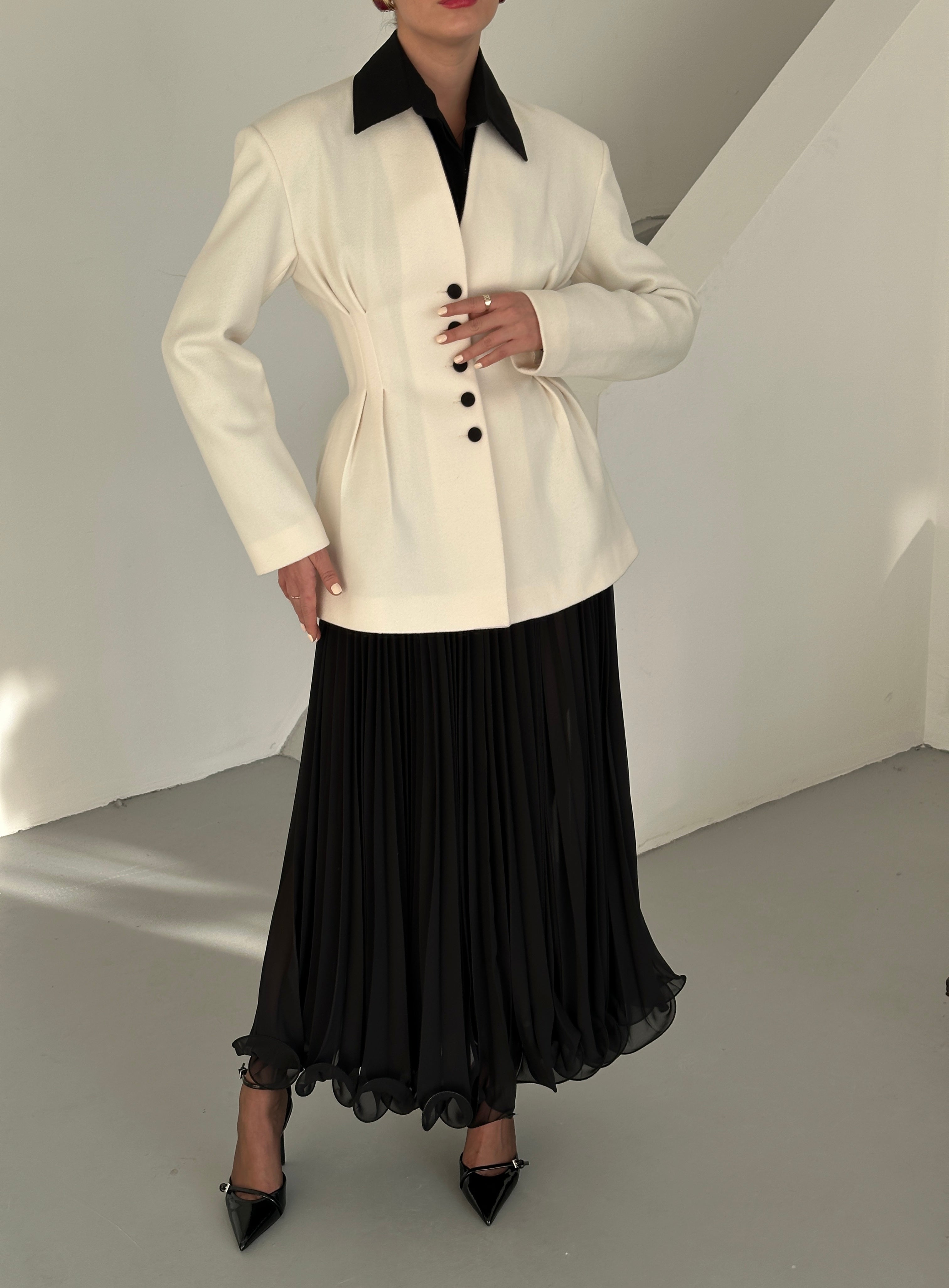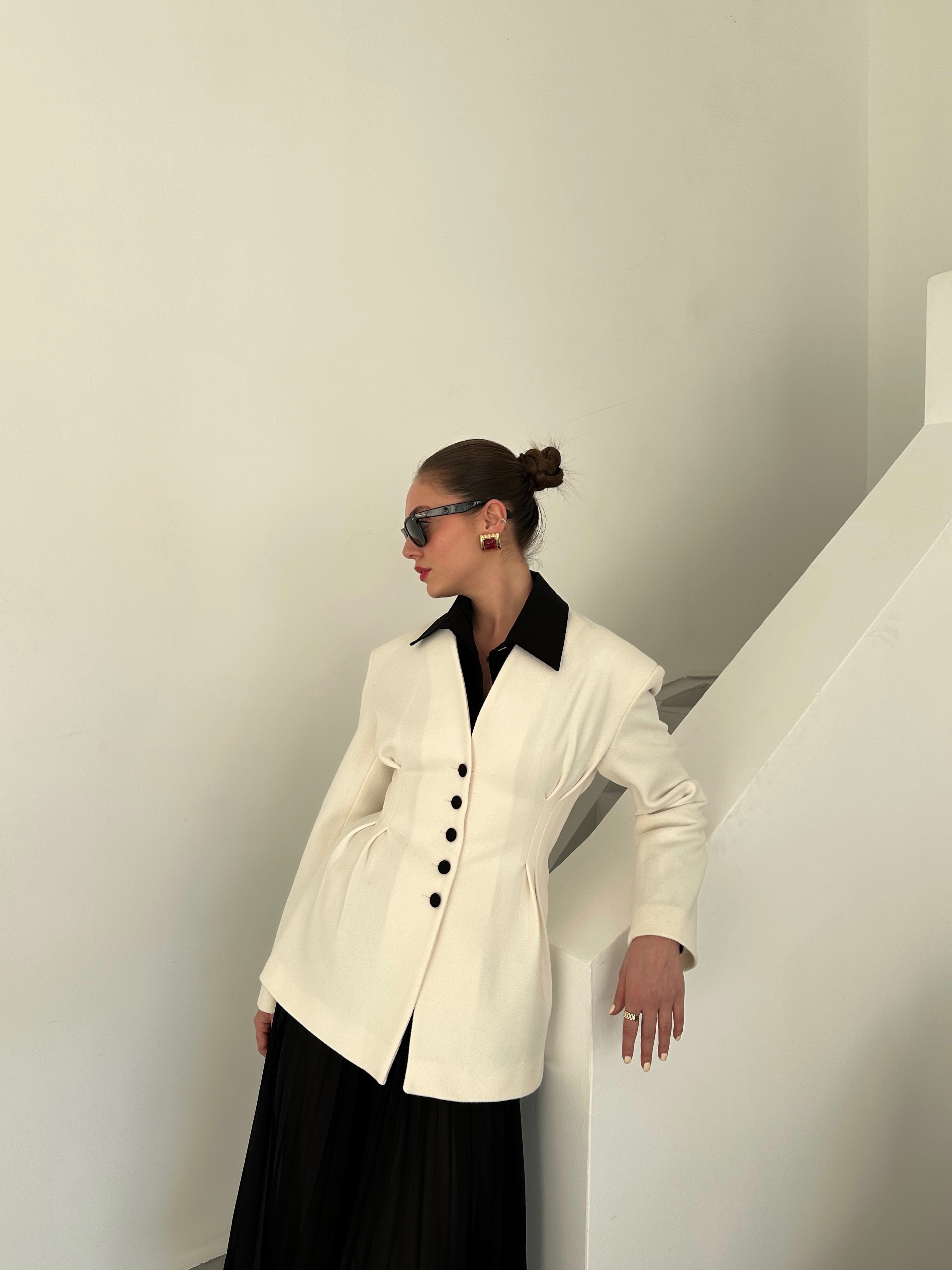 Siyah Düğmeli Tasarım Kaşe Ceket