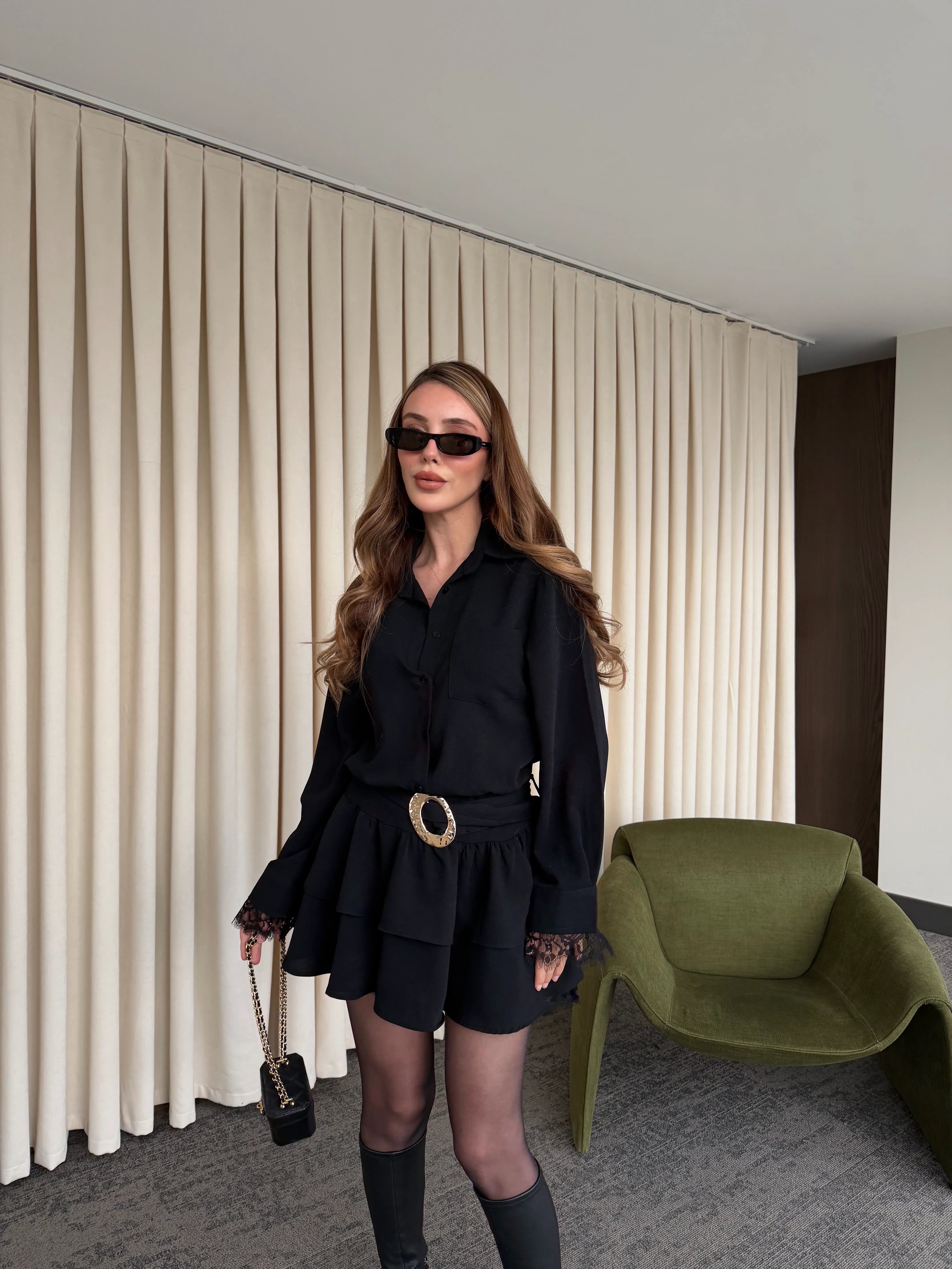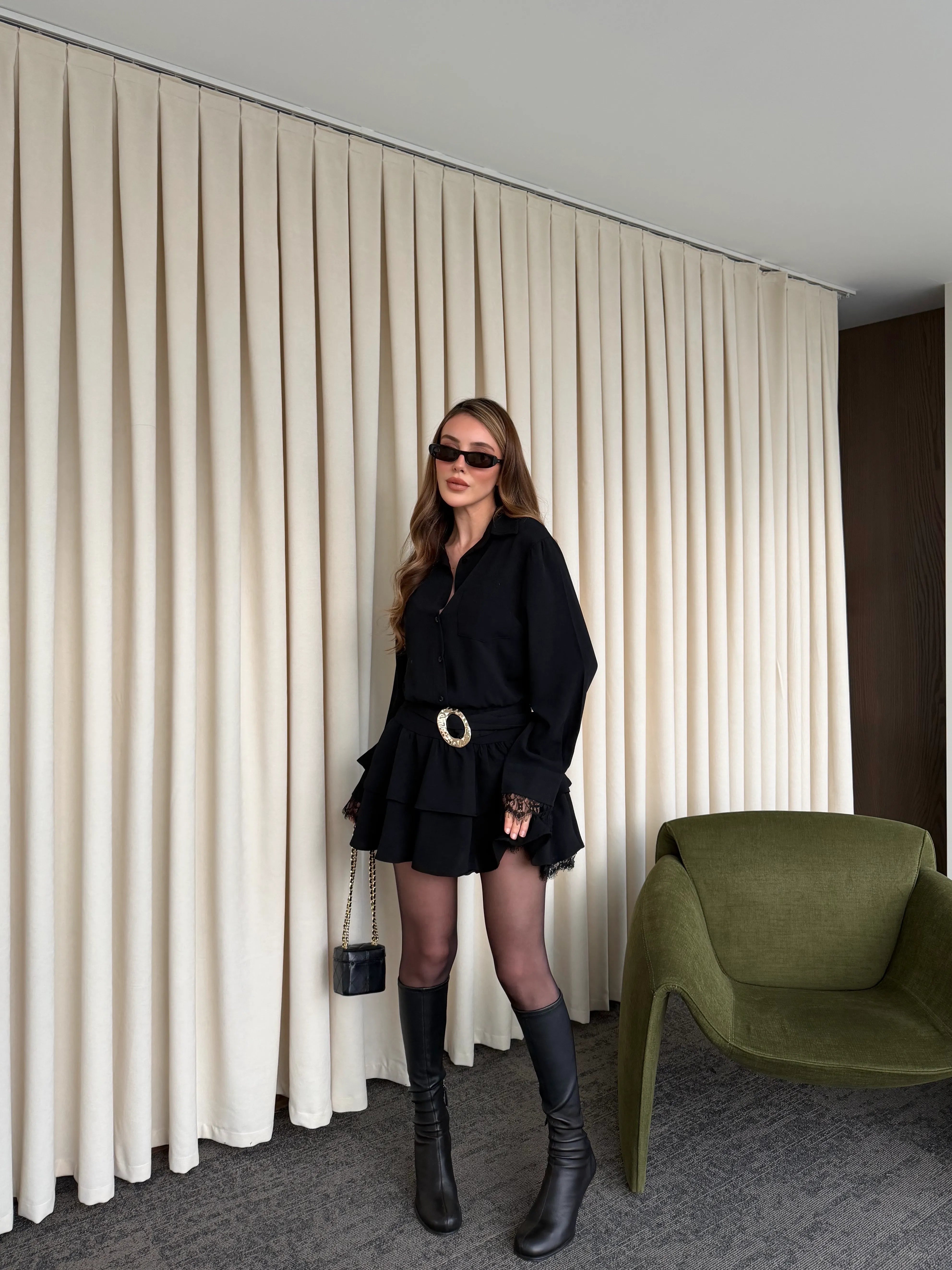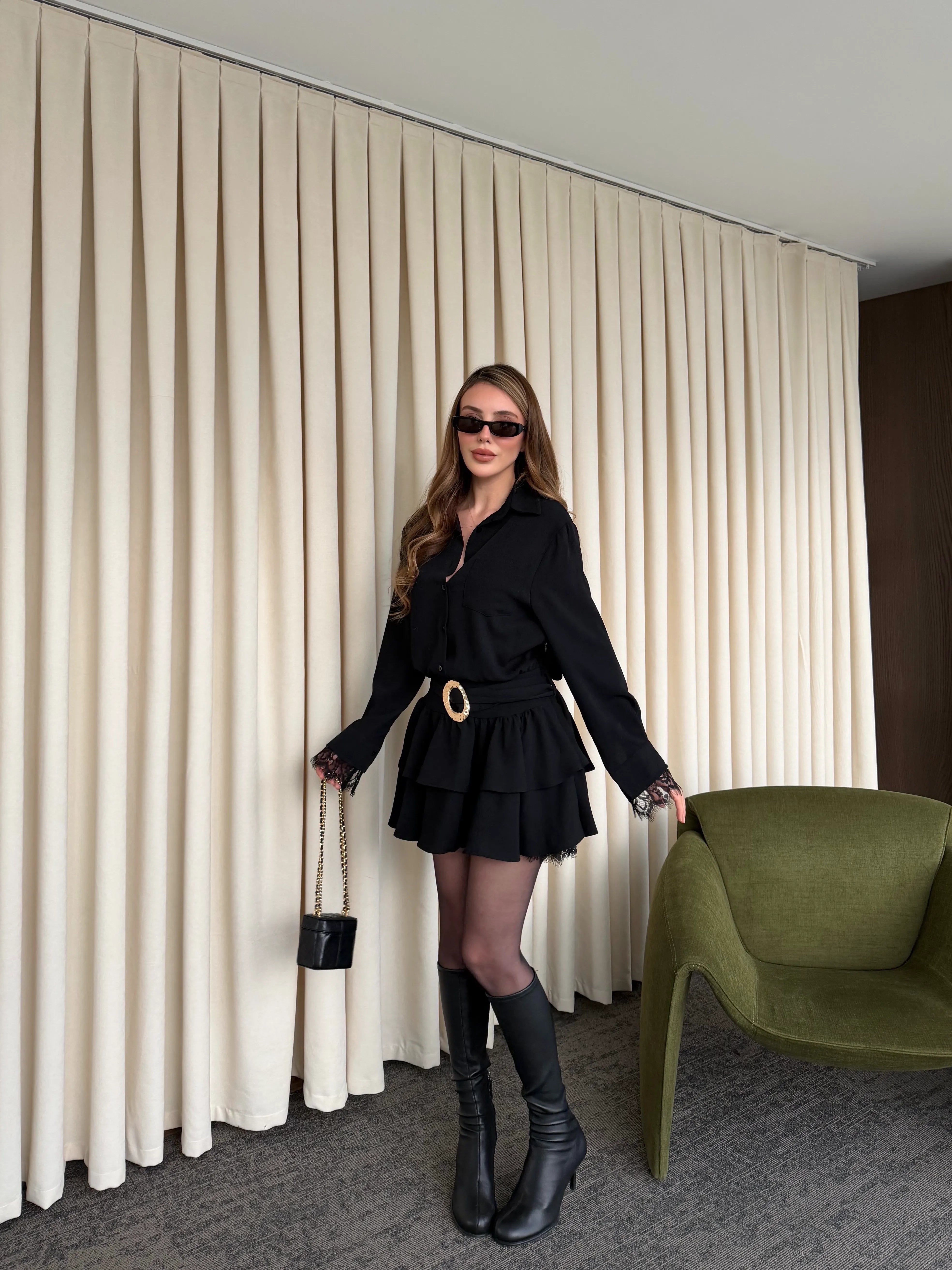 - Siyah Etek Ucu Dantel Detaylı Elbise - 35518