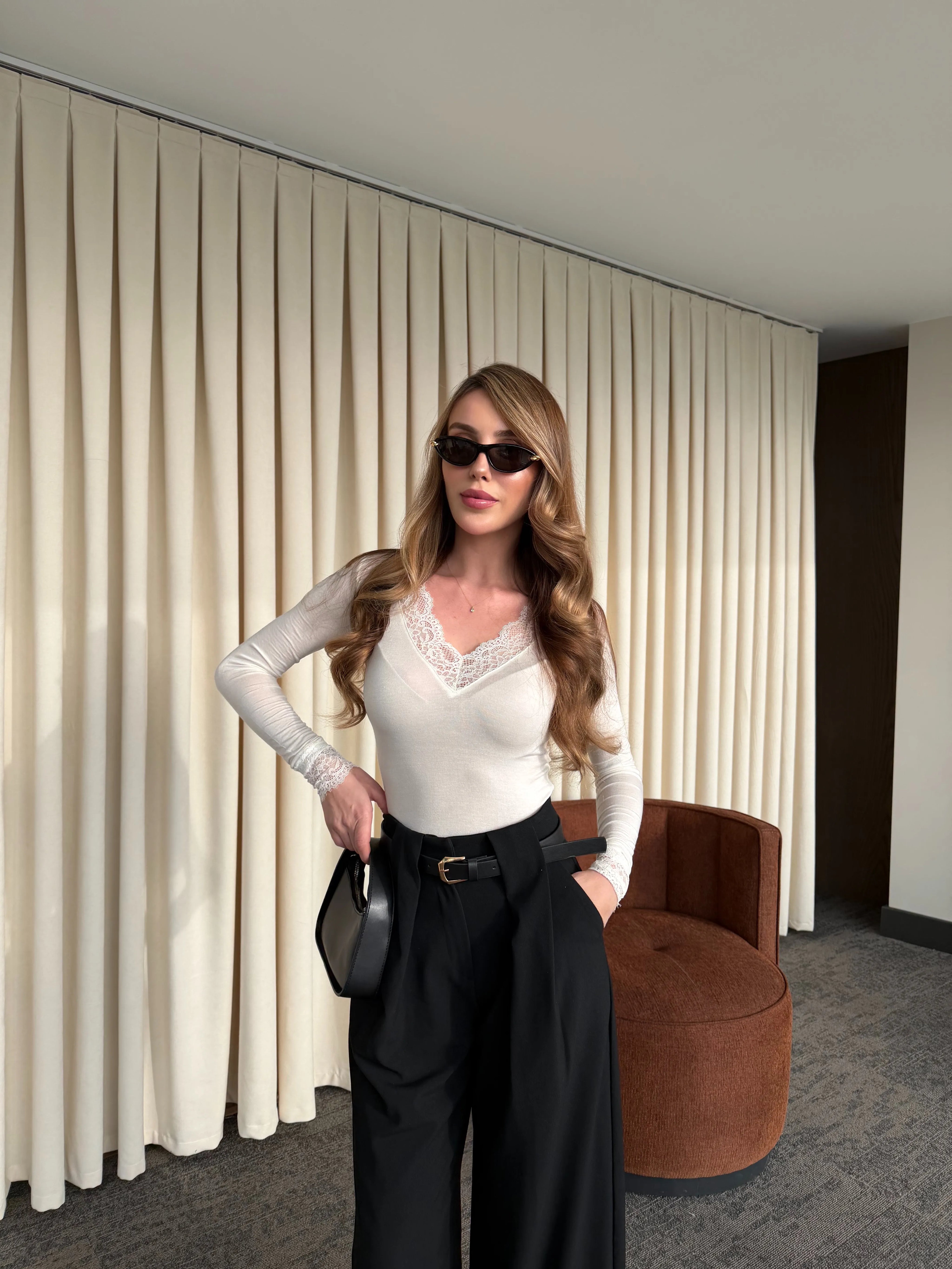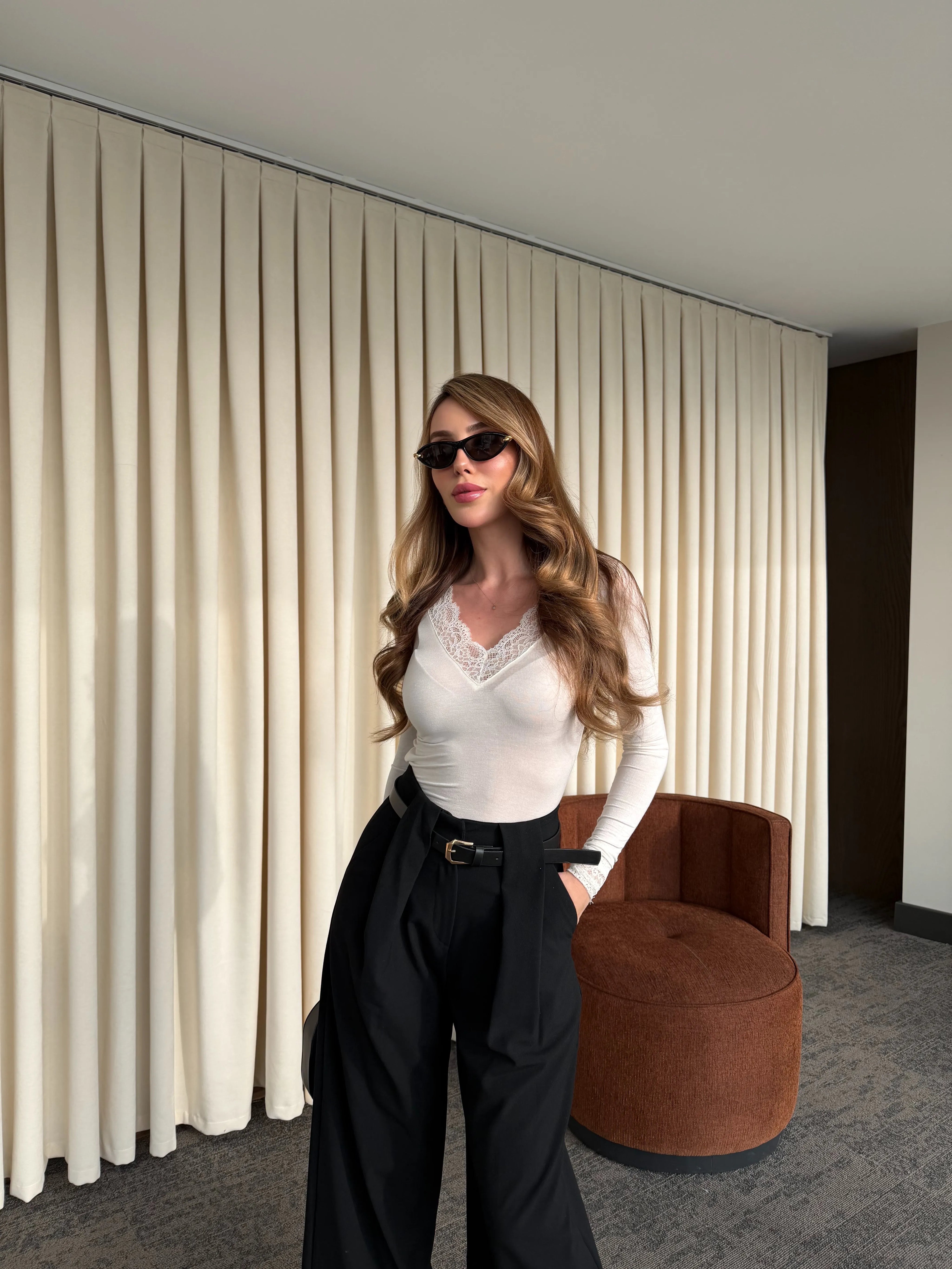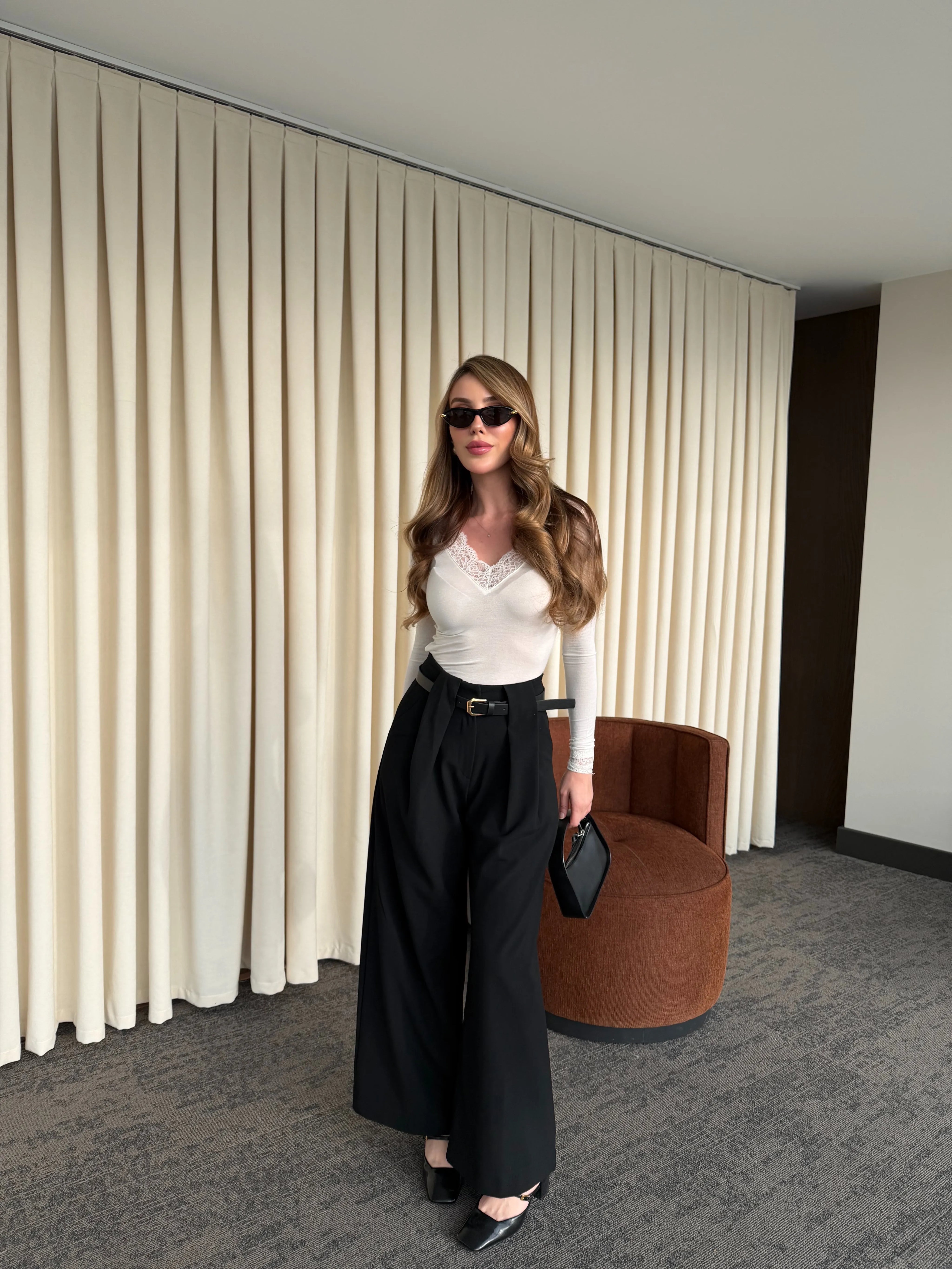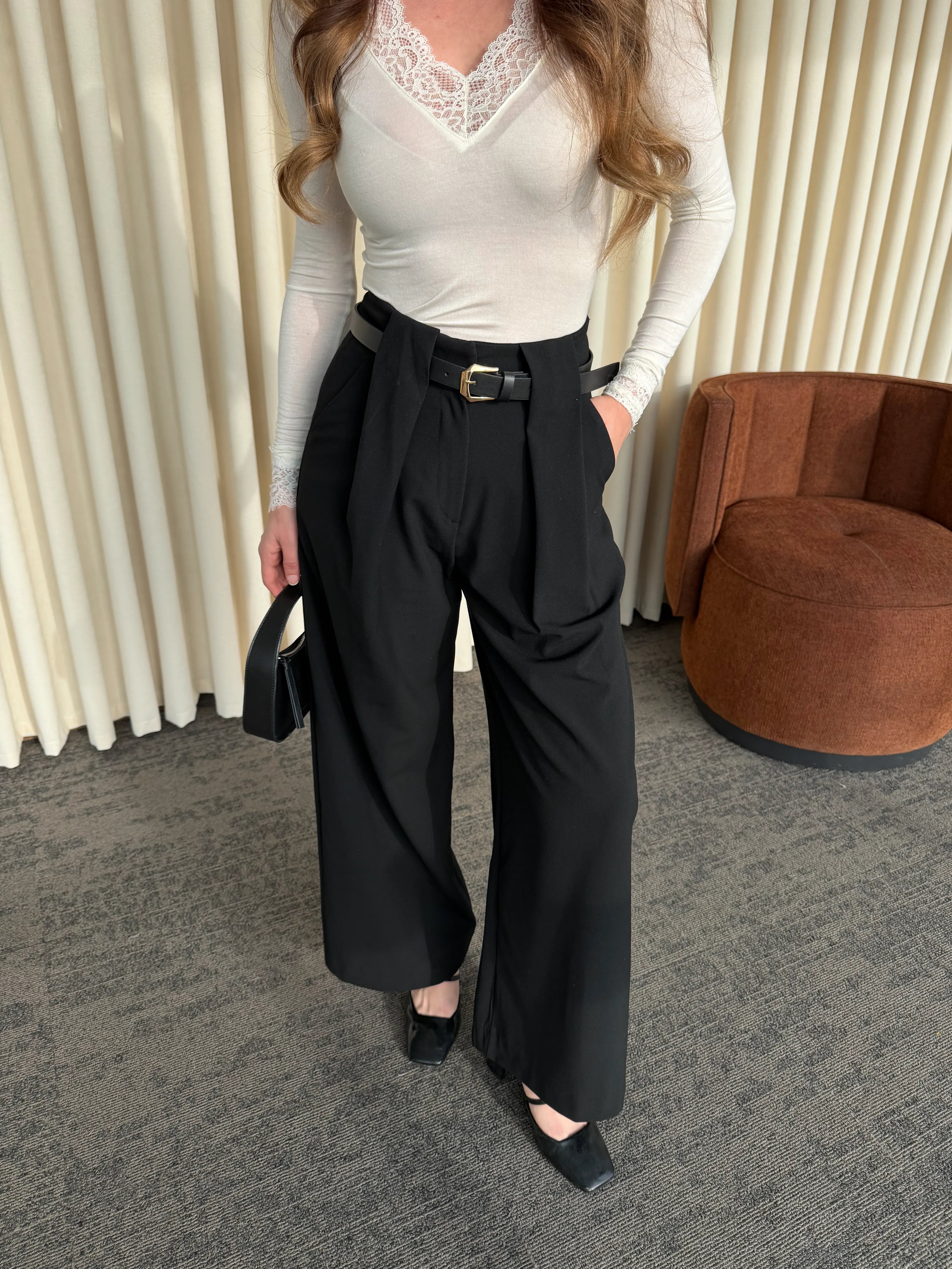 - Siyah Kemerli Tasarım Pantolon - 251032