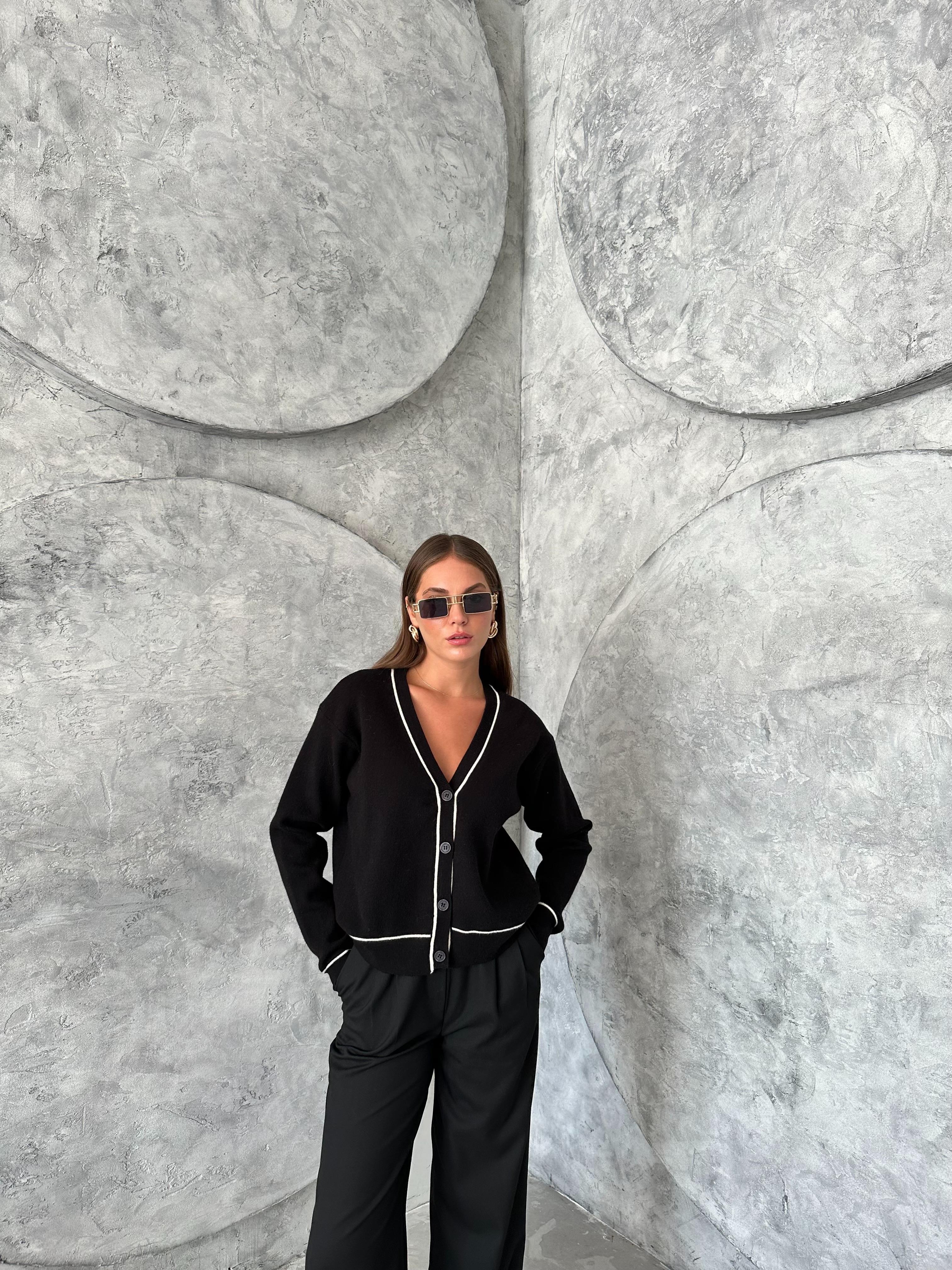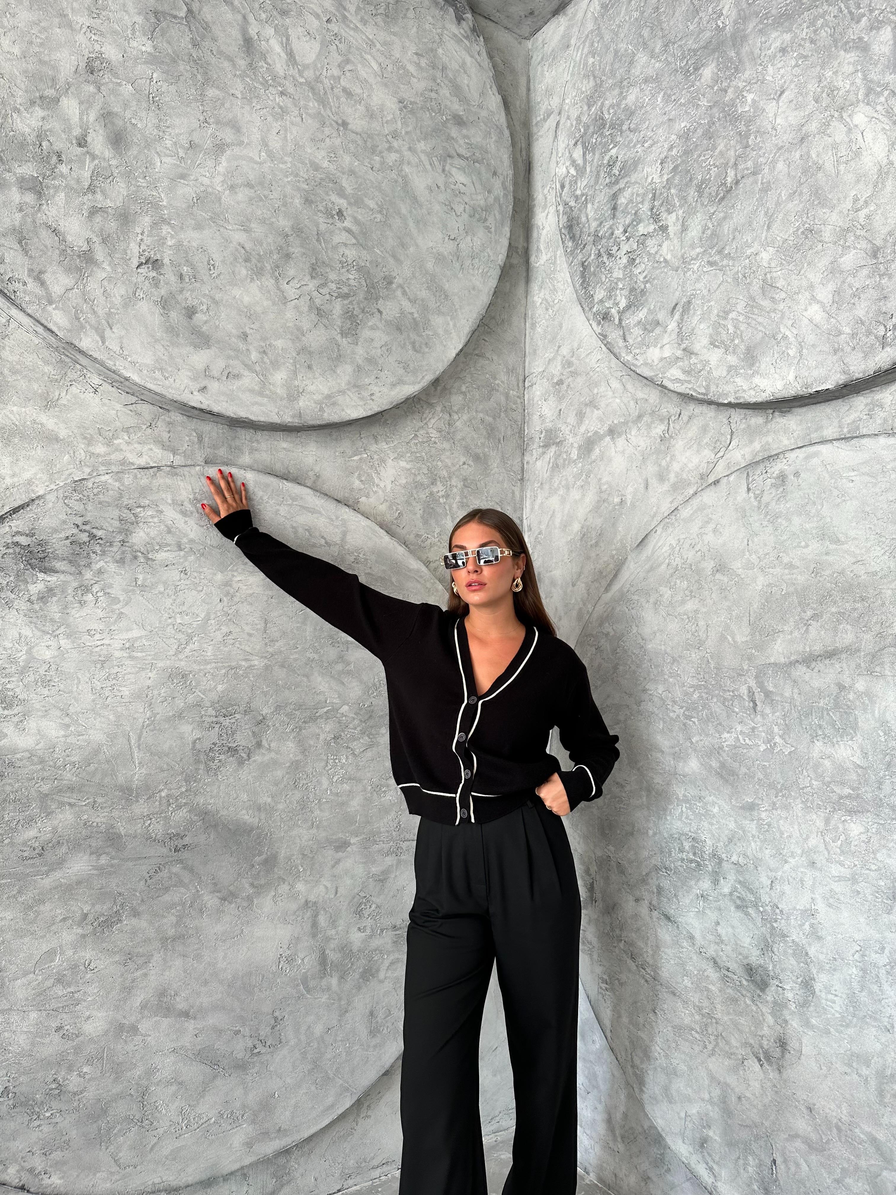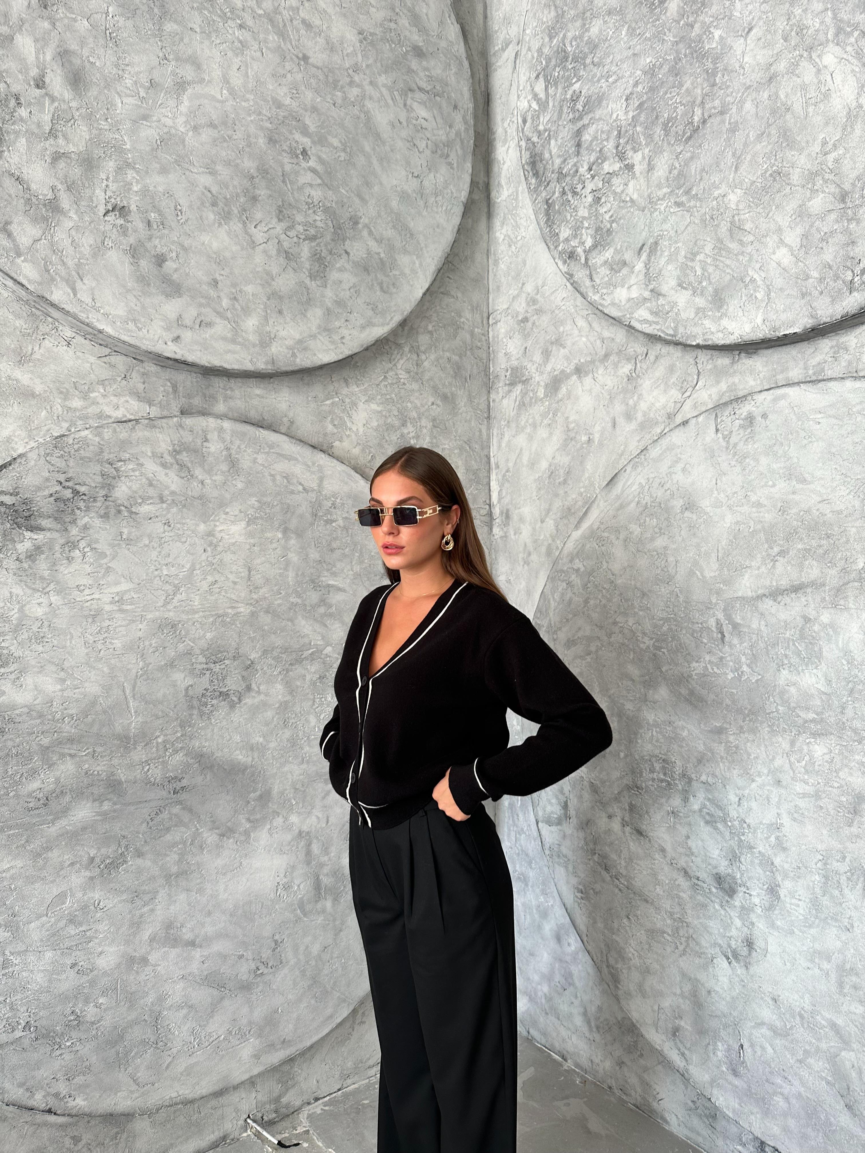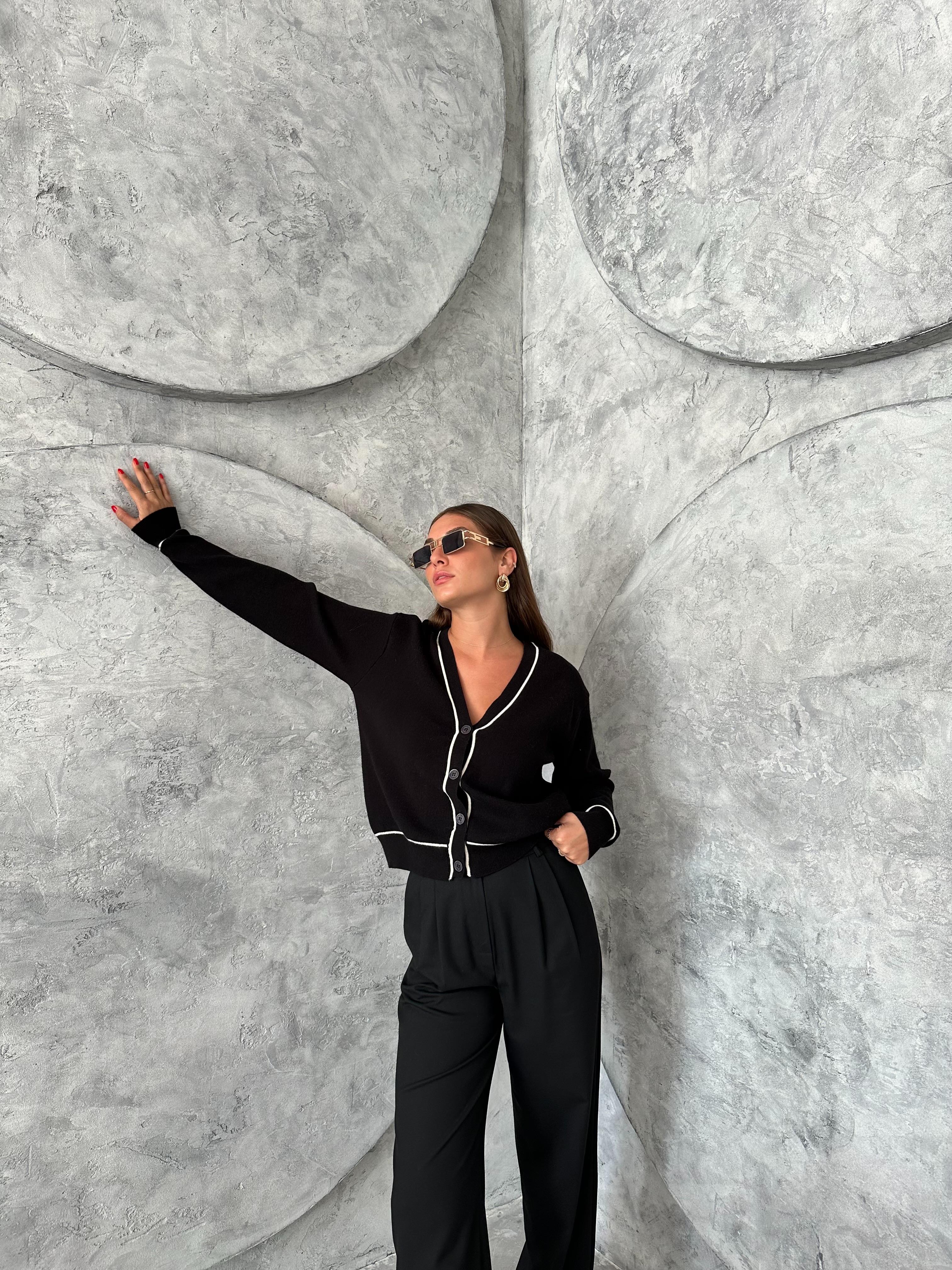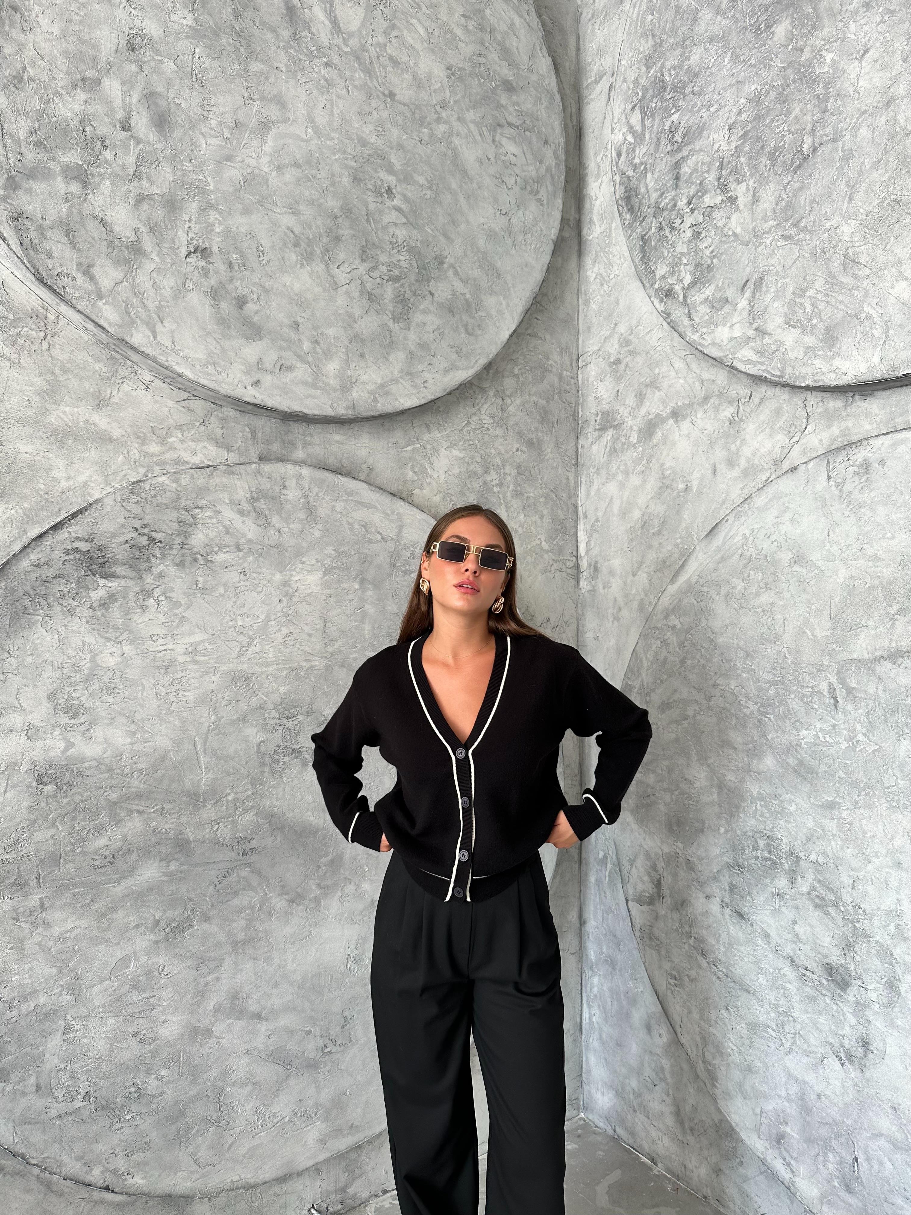 Ürün boyu 52 cm, göğüs 51 cm'dir. Ürün içeriği %77 akrilik, %23 polyesterdir. Manken boyu 170 cm, kilosu 50 kg'dır. Manken göğüs 80 cm, bel 60 cm, basen 90 cm'dir. Mankende standart beden kullanılmıştır.