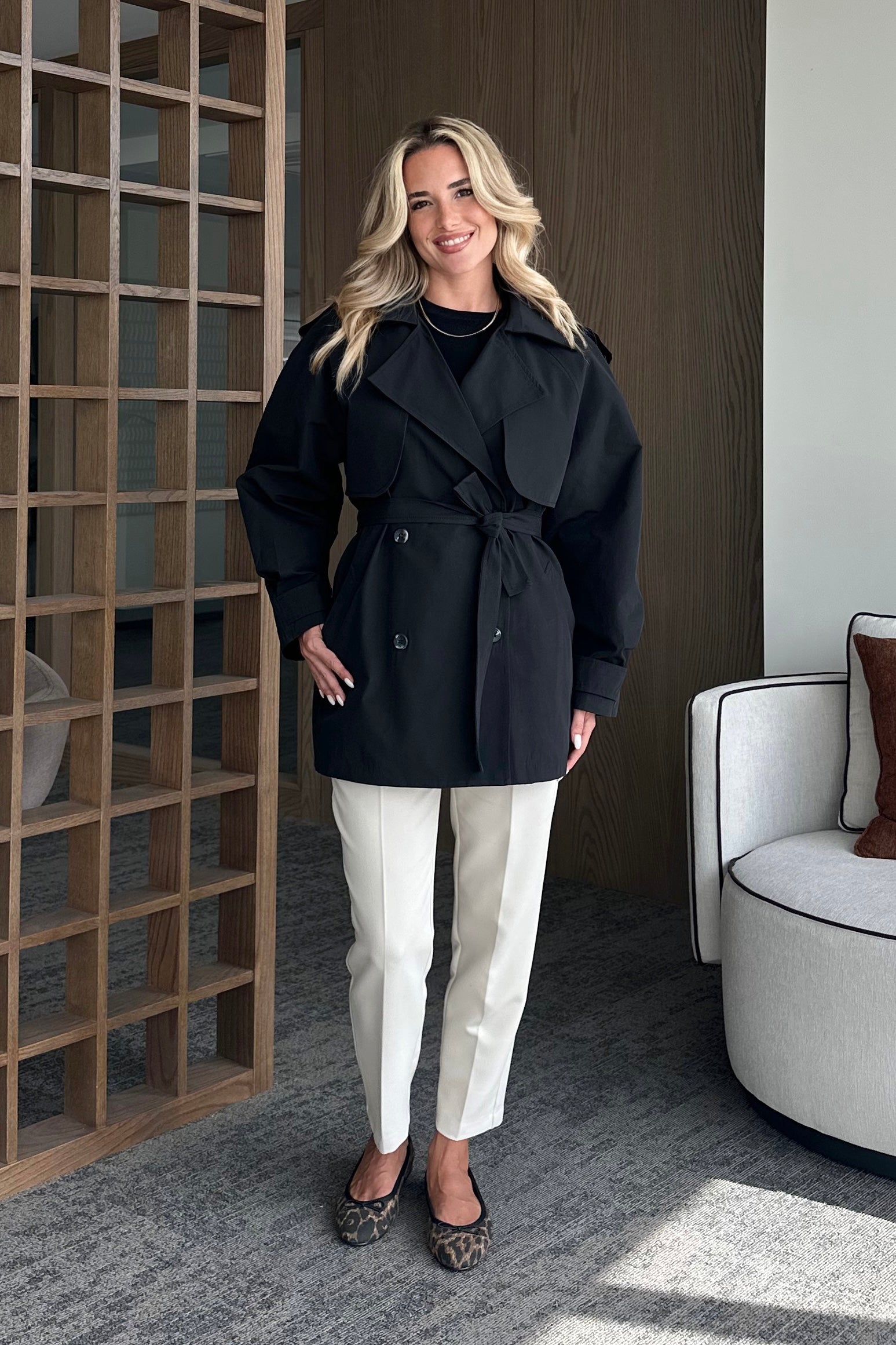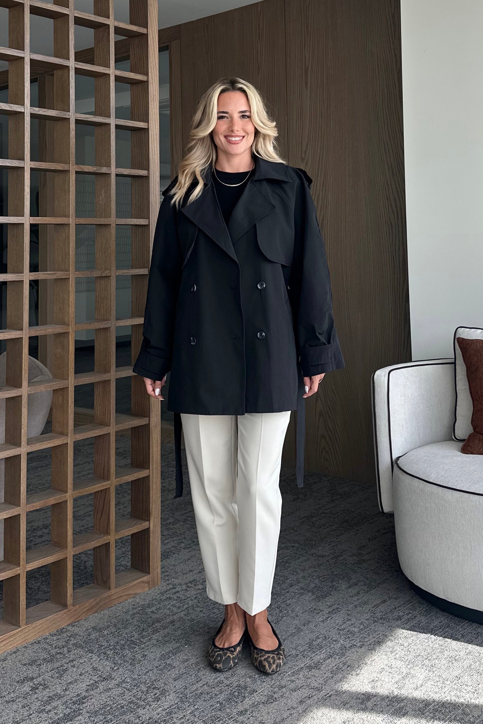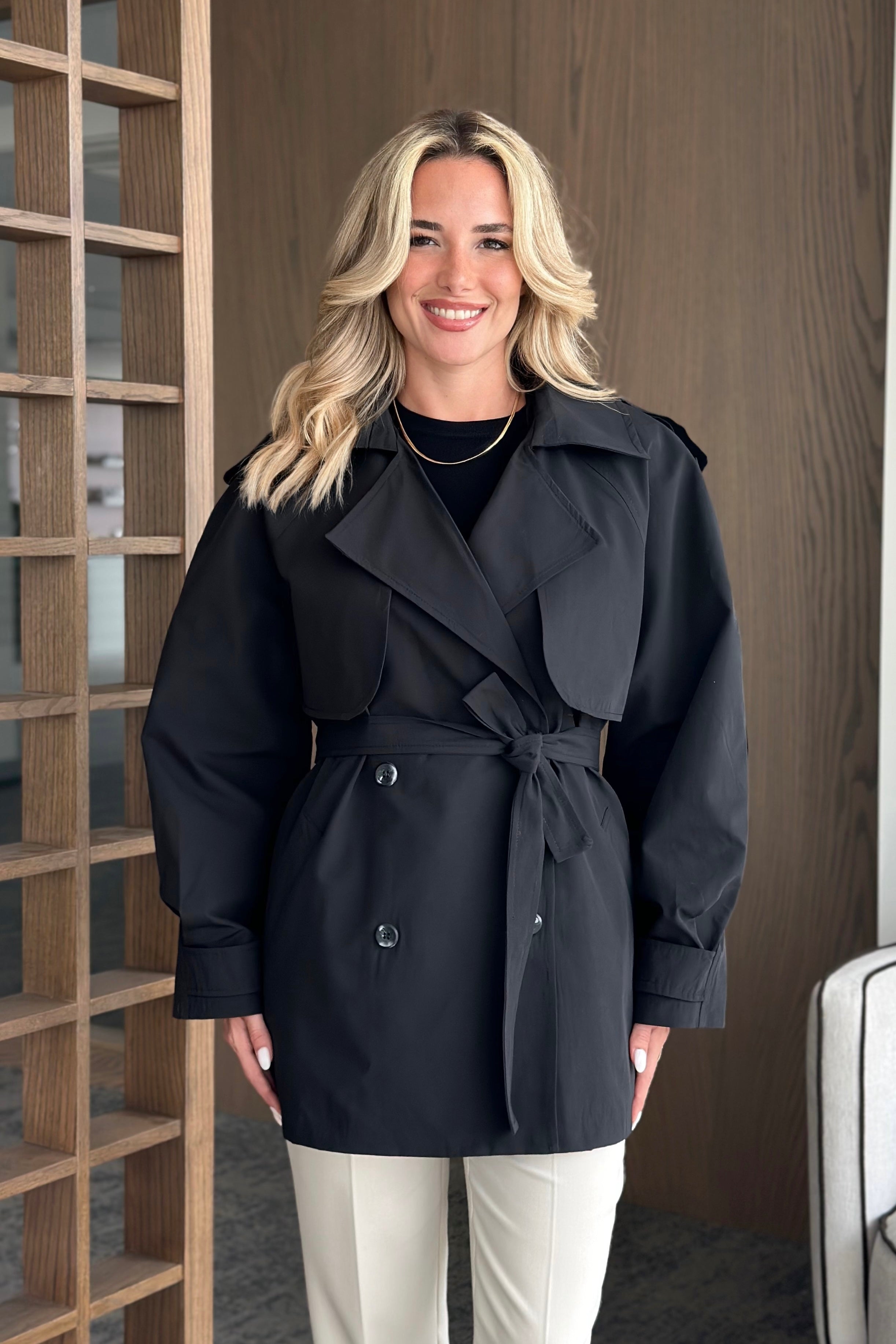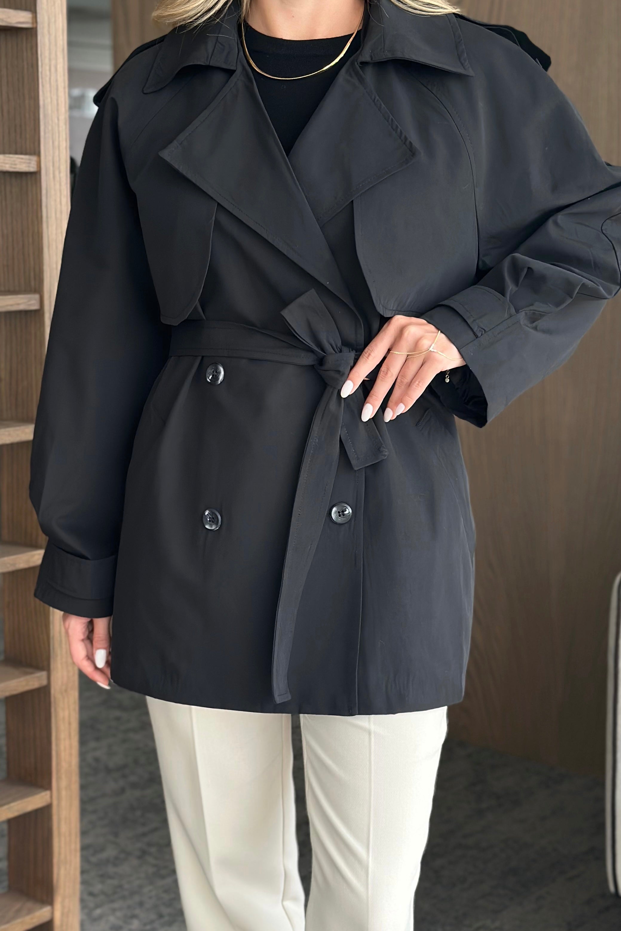 - Siyah Miyabi Rüzgarlık Detaylı Kuşaklı Kısa Trençkot - 7556