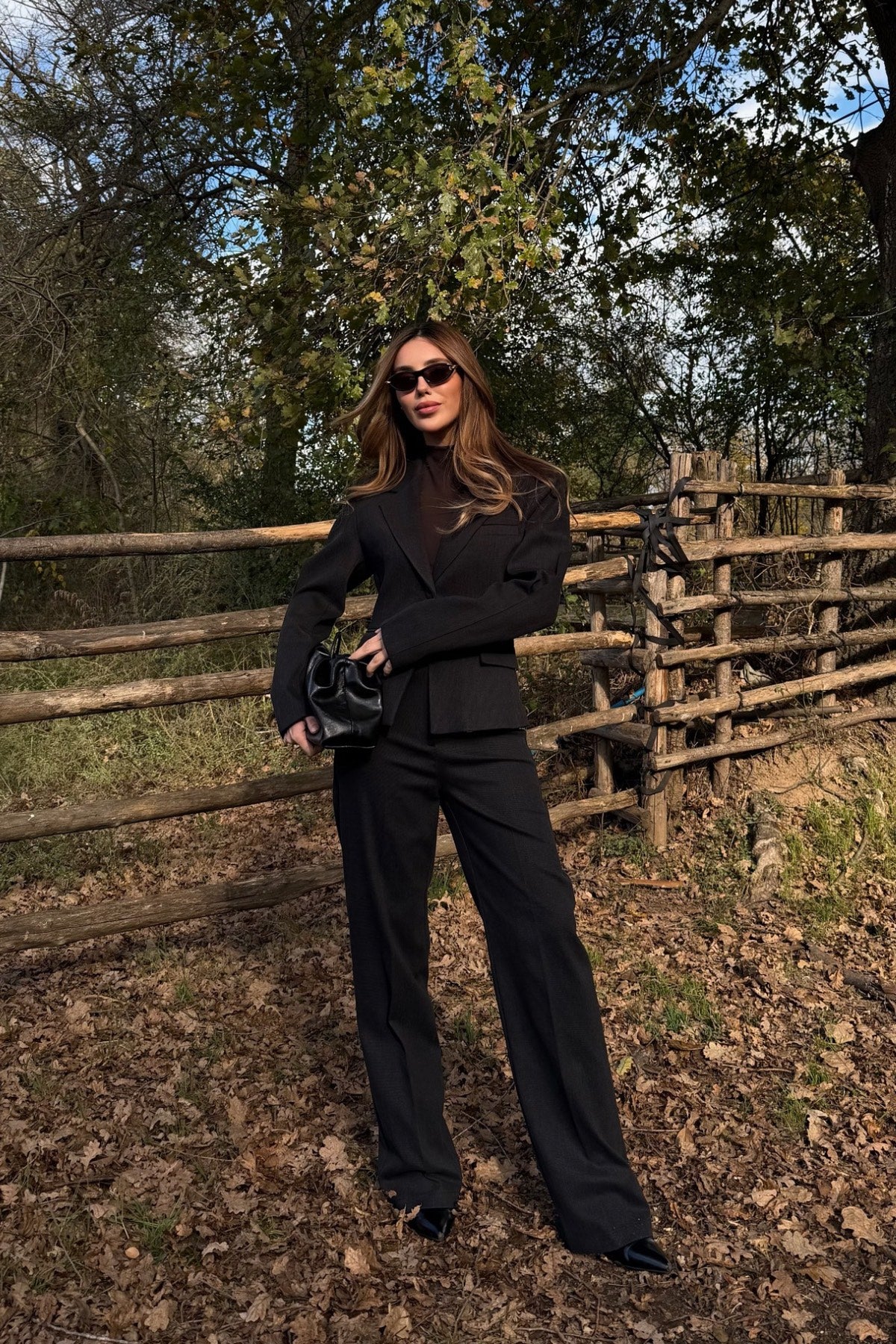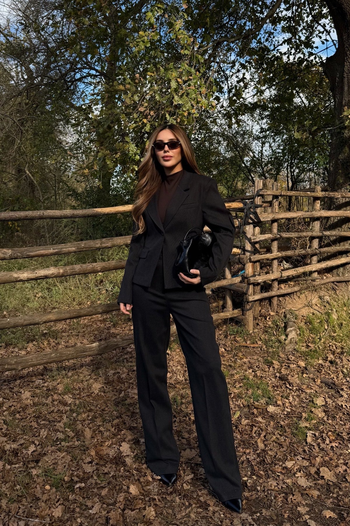 - Siyah Tek Düğmeli Ceket Pantolon Takım - 9480