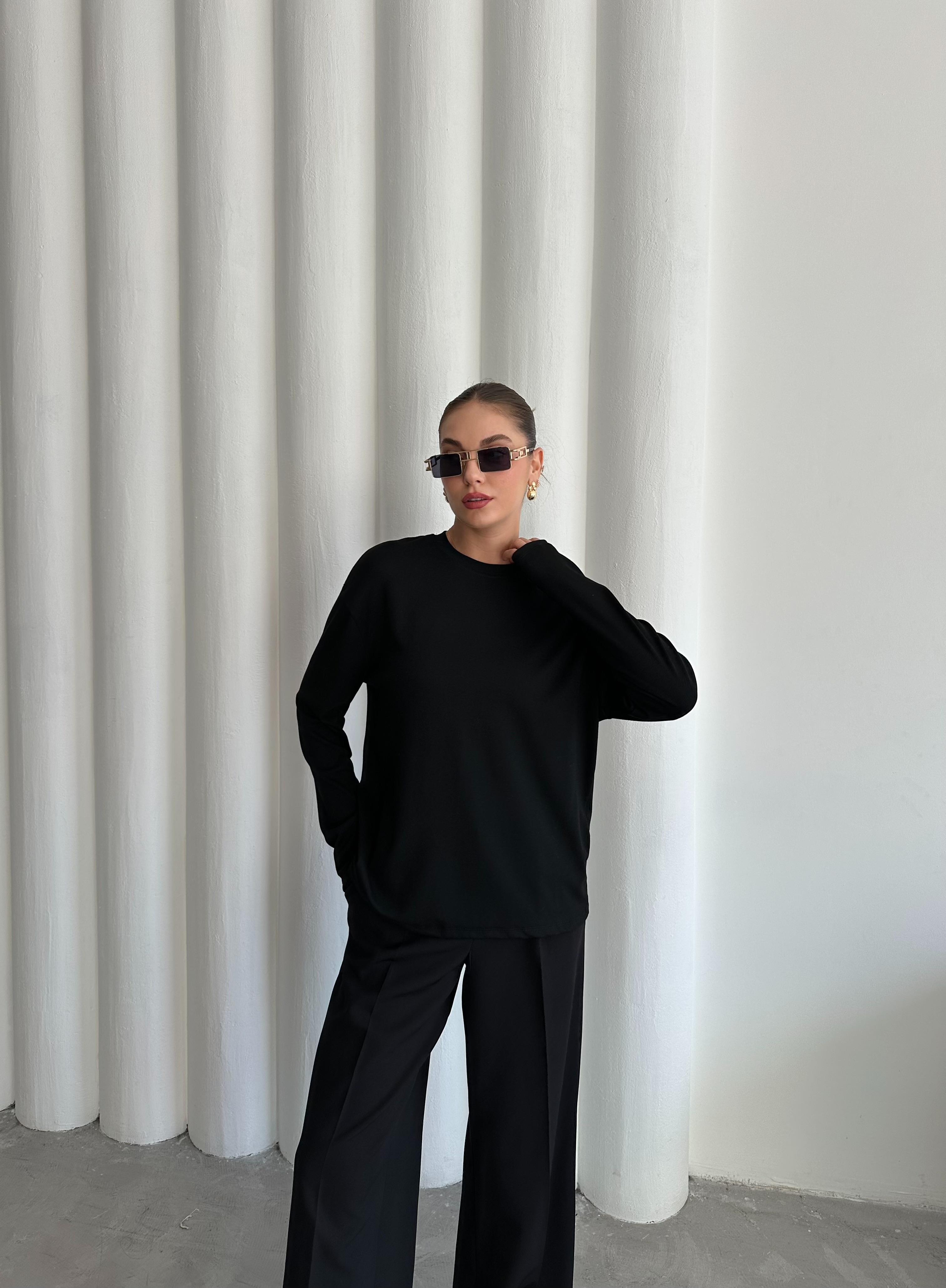 - Siyah Uzun Kollu Geniş Tshirt