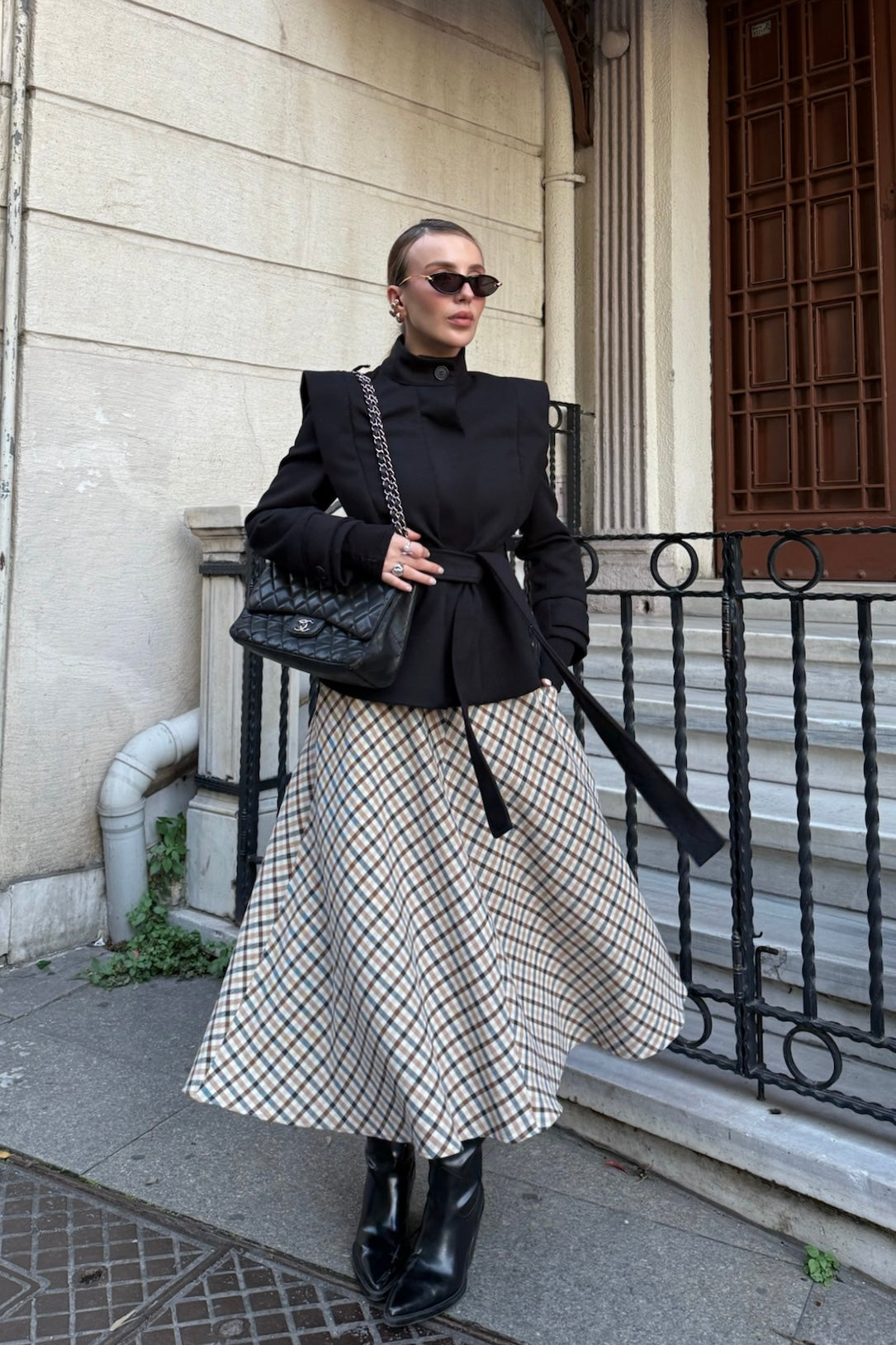 - Siyah Vatkalı Kuşaklı Kaşe Ceket - 1001