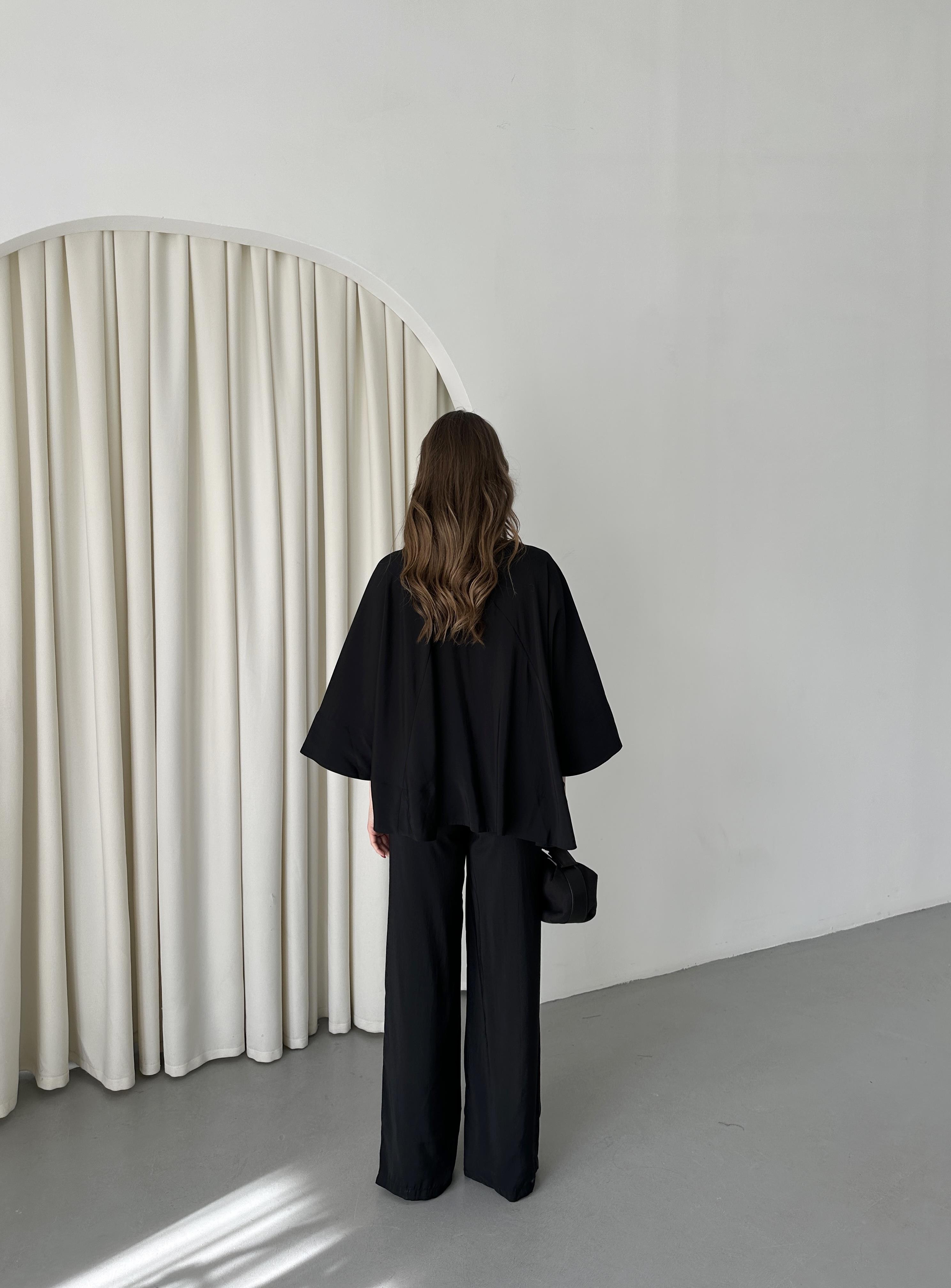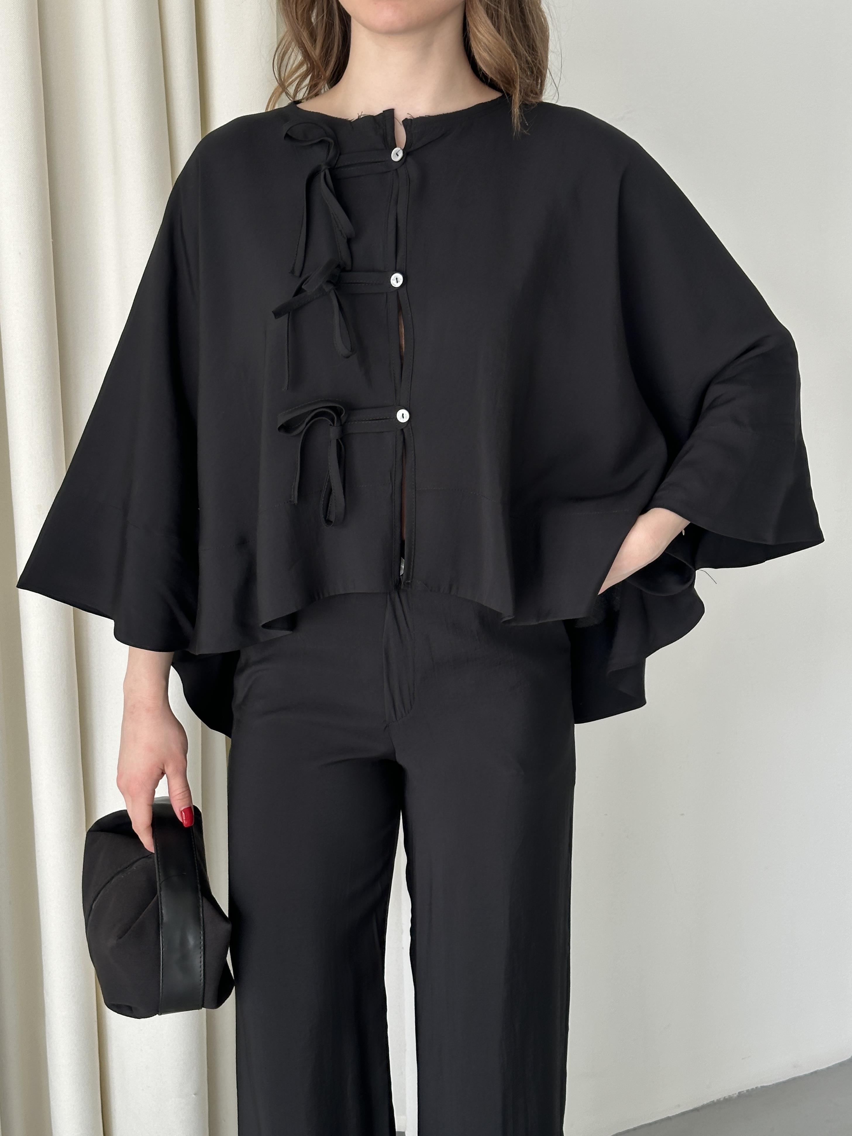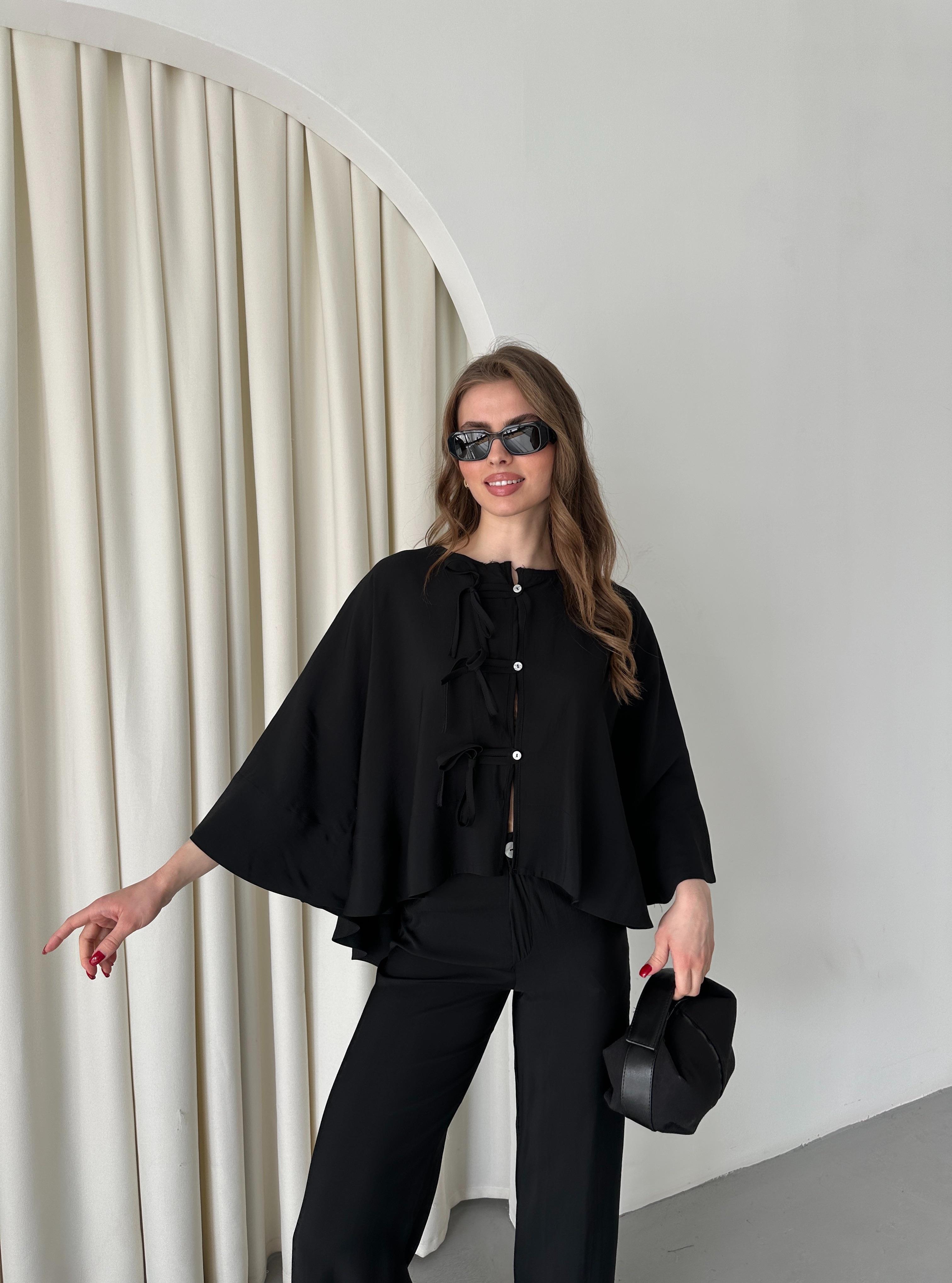 - Siyah Yarasa Kol Bağcık Düğme Detaylı Takım