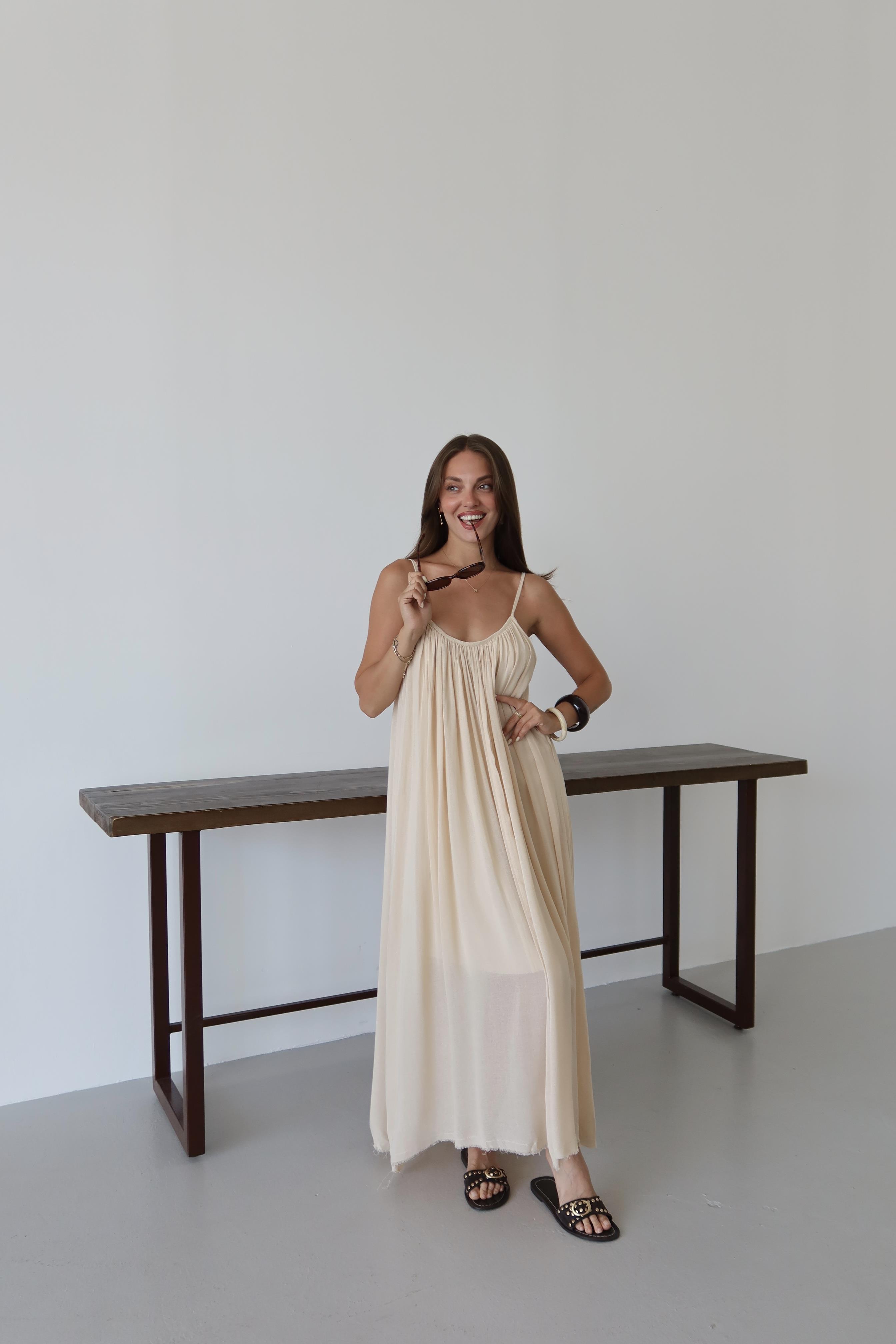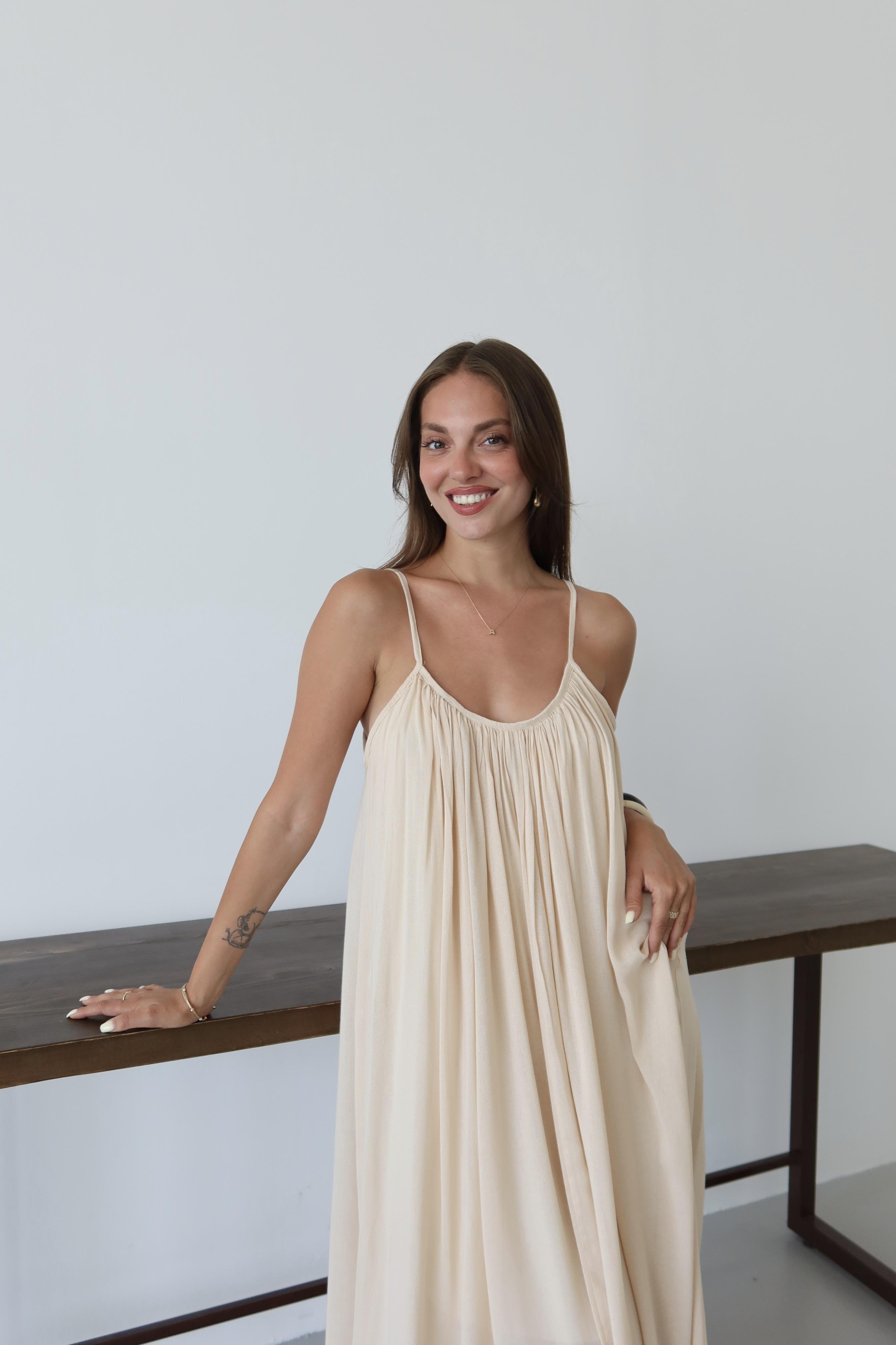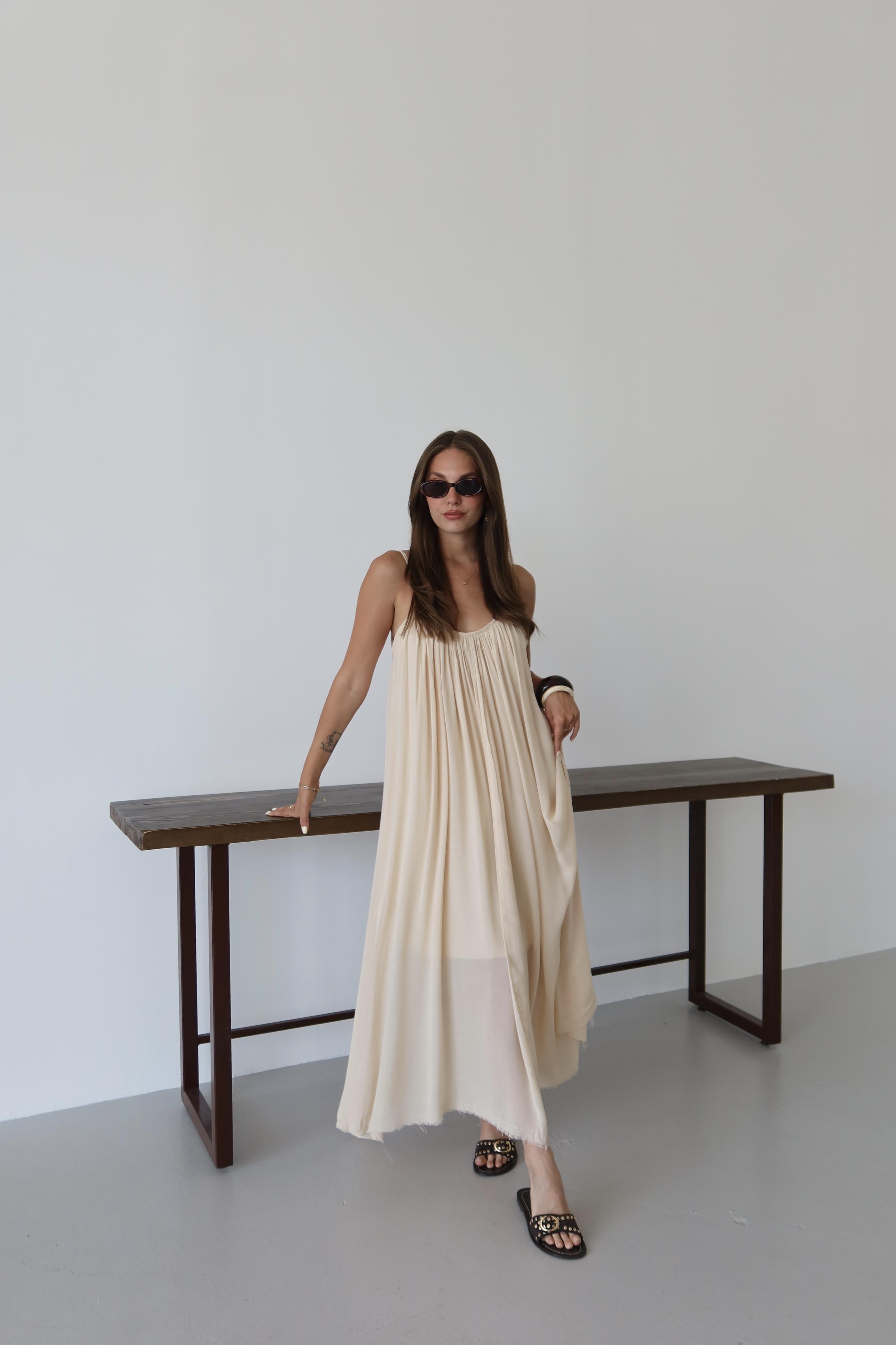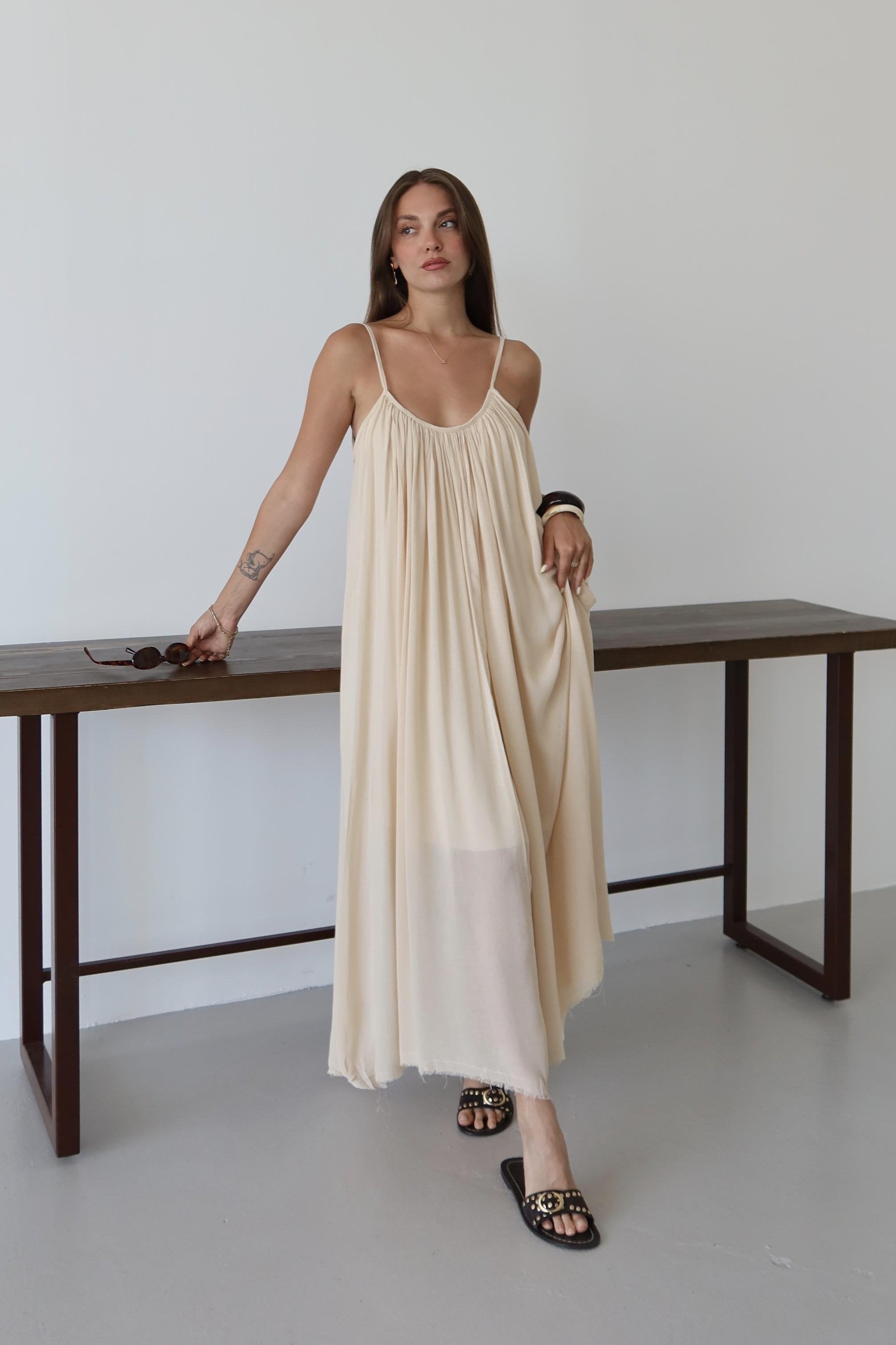 - Taş Askılı Rahat Kesim Elbise
