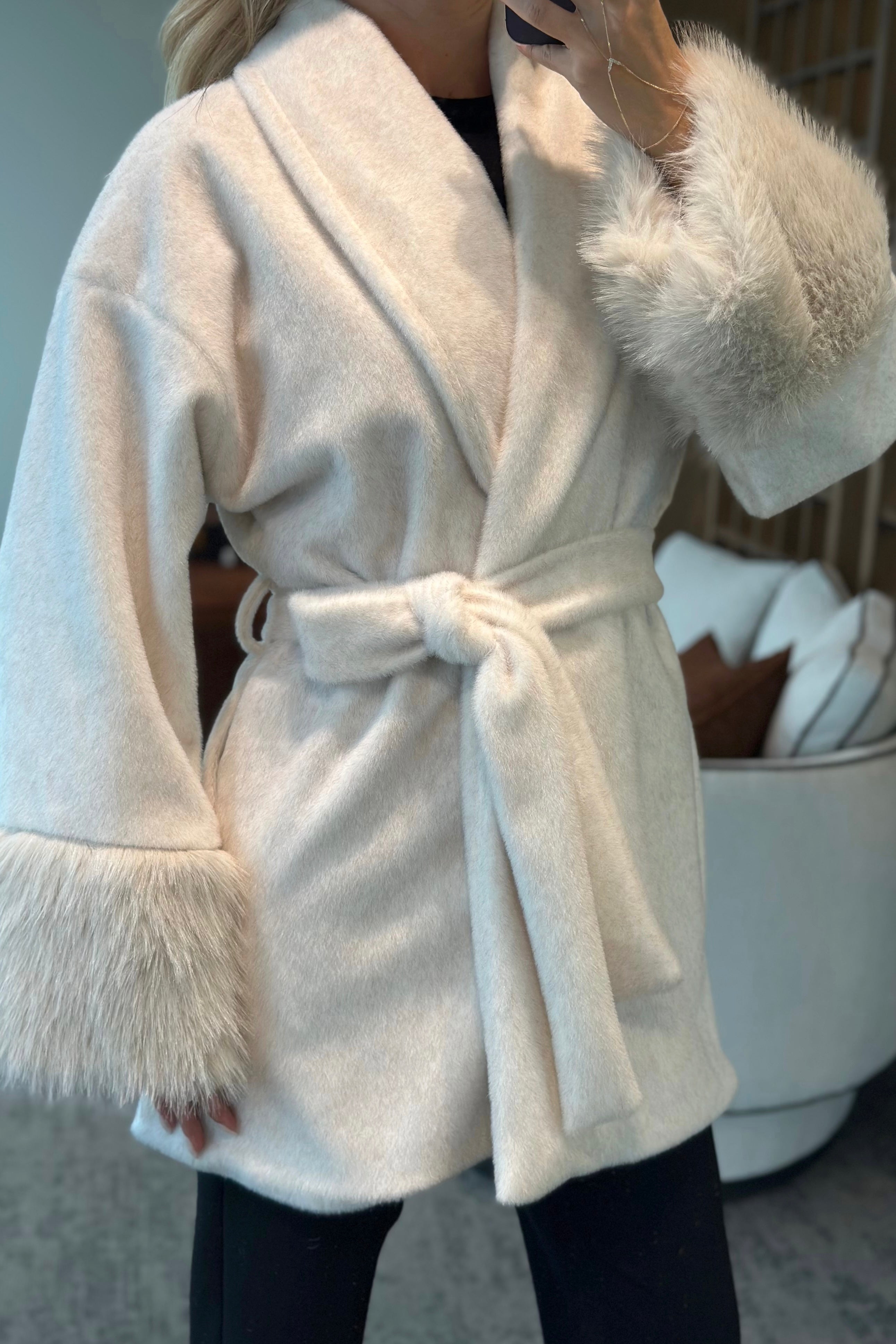 - Taş Kolu Kürklü Kaşe Ceket - 2509