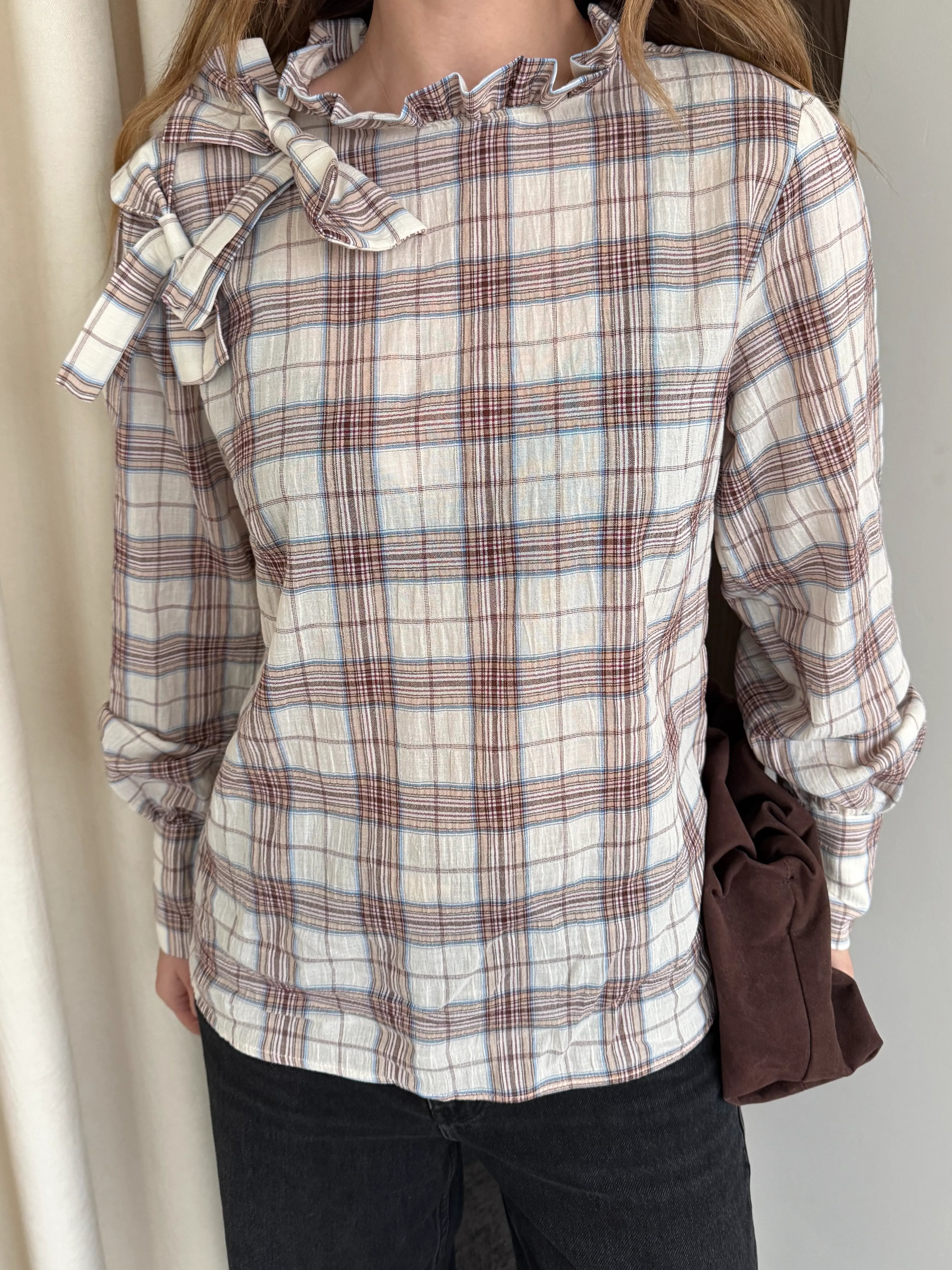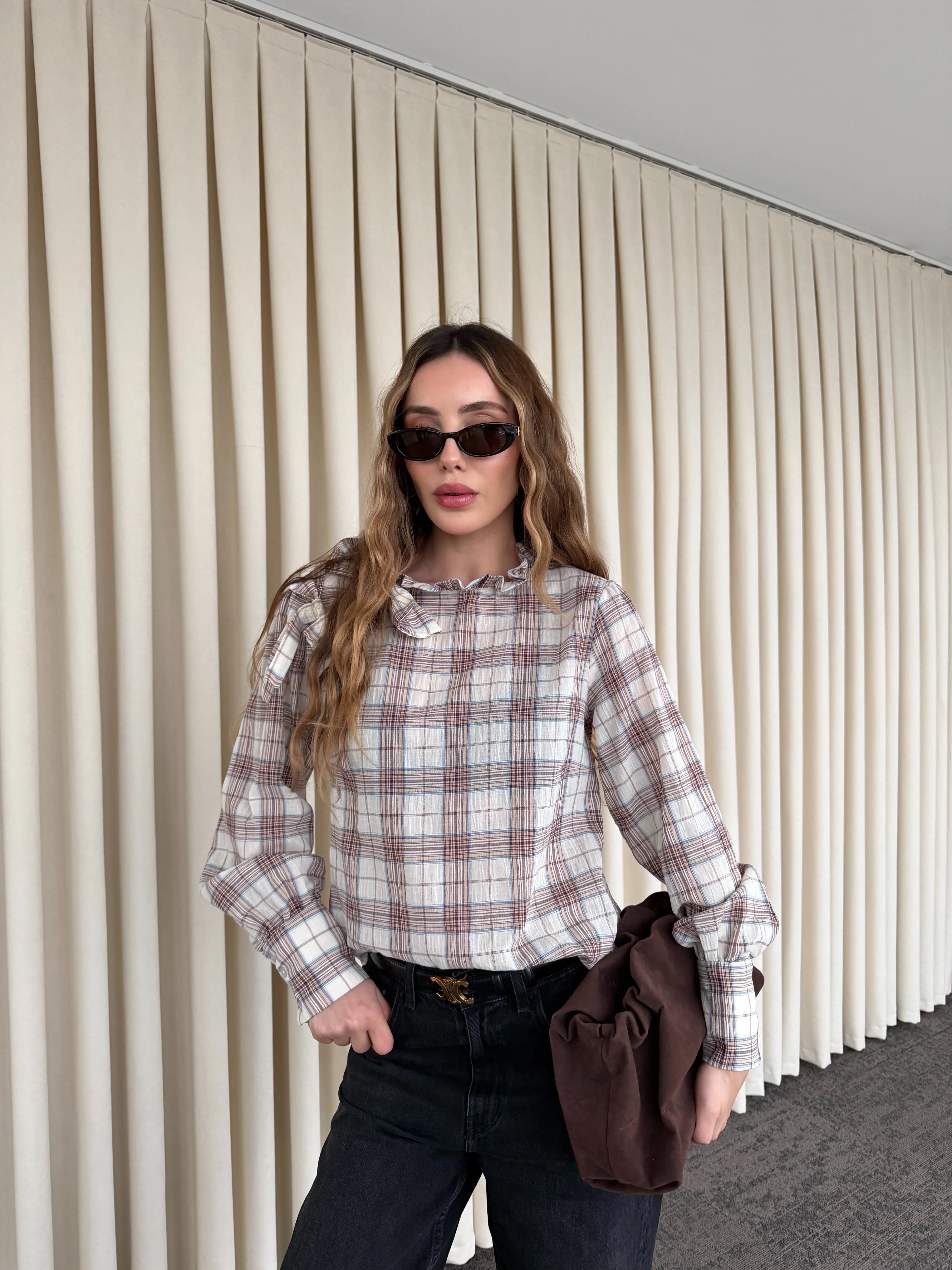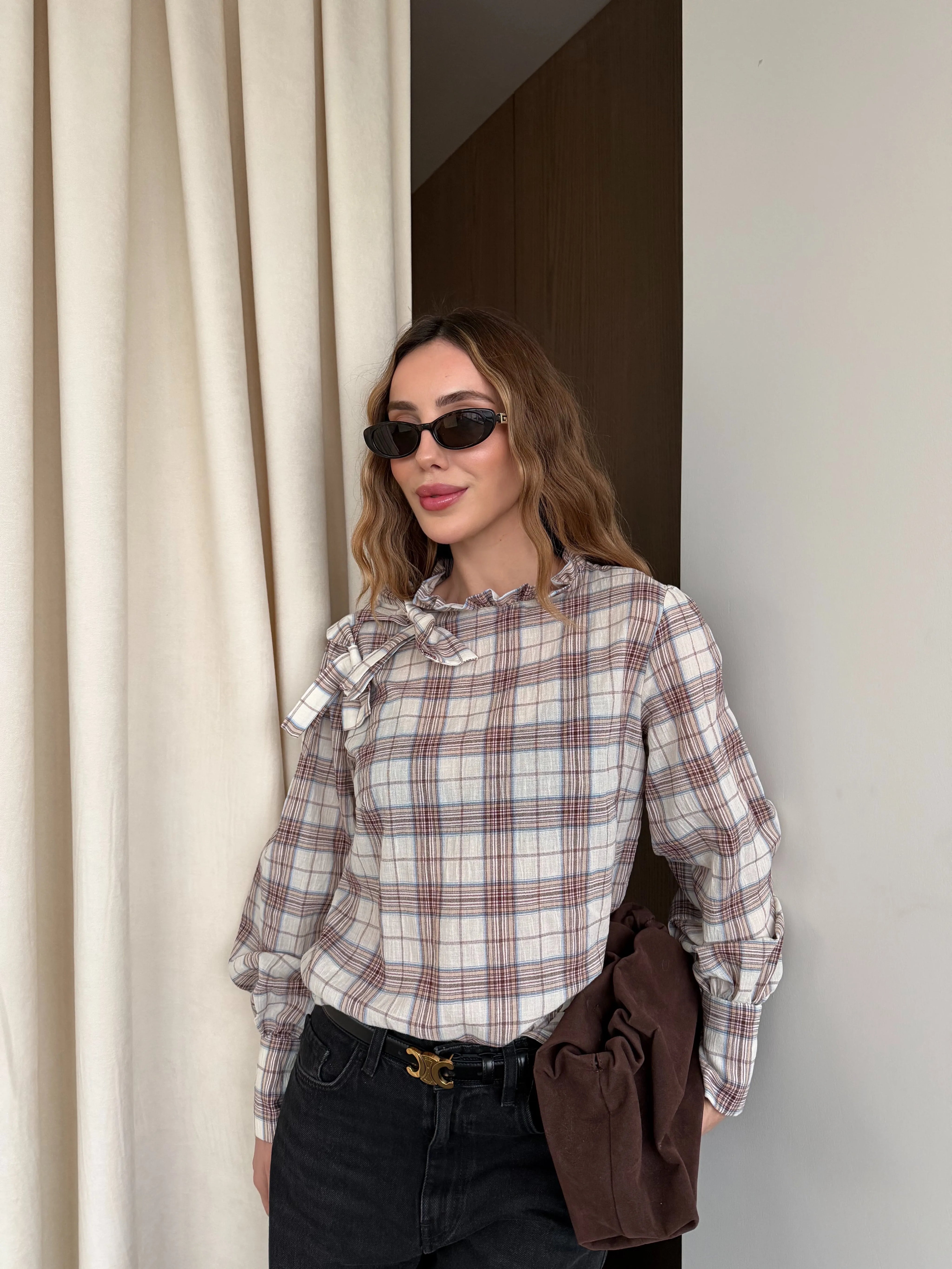 Kahverengi Yakası Fiyonk Detaylı Gömlek - 507