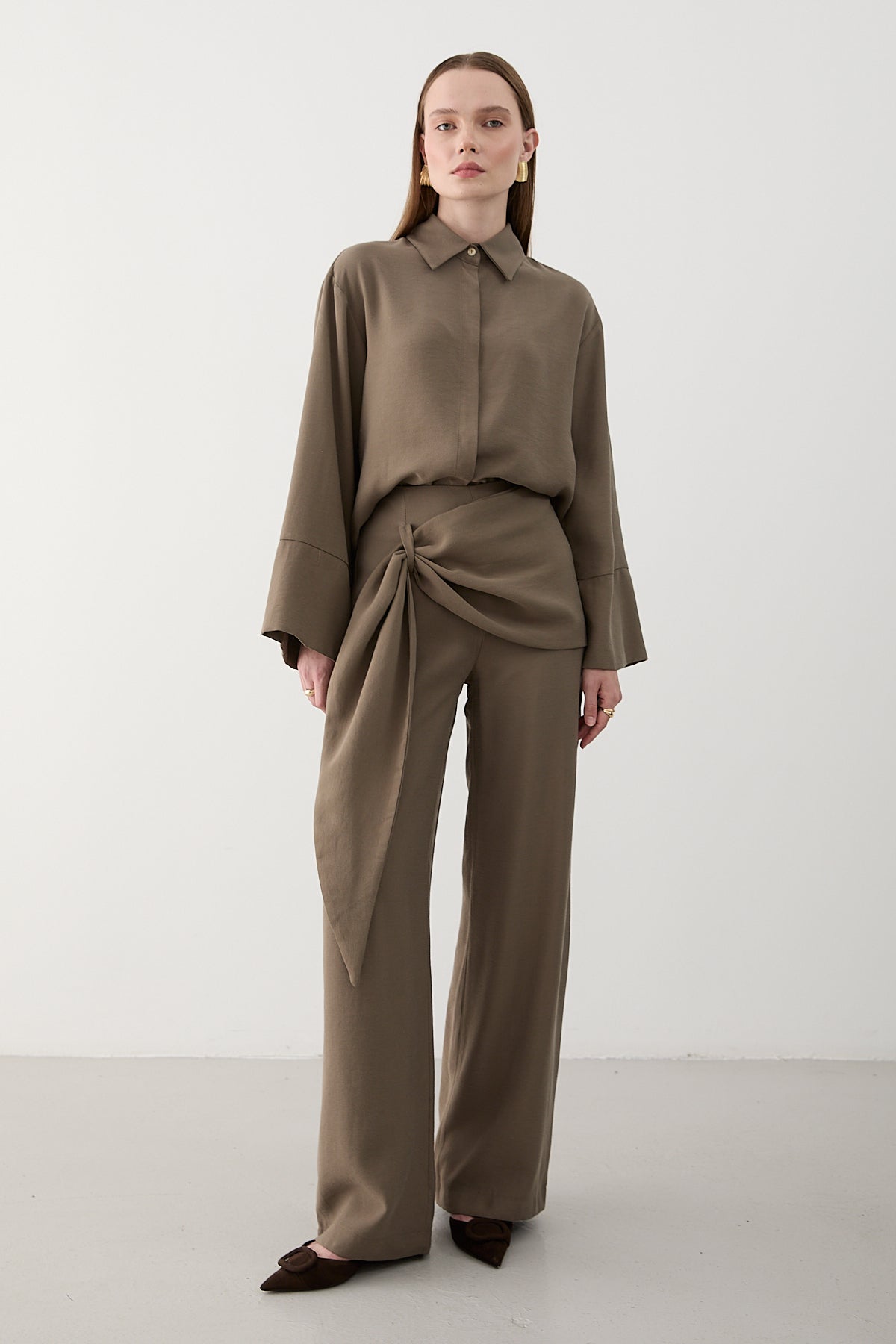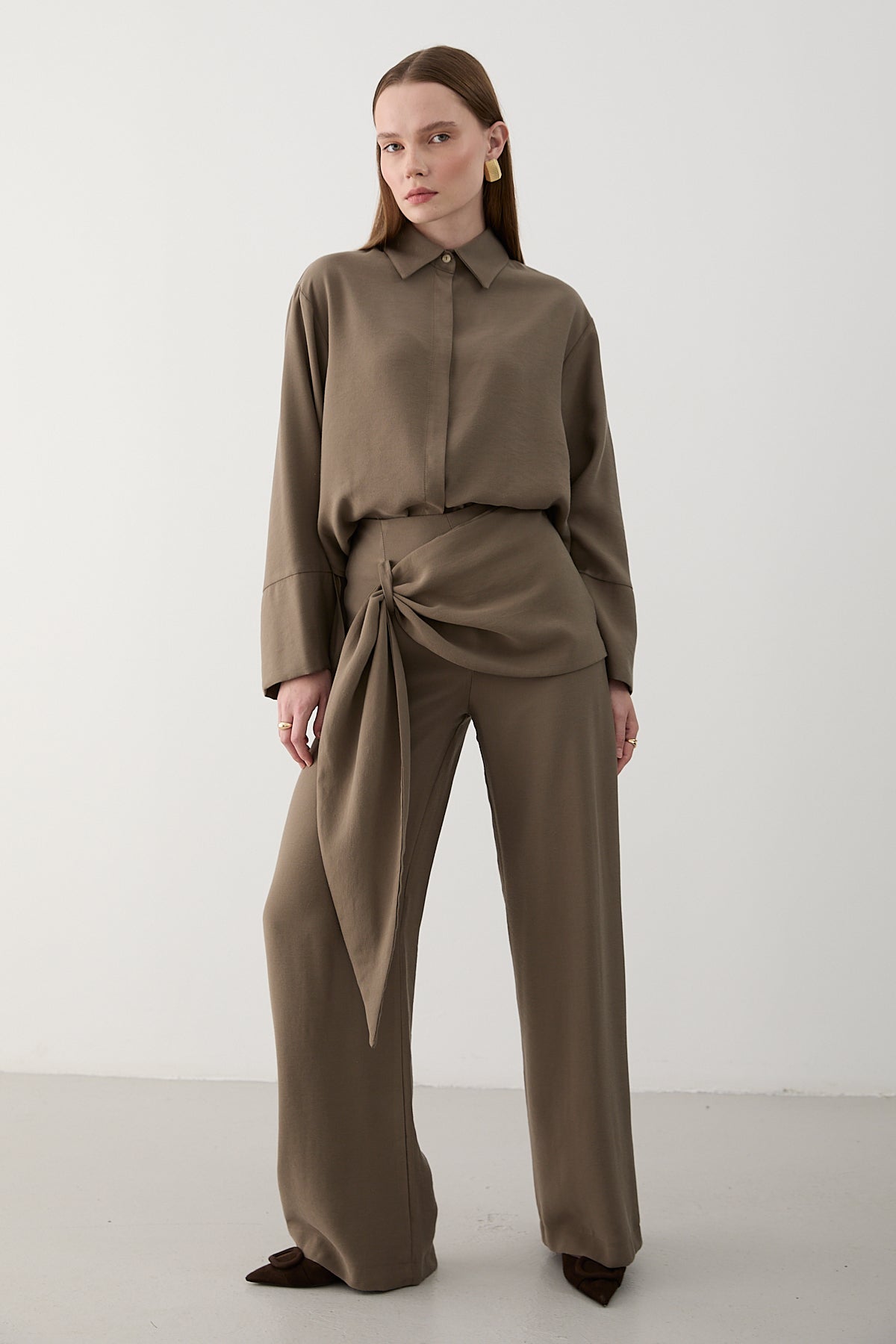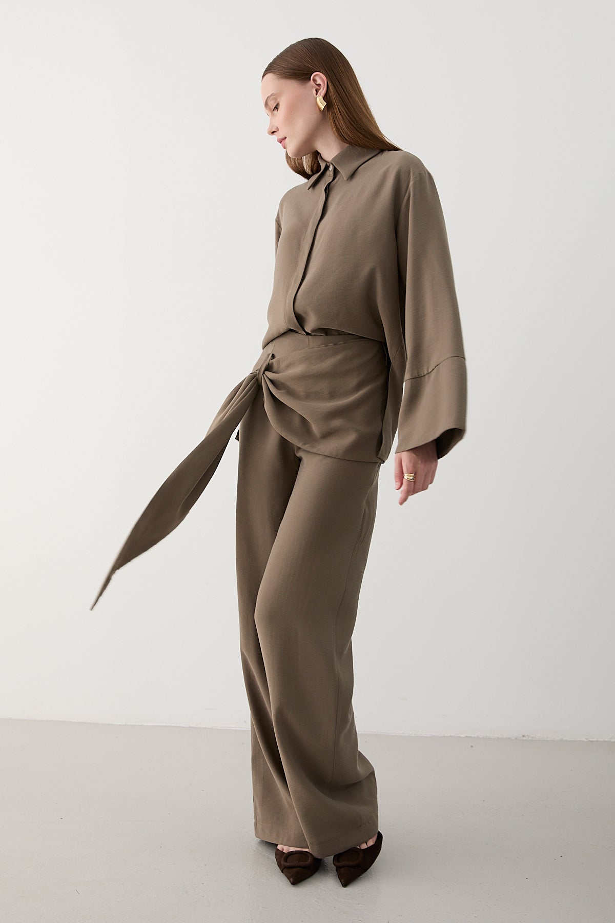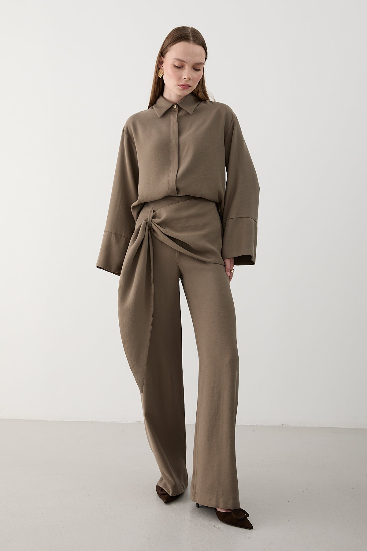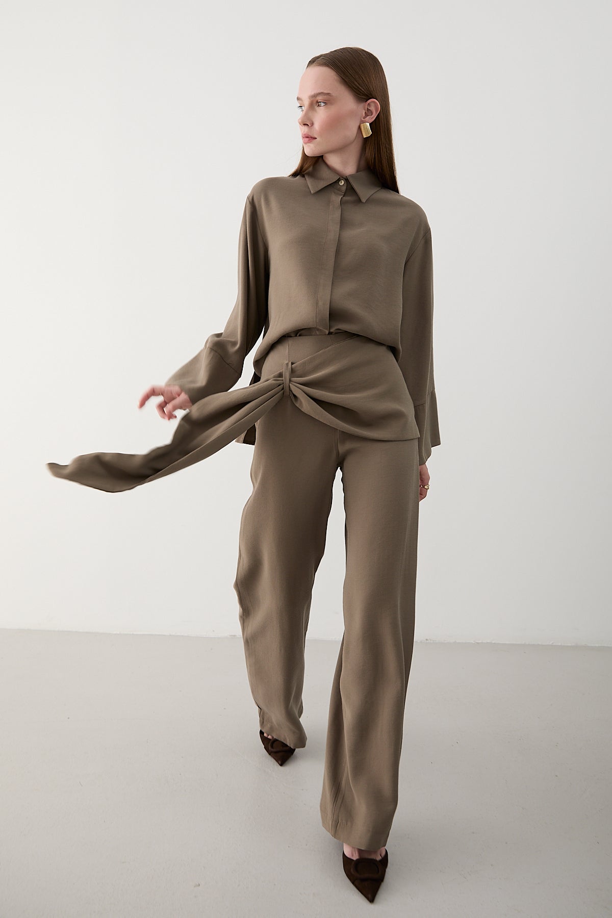 Vizon Beli Detaylı Pantolon Gömlek Takım - 8862