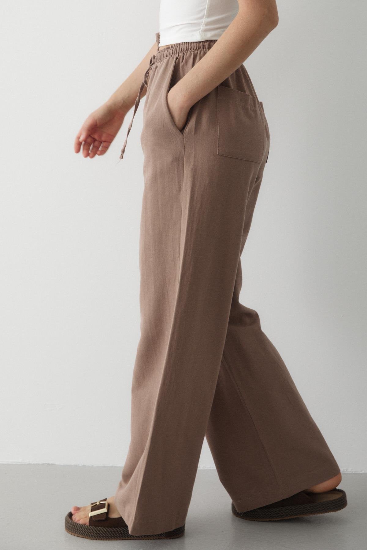 - Vizon Beli Lastikli Pamuklu Keten Pantolon
