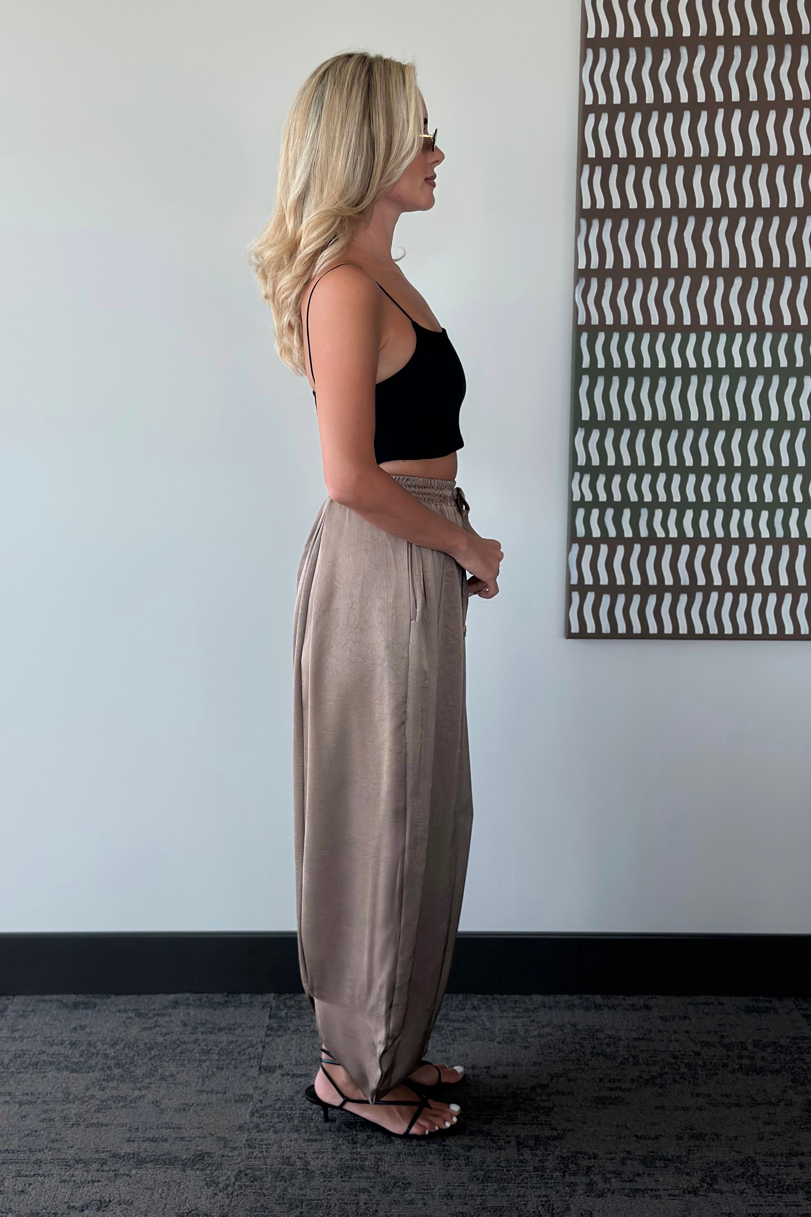Vizon Beli Lastikli Saten Şalvar Pantolon - 51199