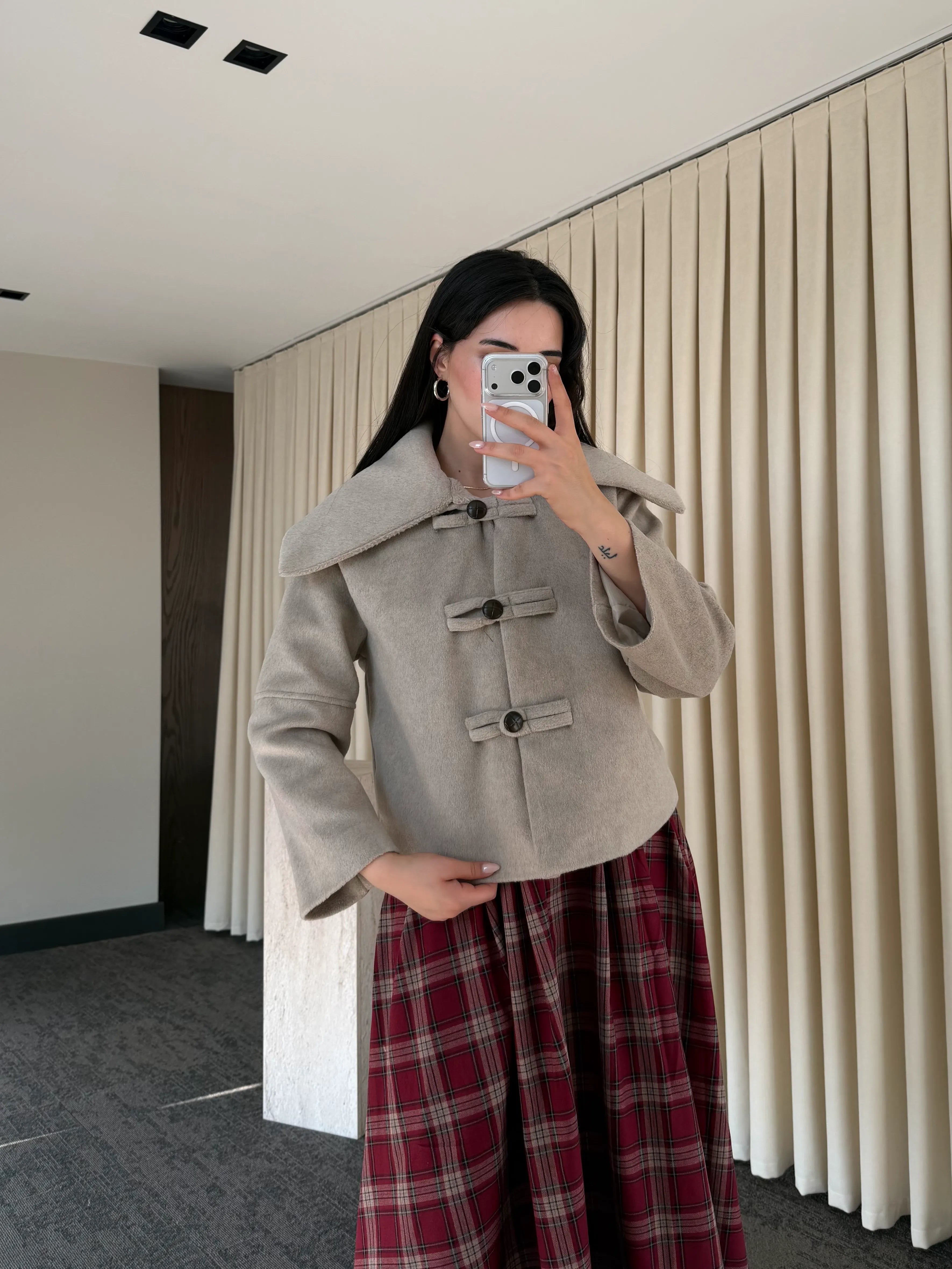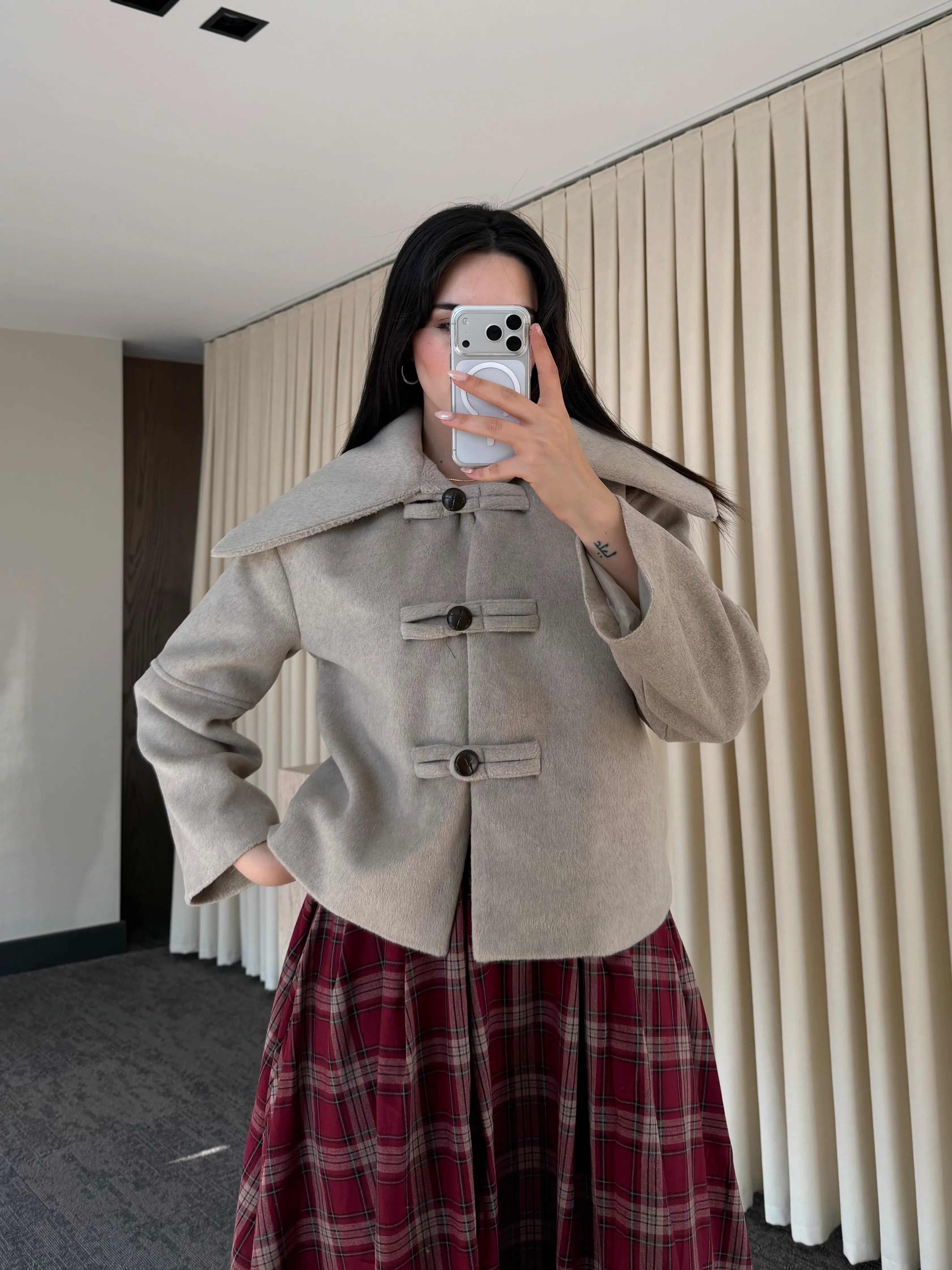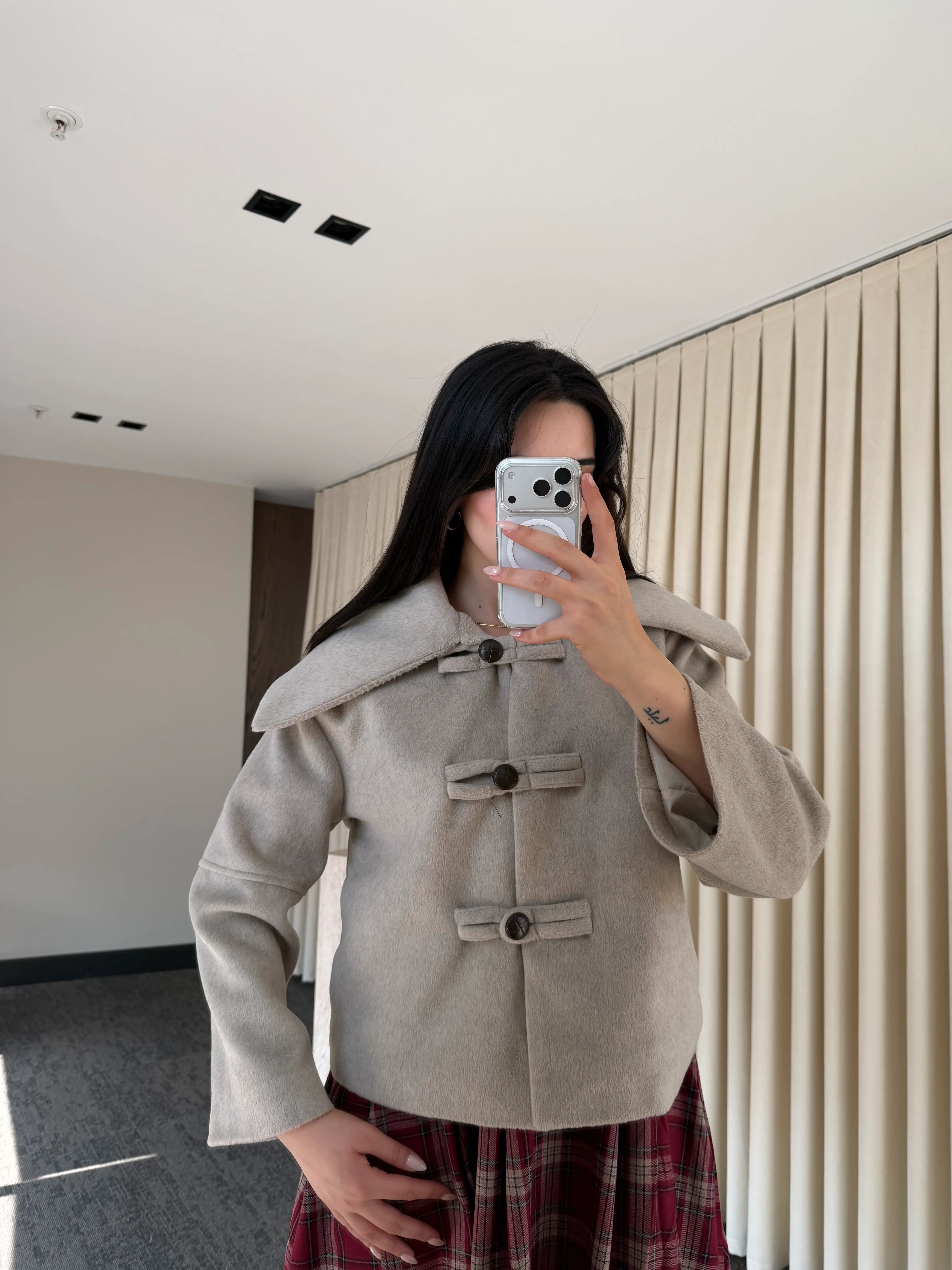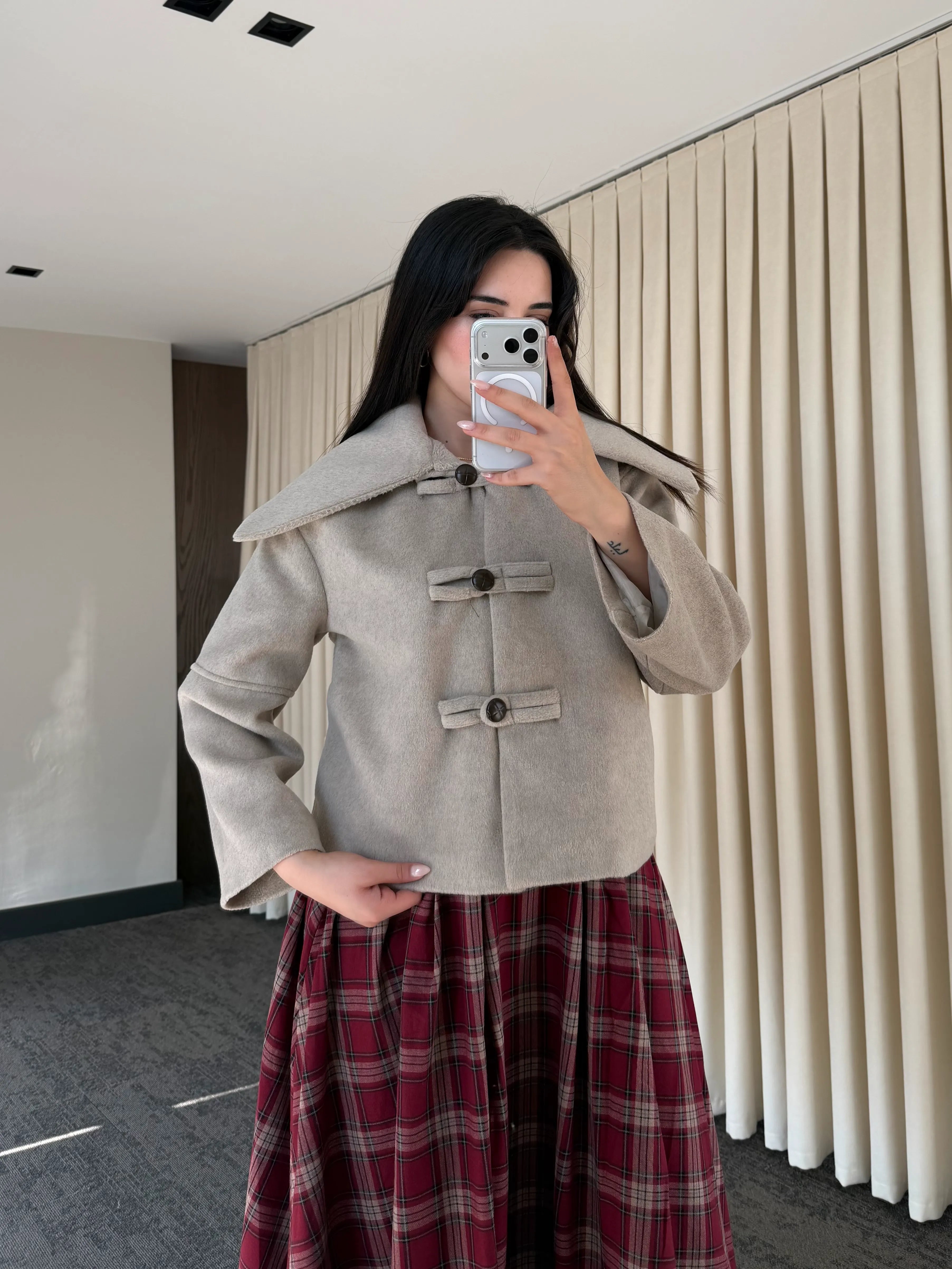 Vizon Düğme Detaylı Kısa Kaşe Ceket - 7675