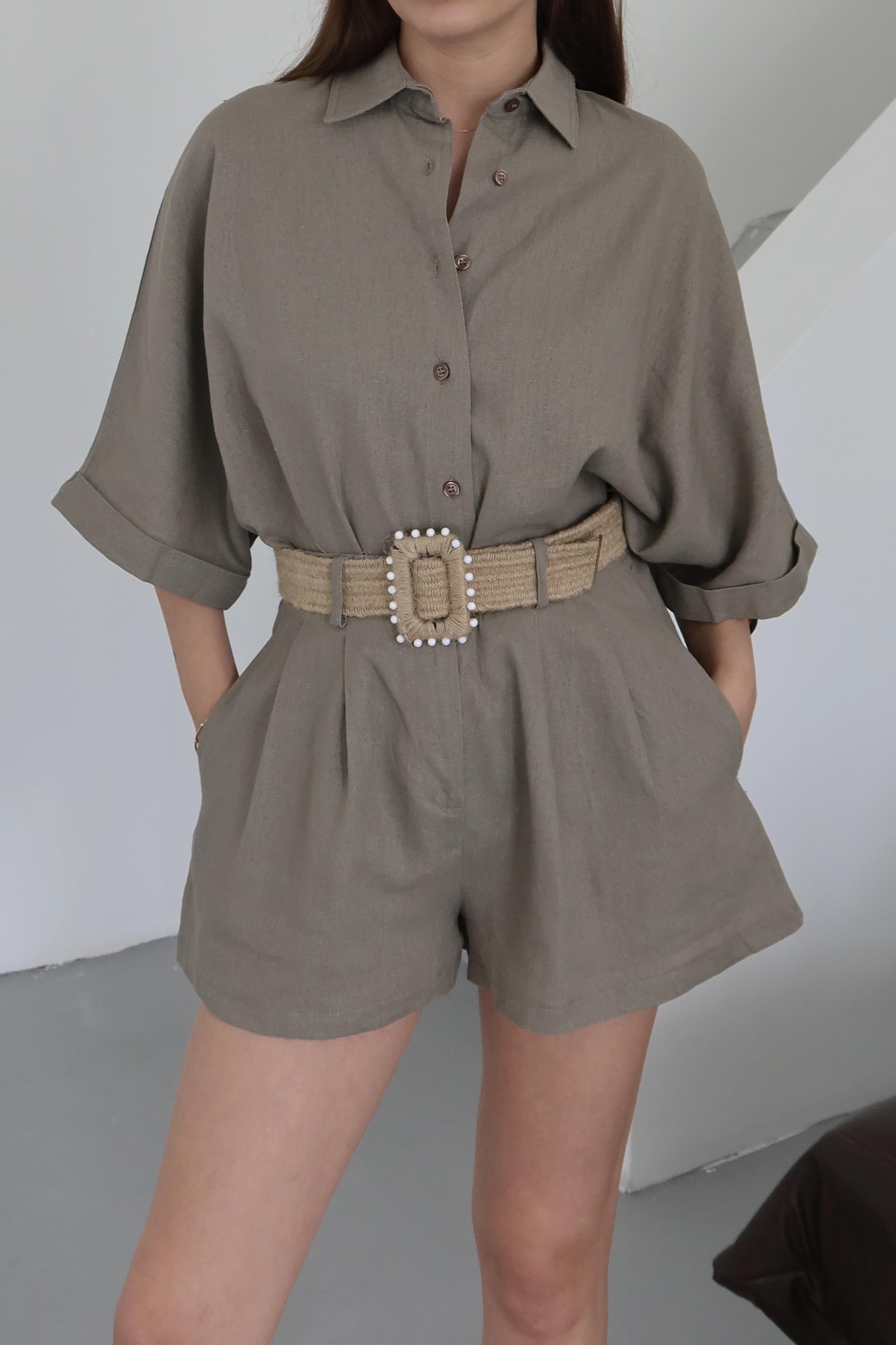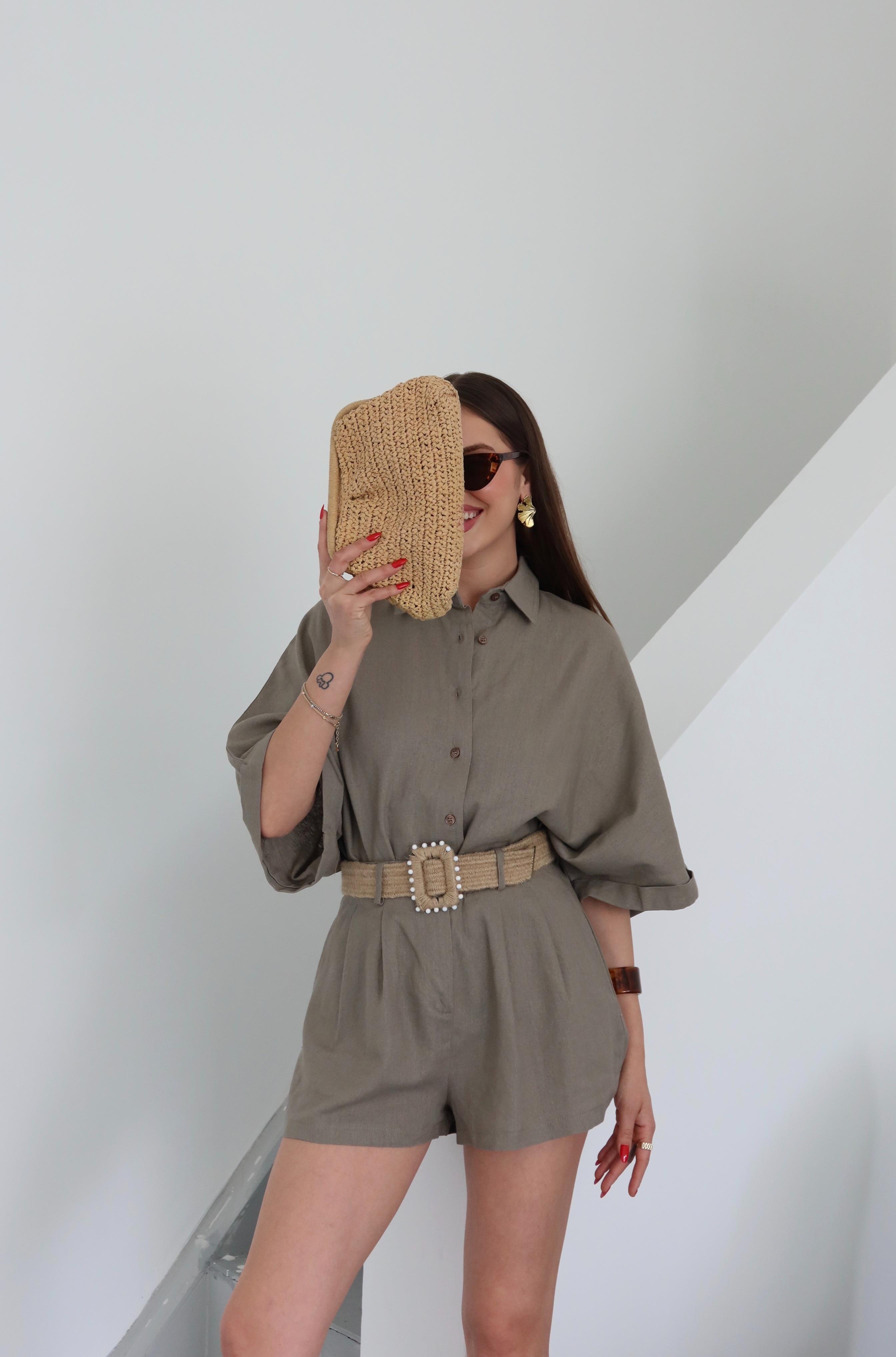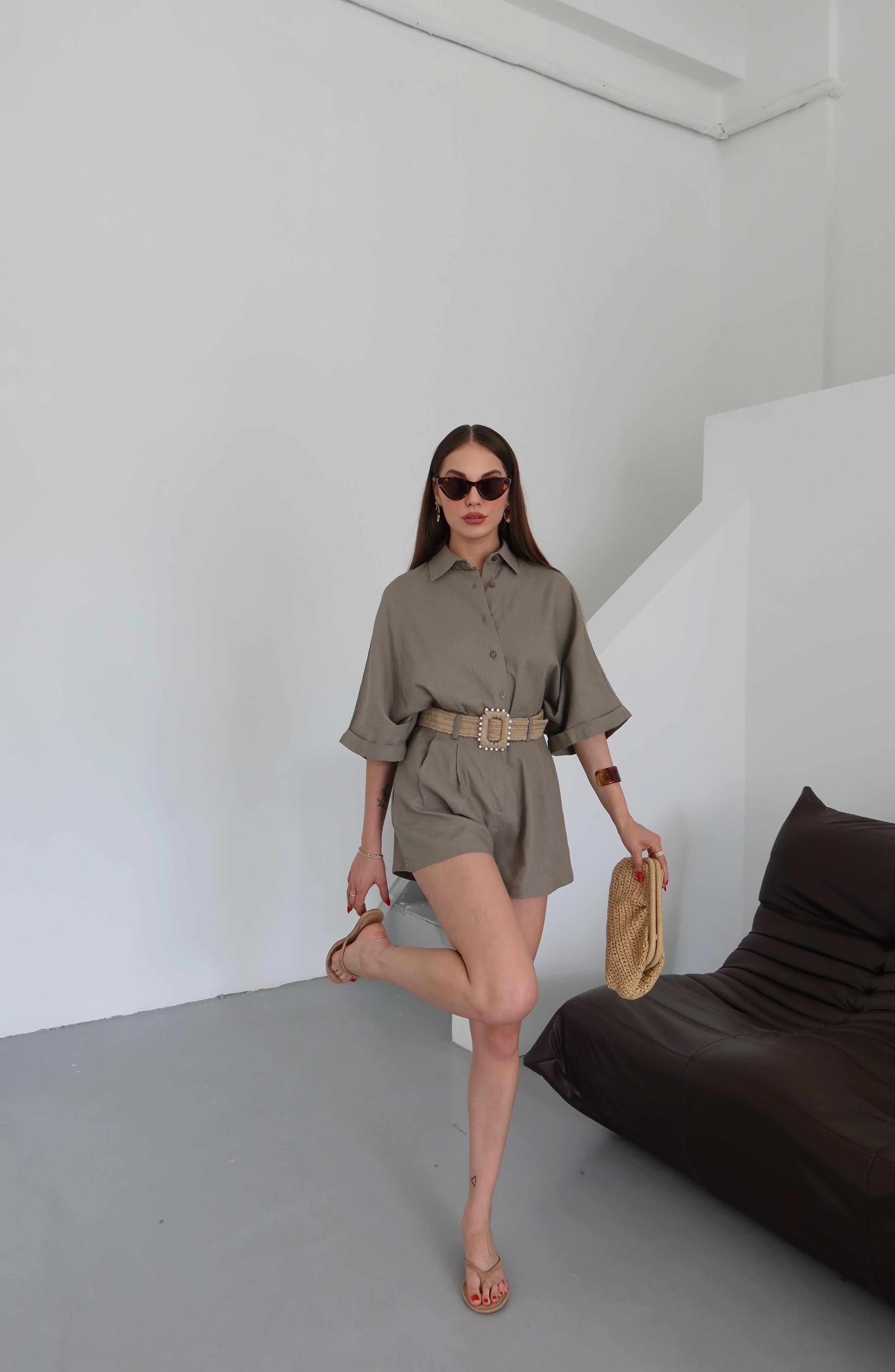- Vizon Hasır Kemerli Gömlek Şort Takım