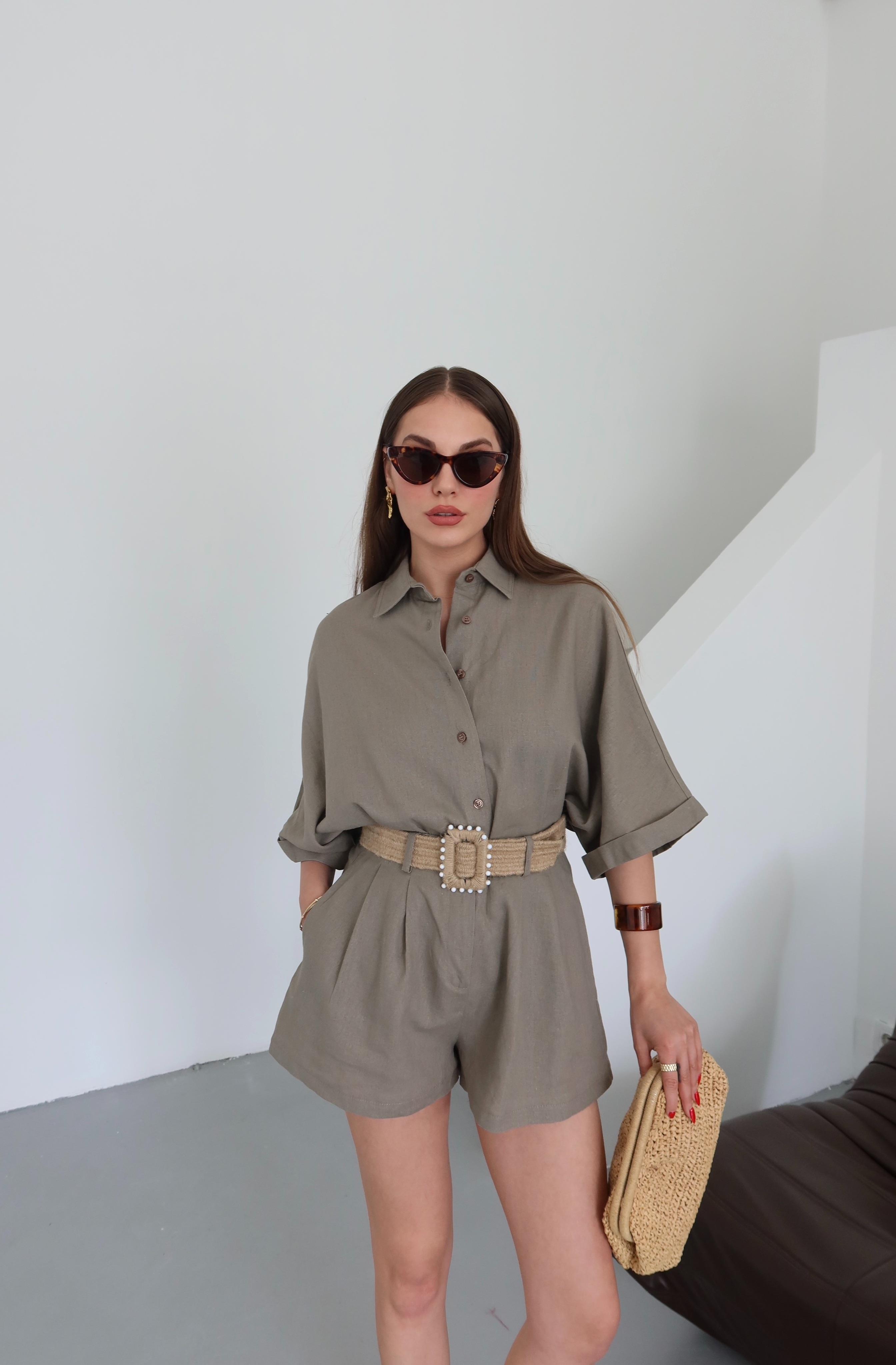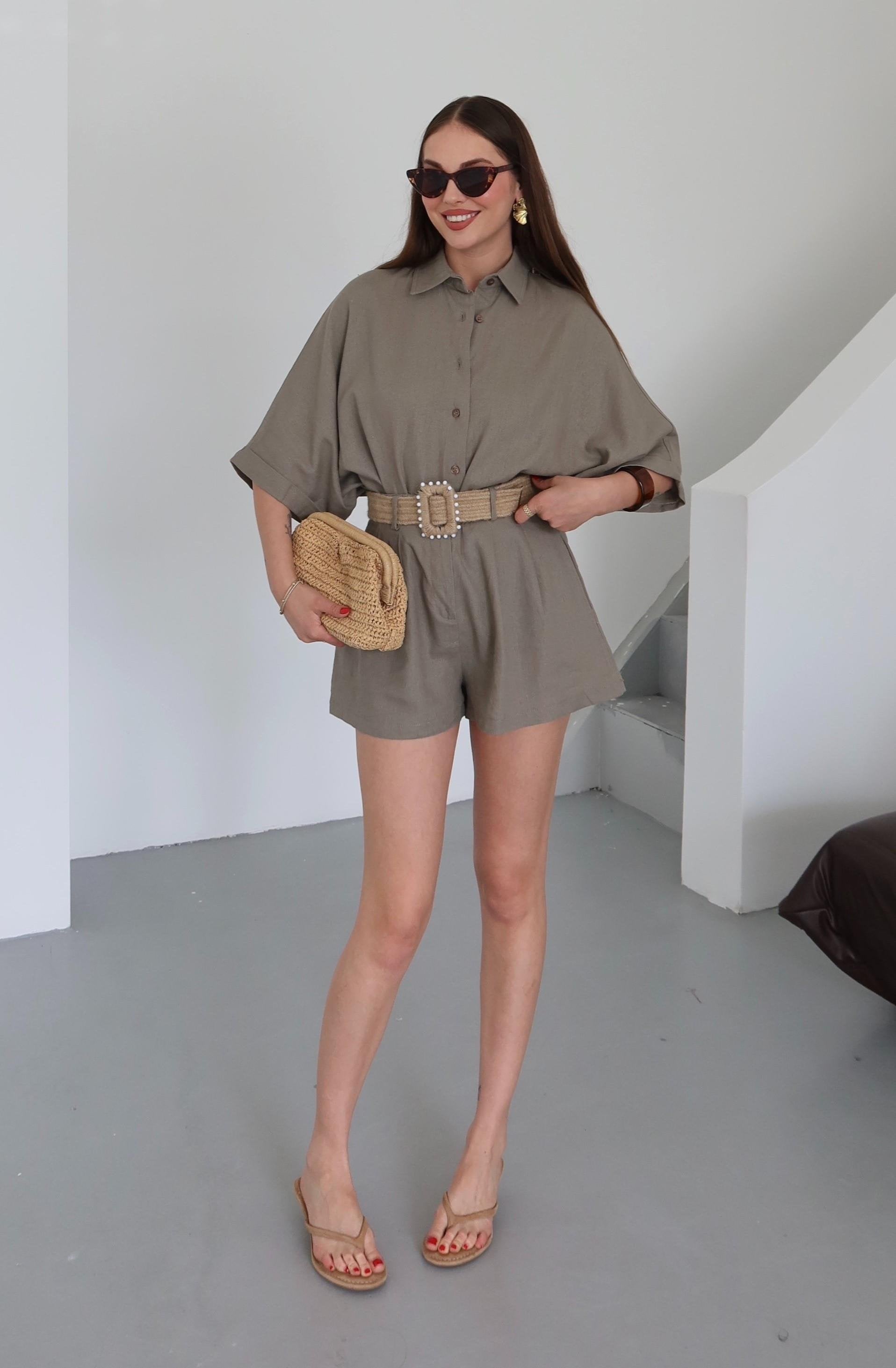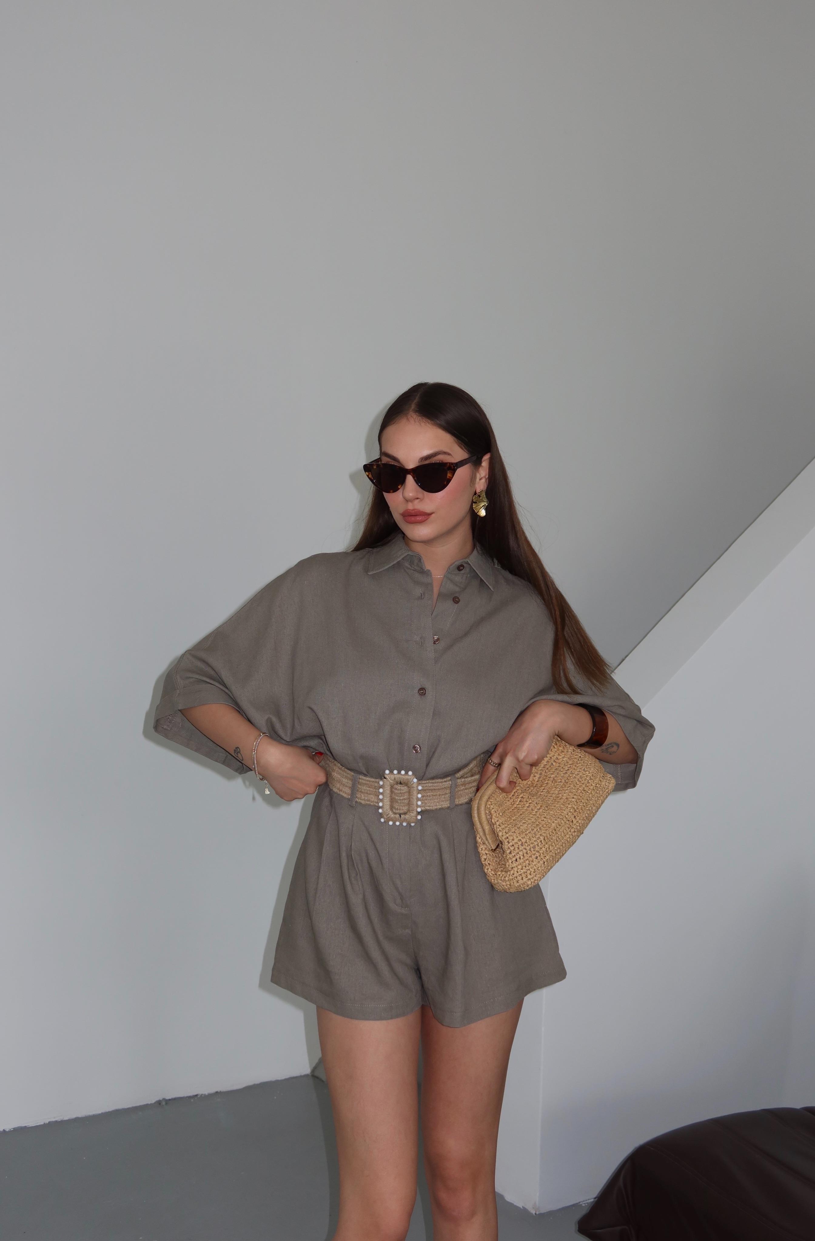 - Vizon Hasır Kemerli Gömlek Şort Takım