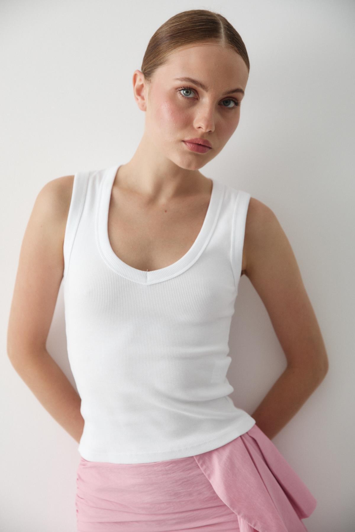 Beyaz V Yaka Fitilli Bluz (251024-1651906251472)