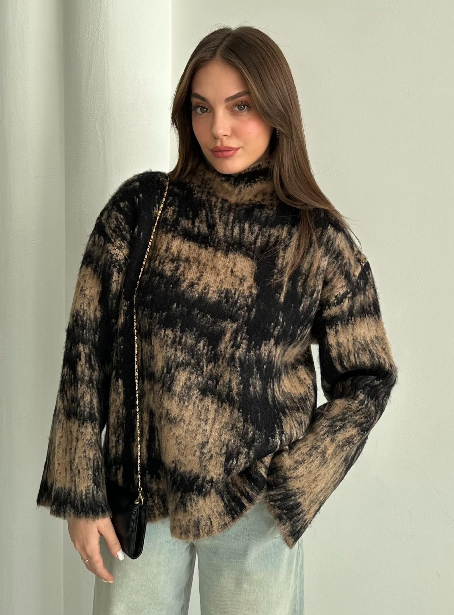 Camel-Siyah Dik Yaka Kırçıllı Kazak (4677-3802412020220)