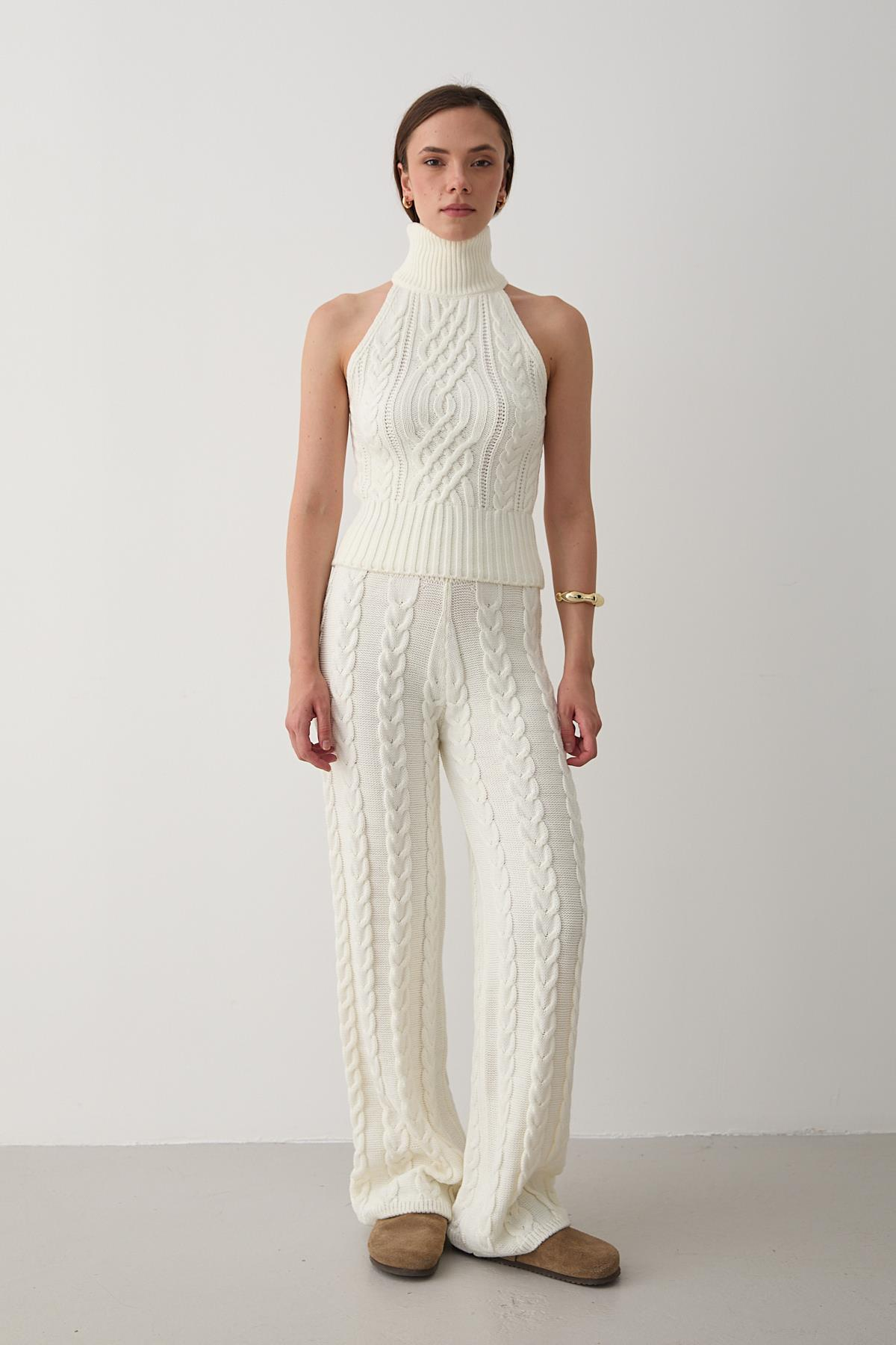 Ekru Kolsuz Bluz Pantolon Takım - 3009