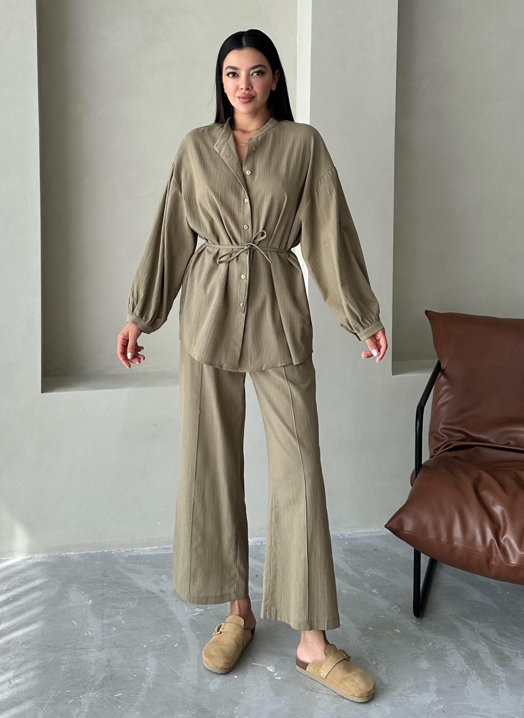 Haki Vanessa Bel Bağlı Balon Kol Takım