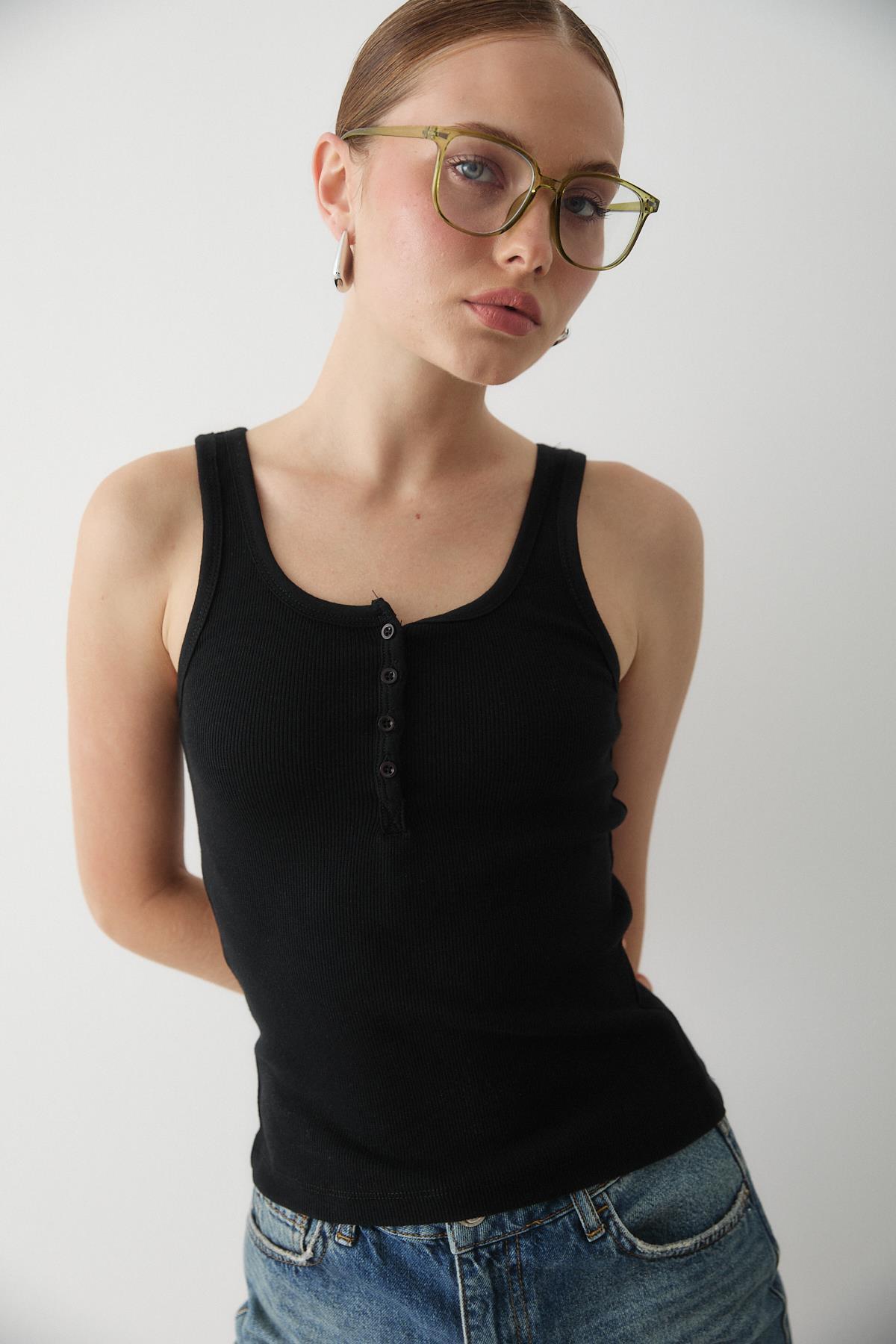Siyah Önden Düğmeli Atlet (251001-1851306250772)