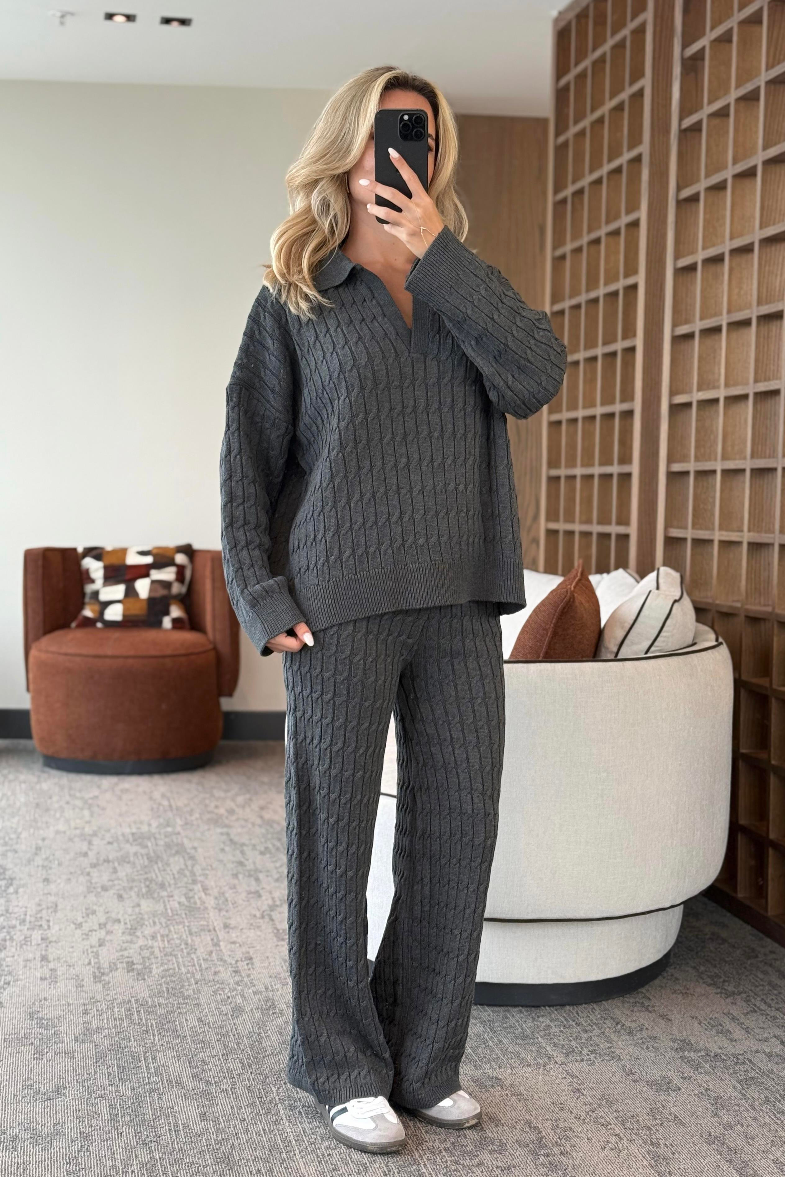 Gri Örgü Triko Takım - 98074
