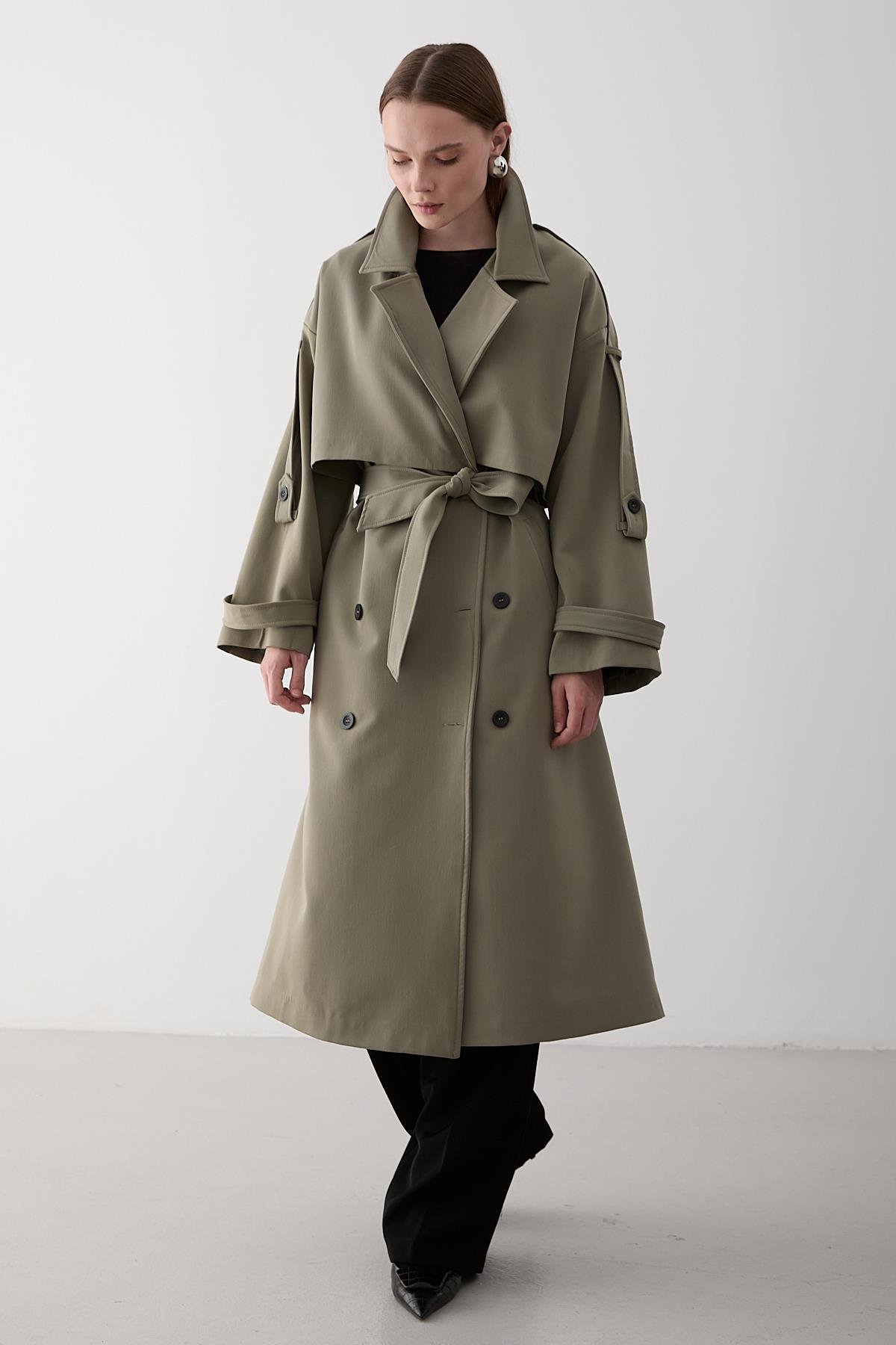 Haki Lucky Düğme Detaylı Oversize Trençkot (9476-8685038404864)