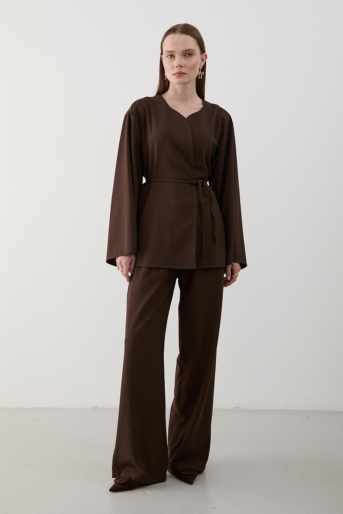 Kahverengi İpli Kimono Takım - 8864