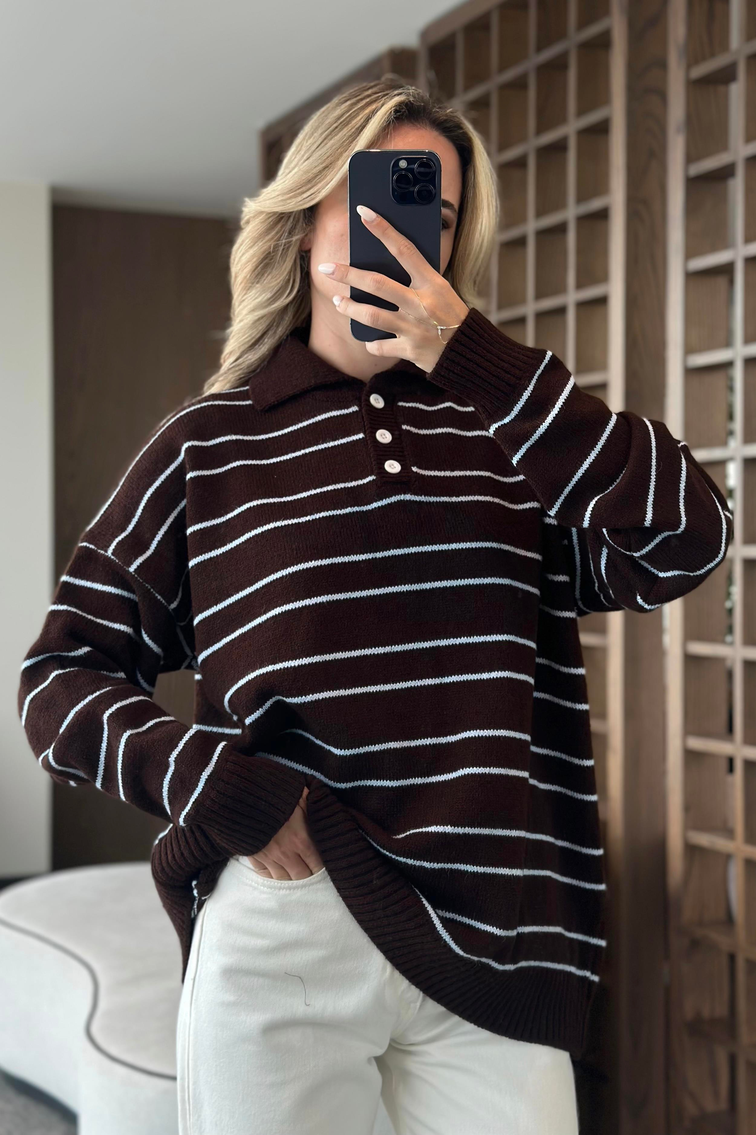 Kahverengi - Mavi Çizgili Kazak -1510 (1510-4)