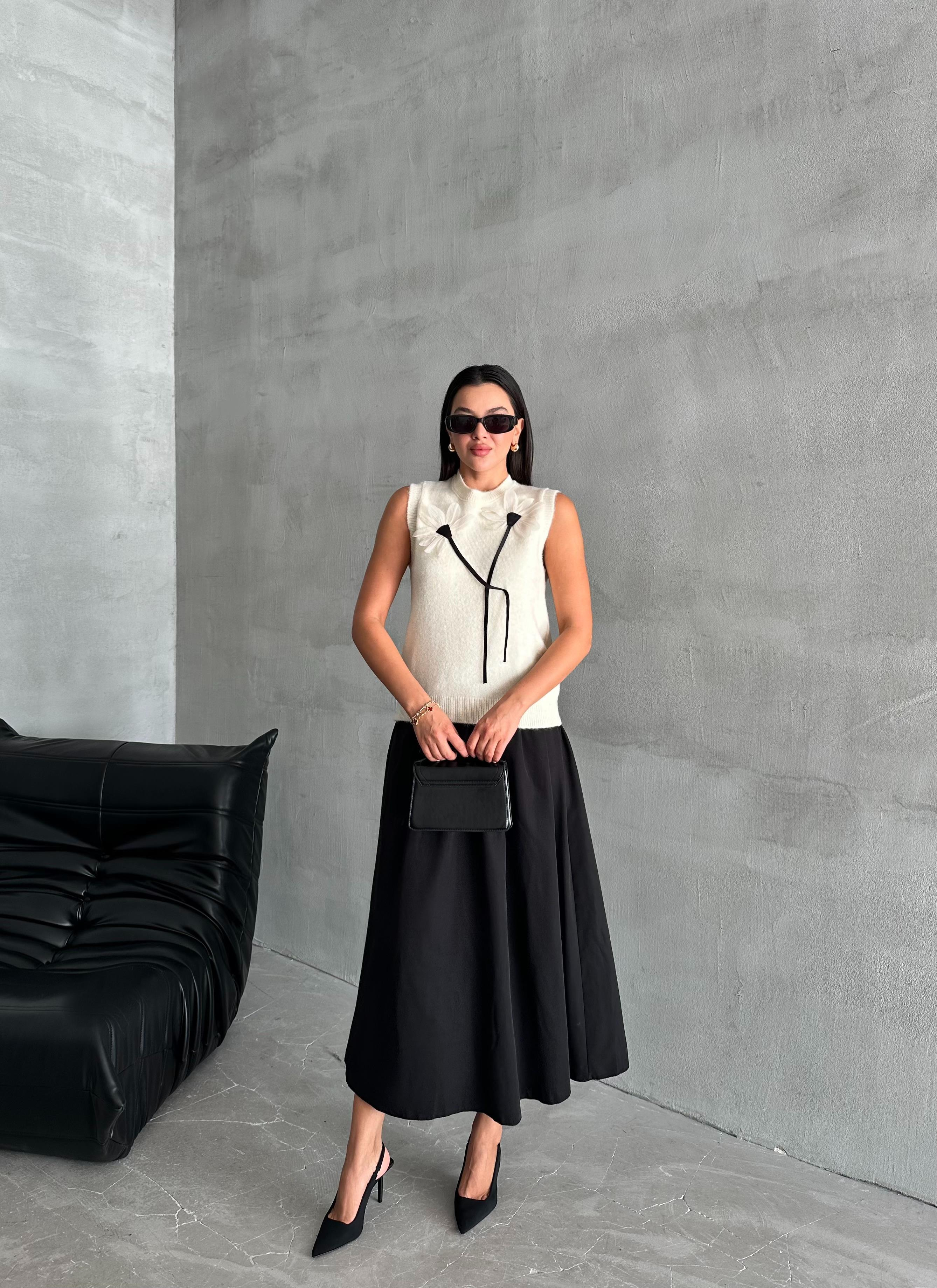 Siyah Papatya Apikeli Triko Süveter Antrasit Papatya Apikeli Triko Süveter