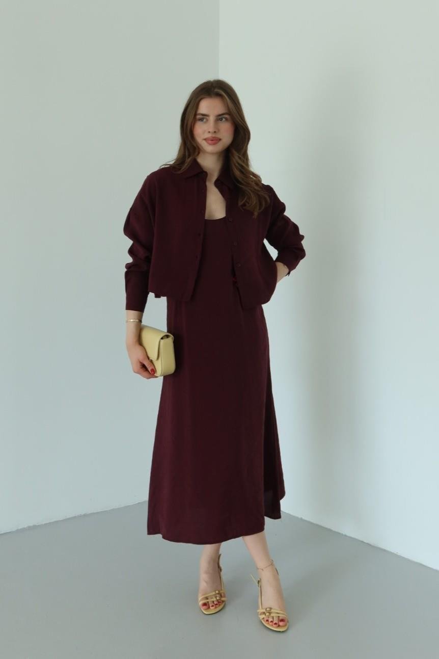 Mürdüm Modal Kumaş Gömlek Elbise Takım (51153-9002404250372)